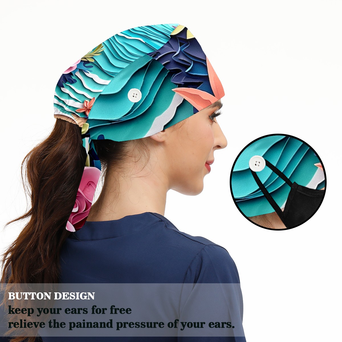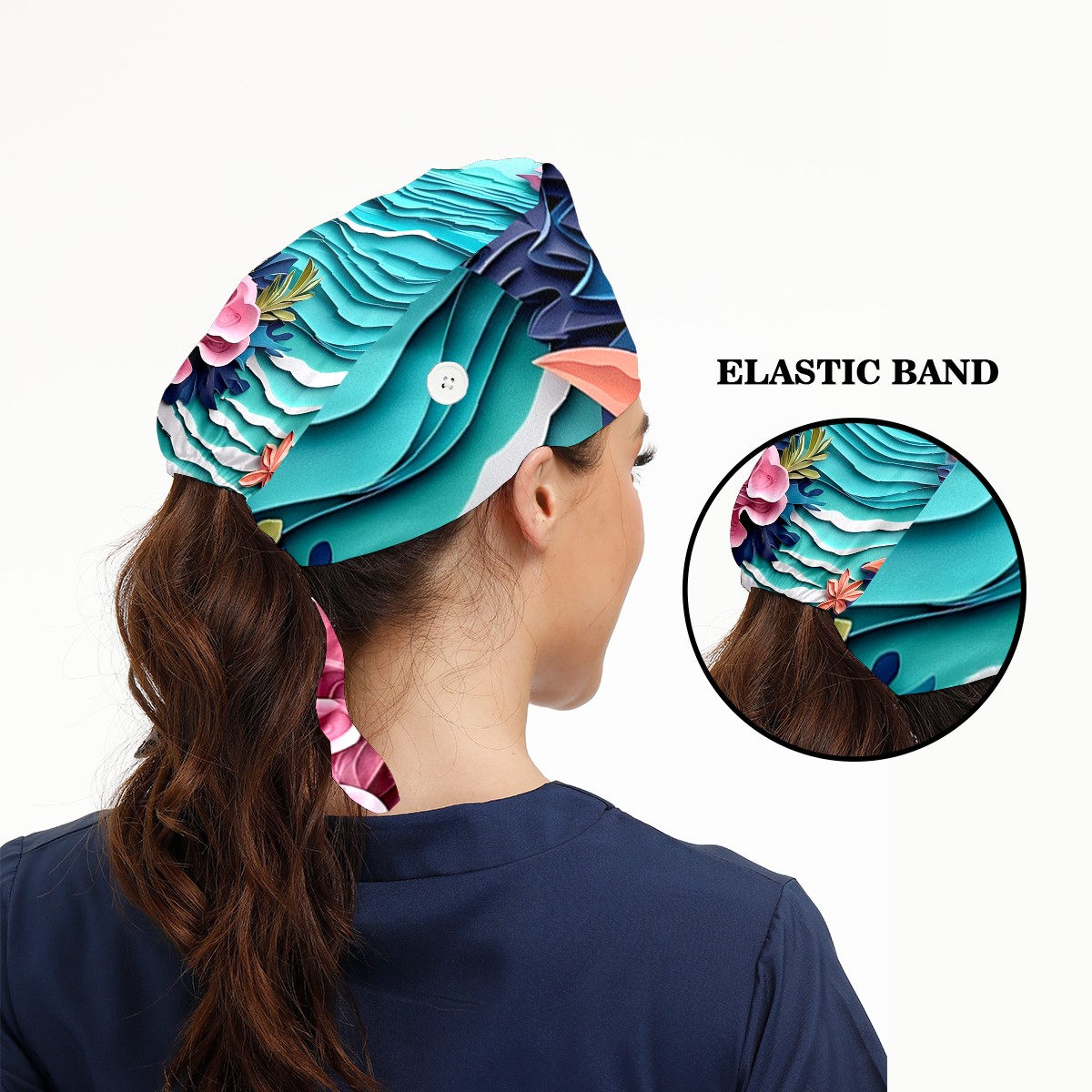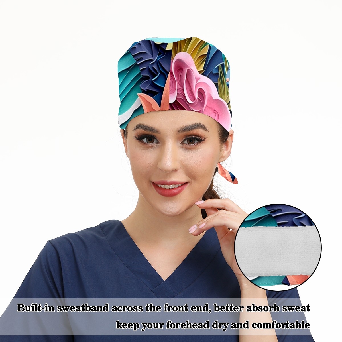 Working Caps with Button&Sweatband Satin Lined Cotton Adjustable Nurse Hats Elastic Band Scrub Cap Surgeon Hat Paper Art Drawing Beach (1)