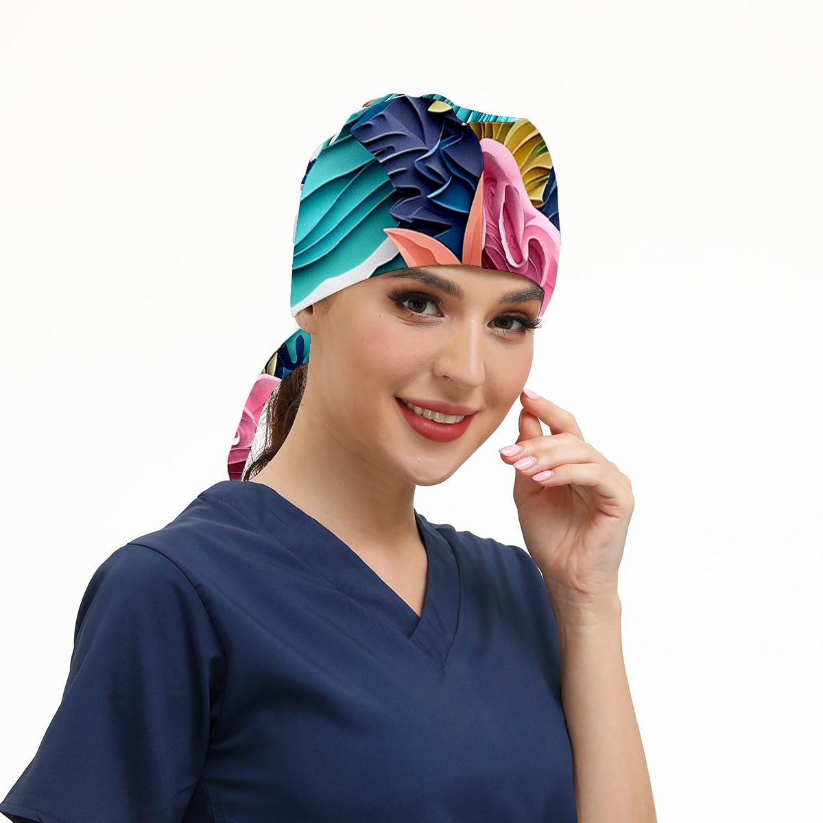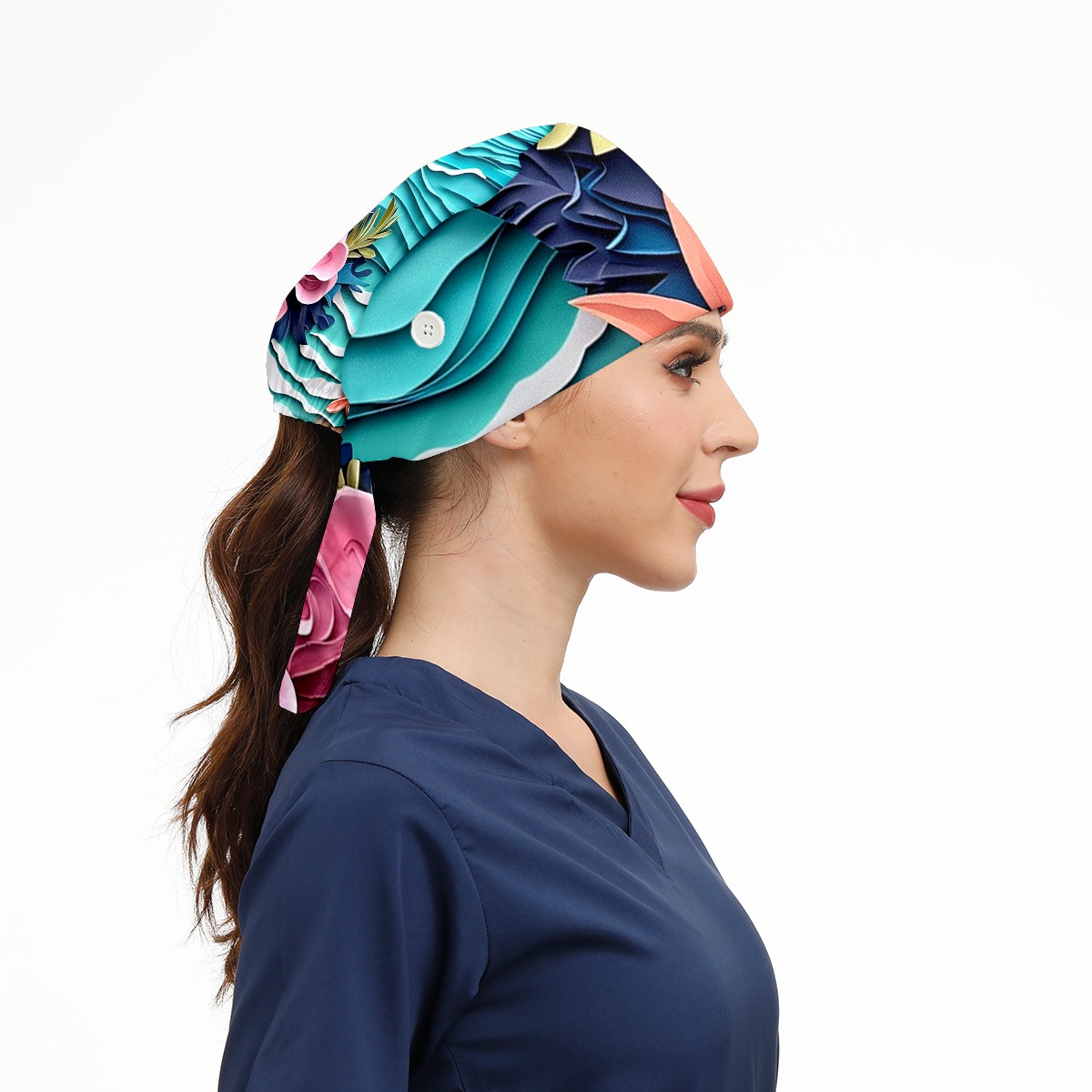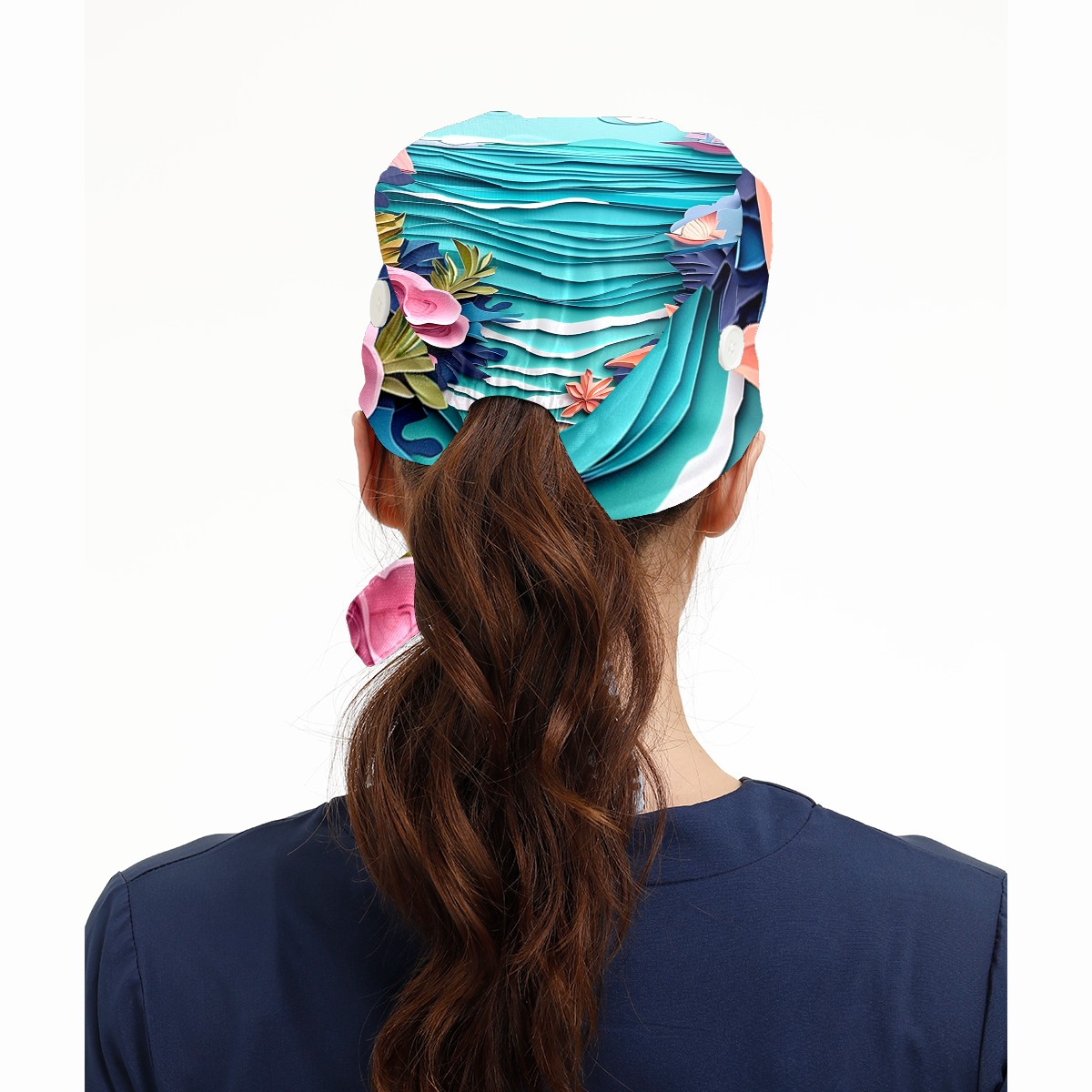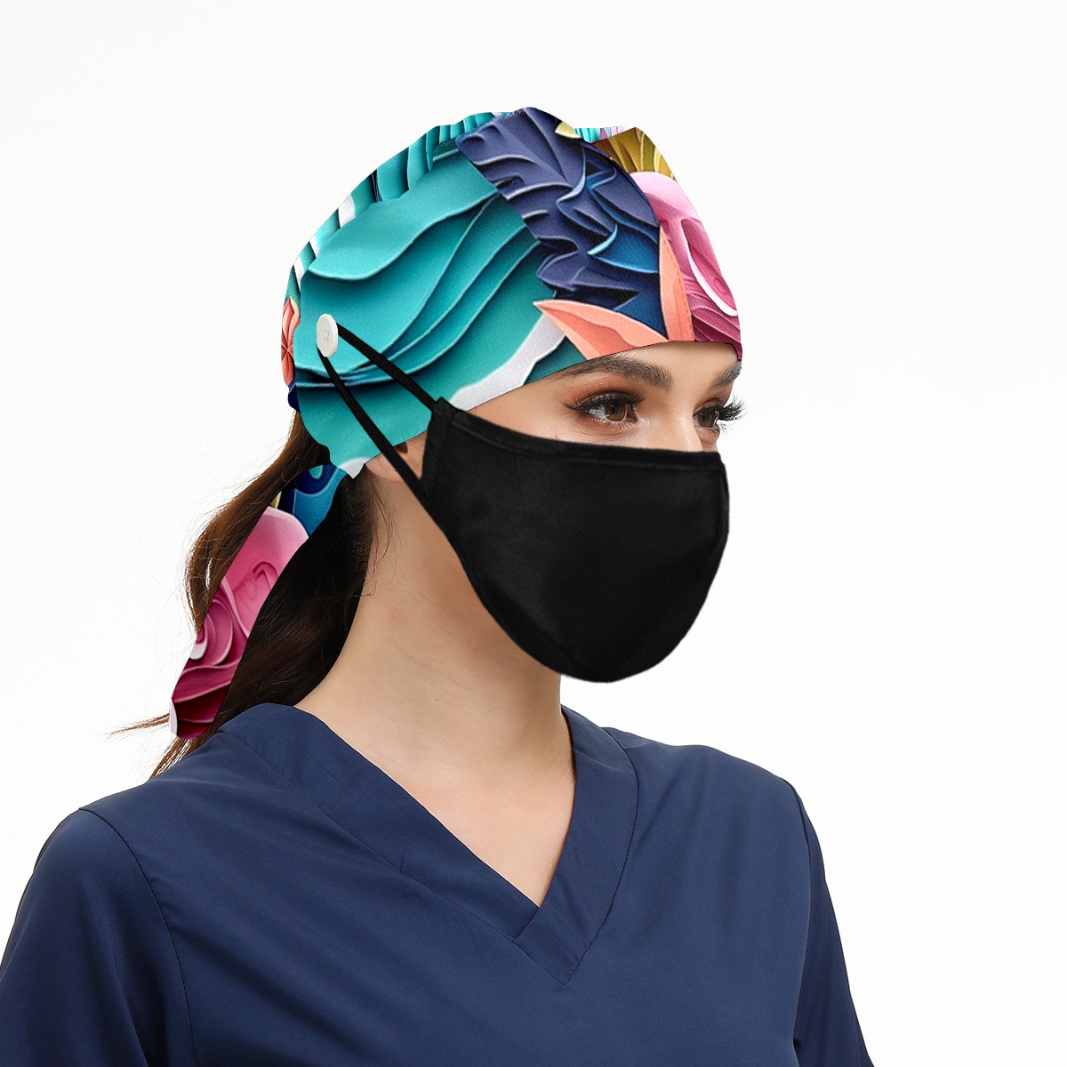 Working Caps with Button&Sweatband Satin Lined Cotton Adjustable Nurse Hats Elastic Band Scrub Cap Surgeon Hat Paper Art Drawing Beach (1)