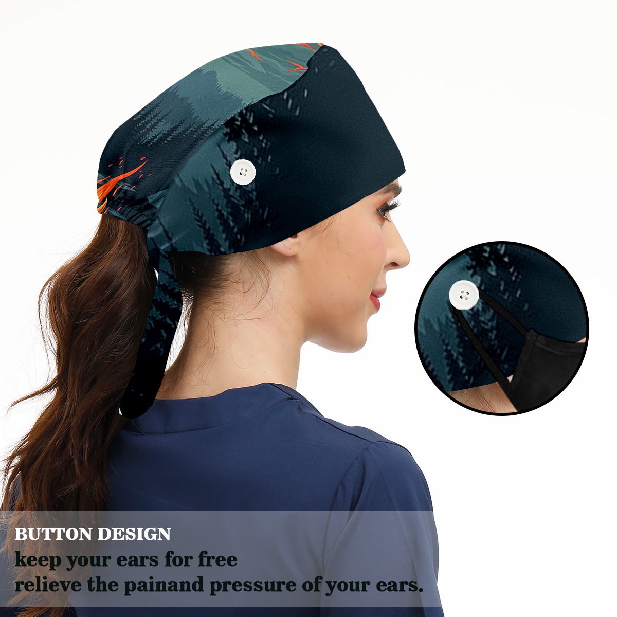 Working Caps with Button&Sweatband Satin Lined Cotton Adjustable Nurse Hats Elastic Band Scrub Cap Surgeon Hat Fish Flying Out Of The Ocean (5)