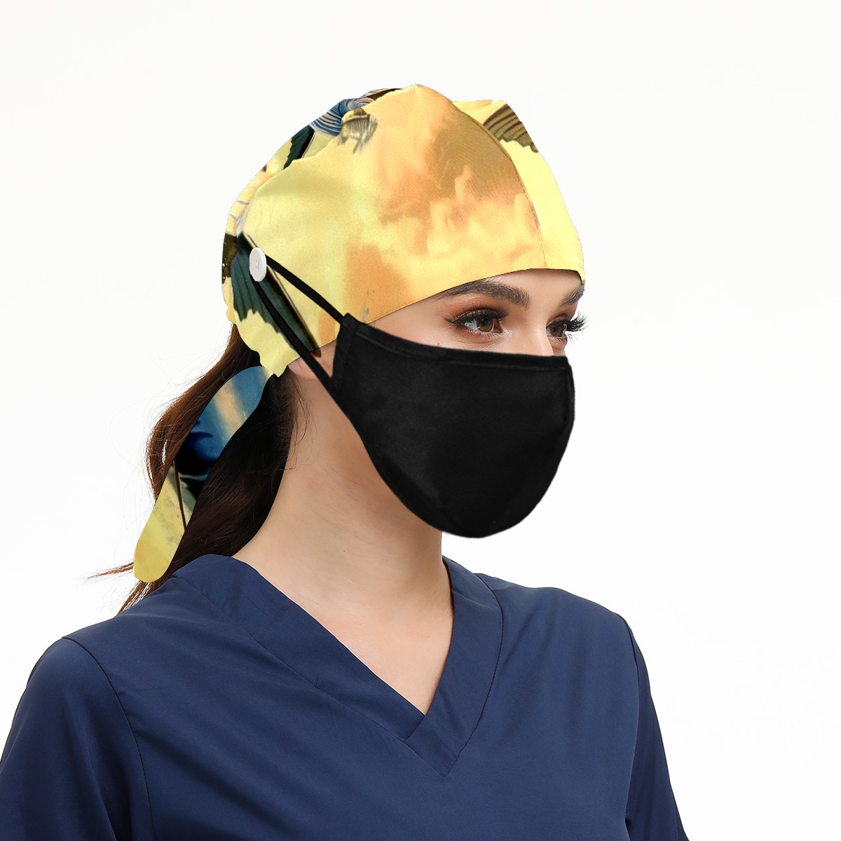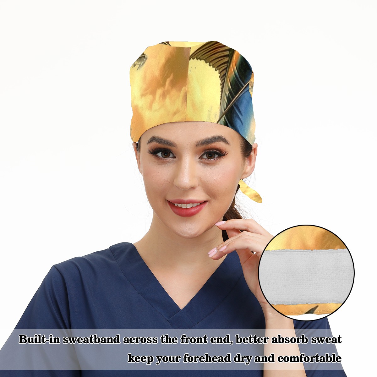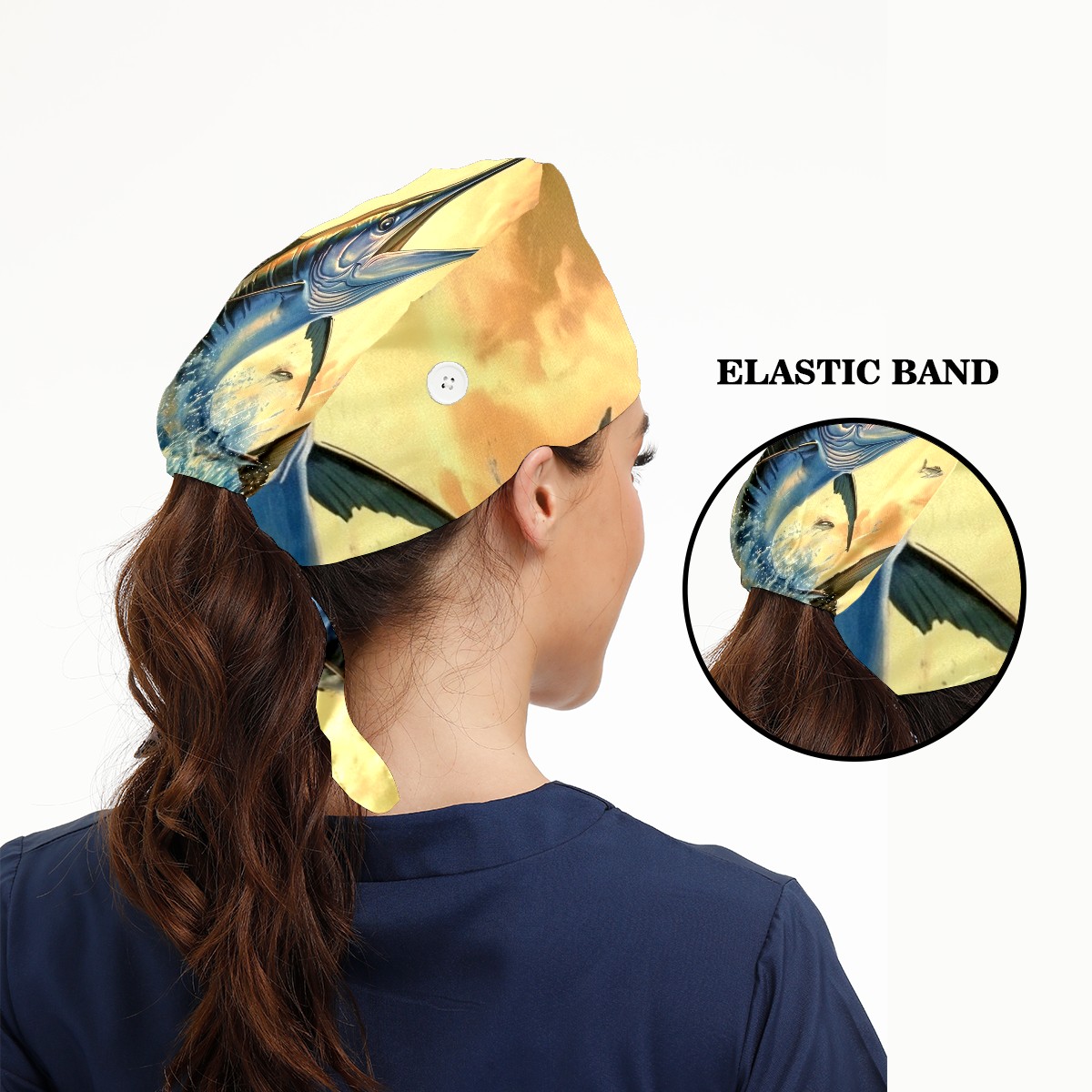 Working Caps with Button&Sweatband Satin Lined Cotton Adjustable Nurse Hats Elastic Band Scrub Cap Surgeon Hat Fish Flying Out Of The Ocean (1)