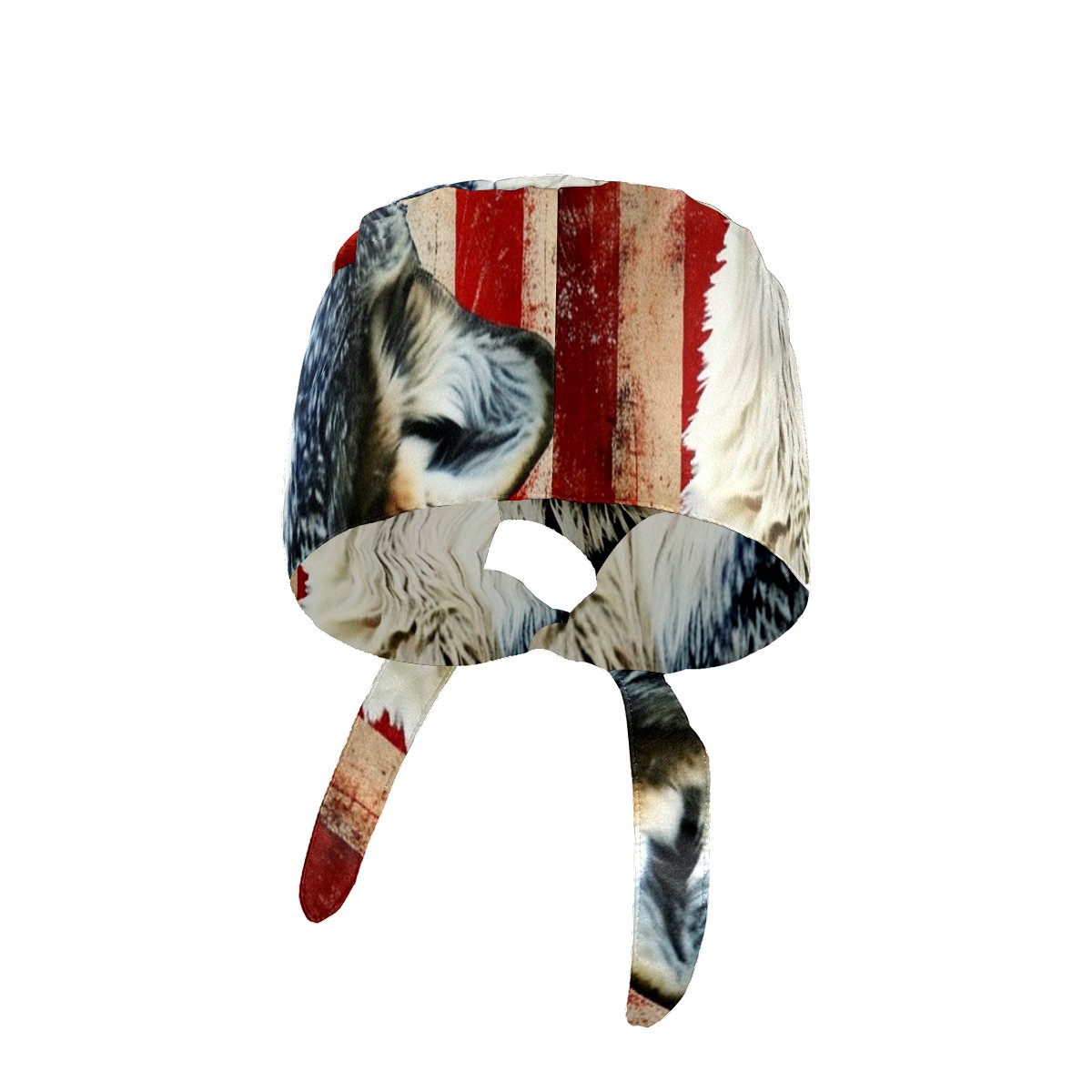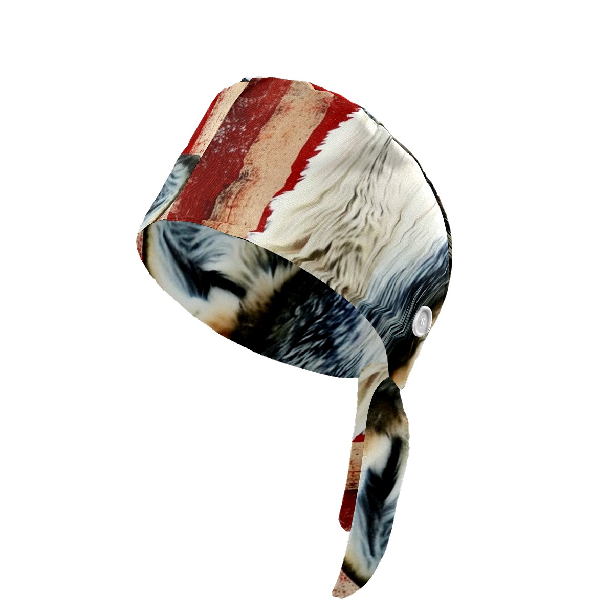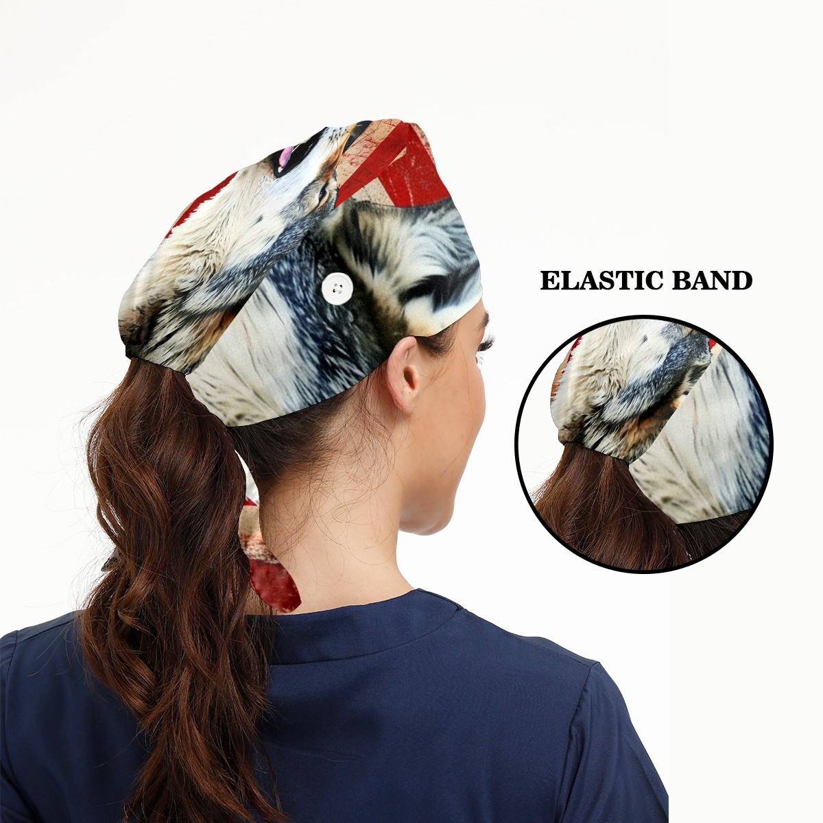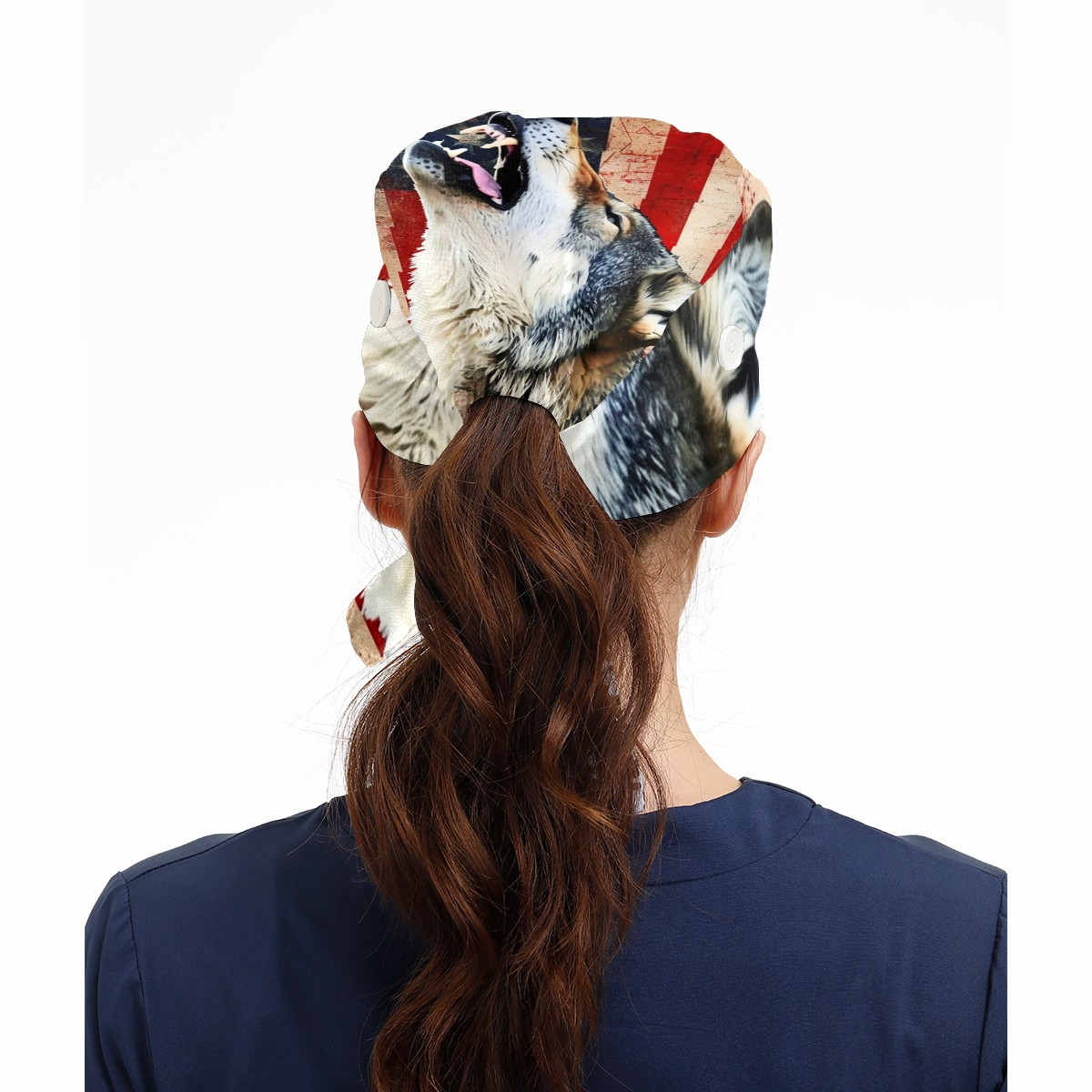Working Caps with Button&Sweatband Satin Lined Cotton Adjustable Nurse Hats Elastic Band Scrub Cap Surgeon Hat American Flag And Wolf (3)