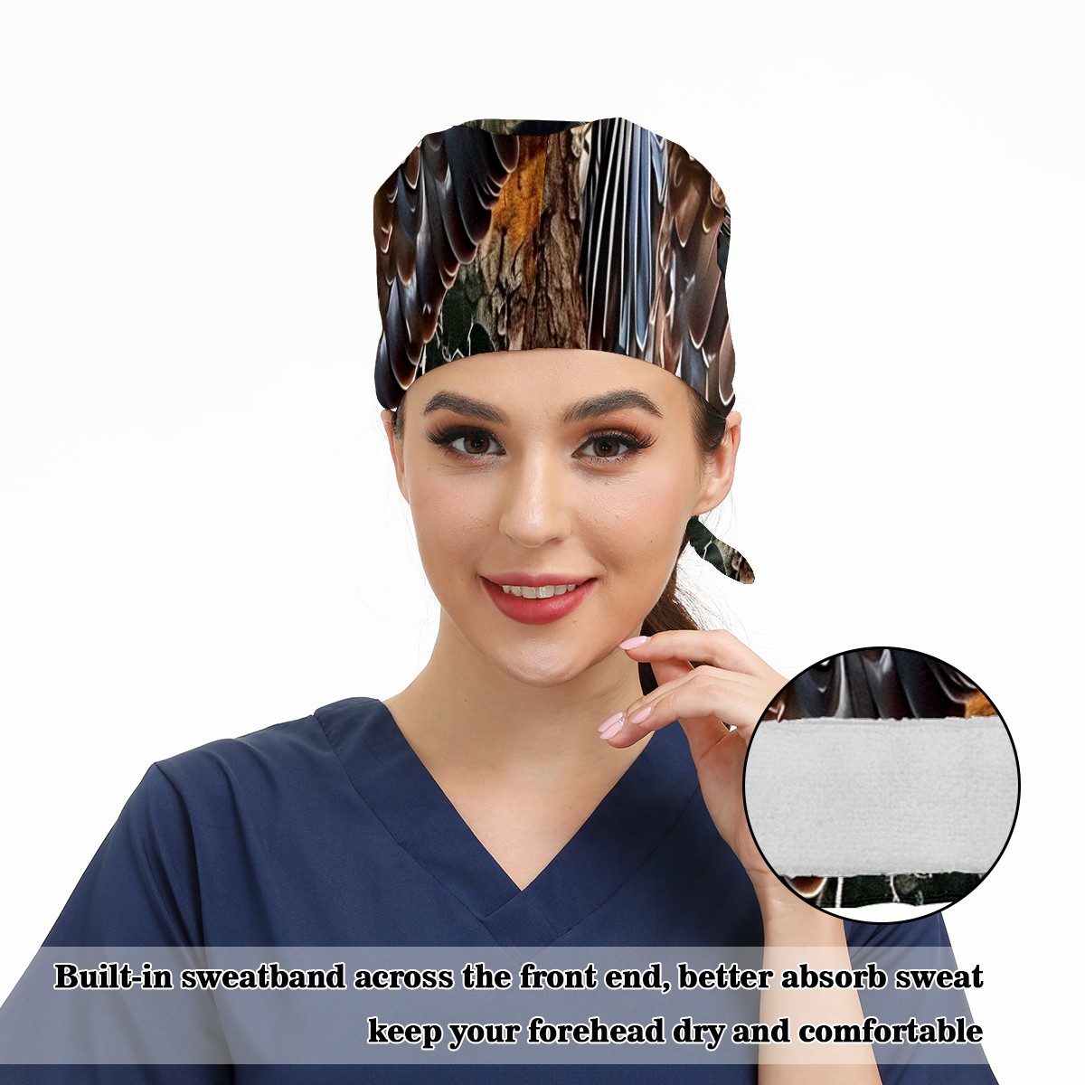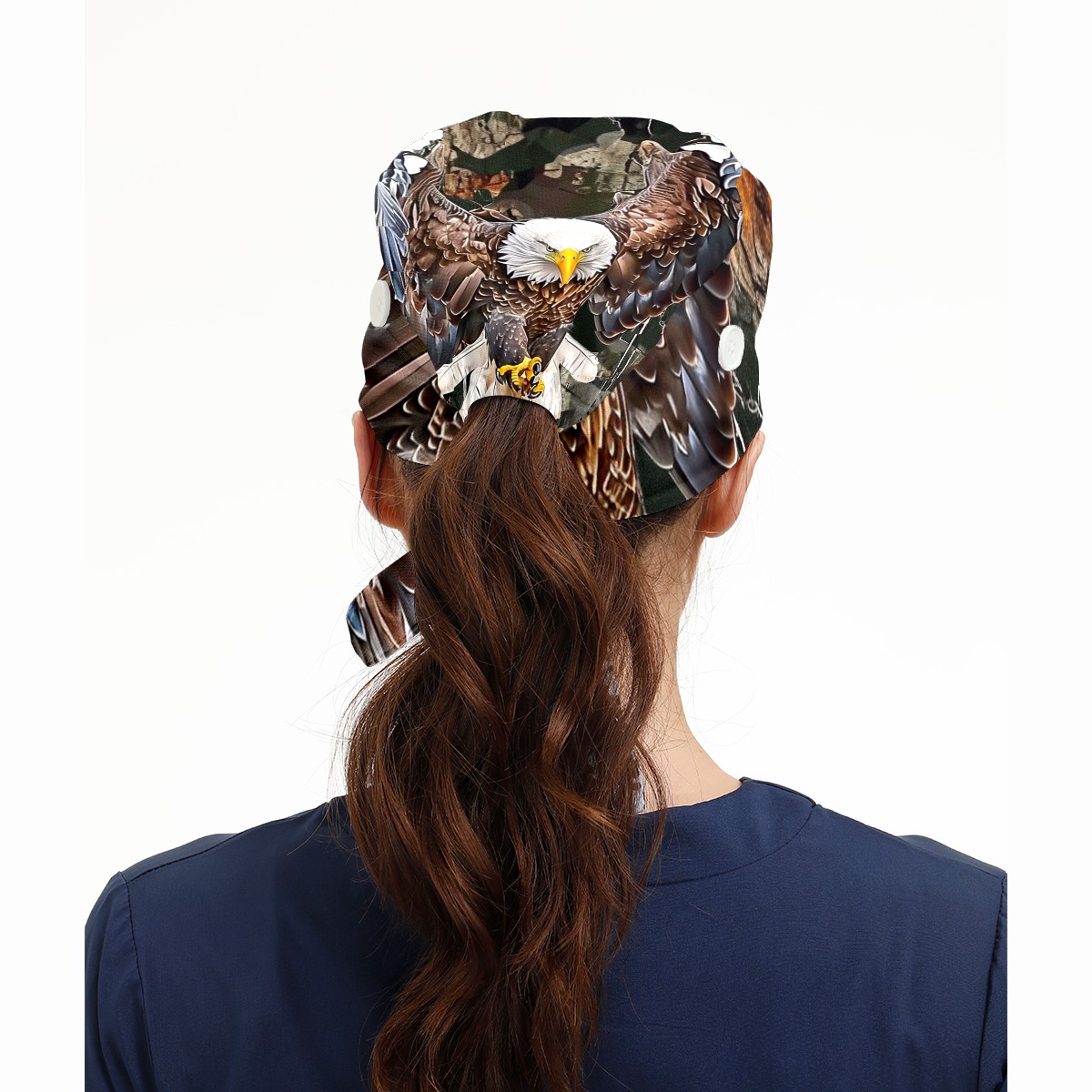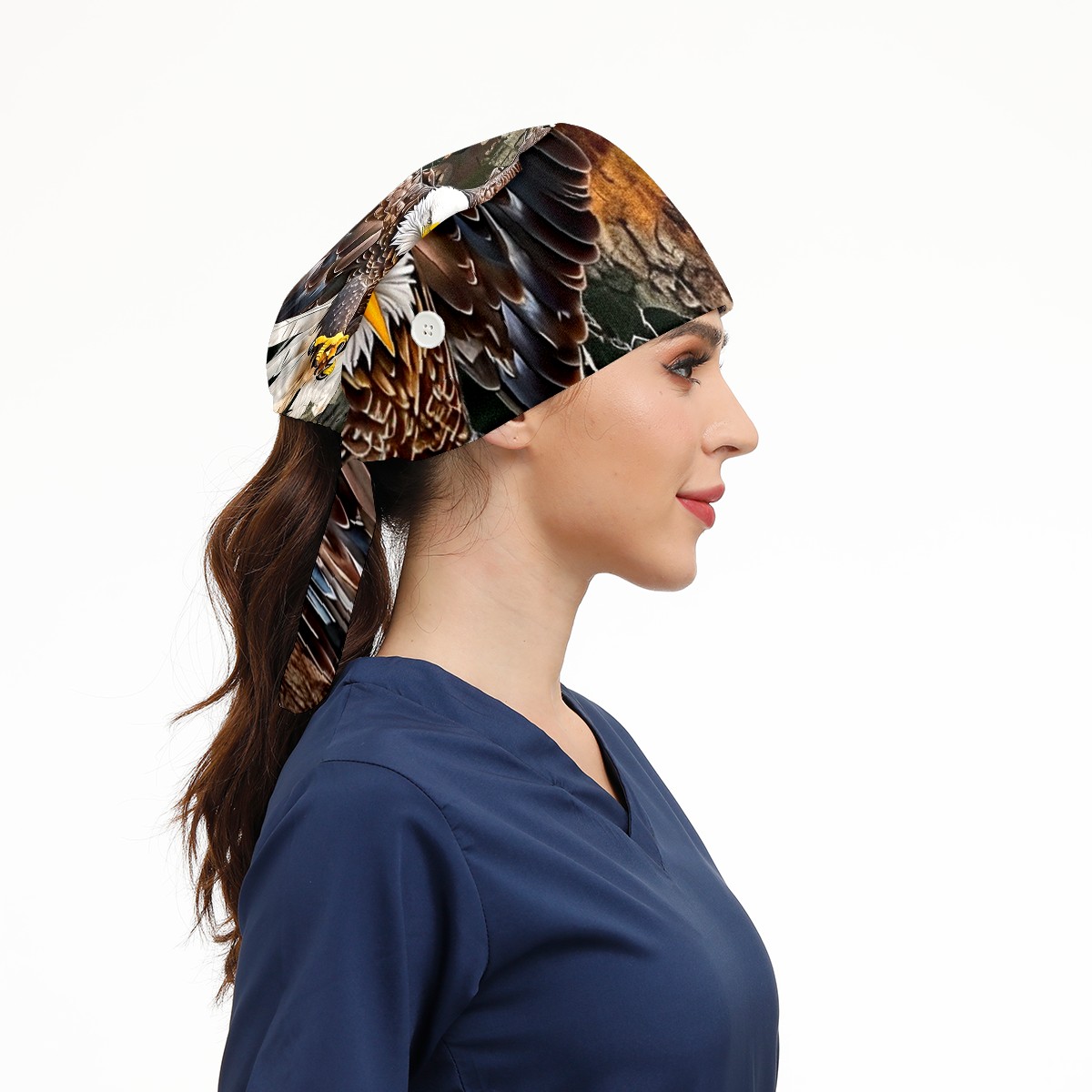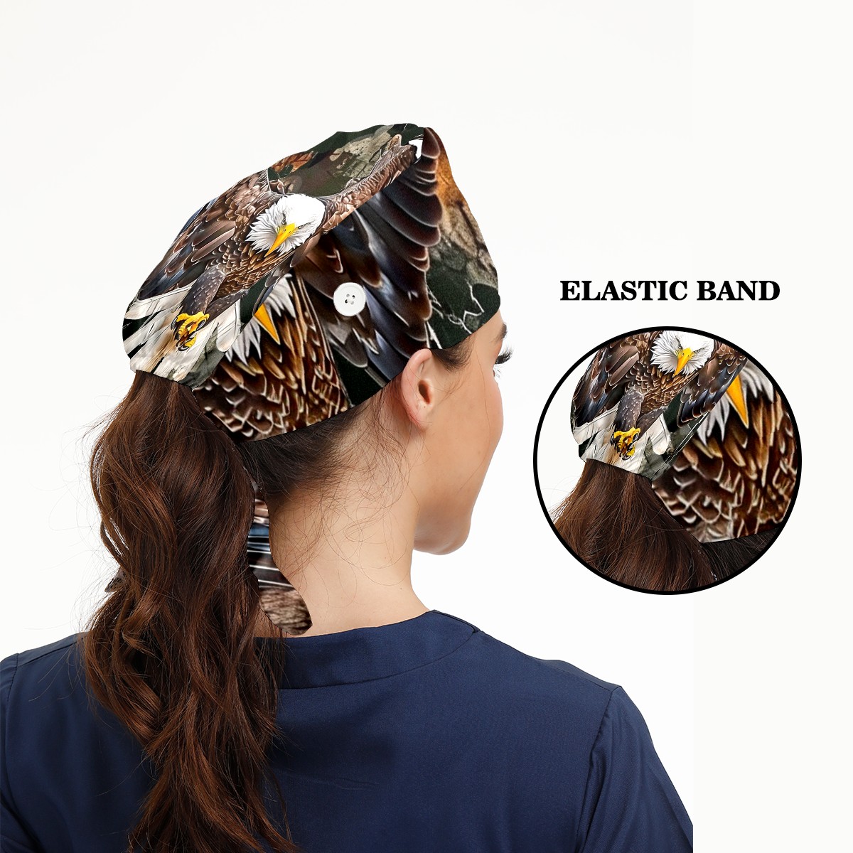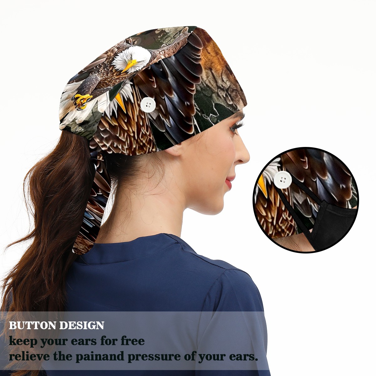 Working Caps with Button&Sweatband Satin Lined Cotton Adjustable Nurse Hats Elastic Band Scrub Cap Surgeon Hat American Flag And Eagle (7)