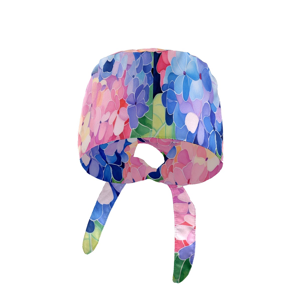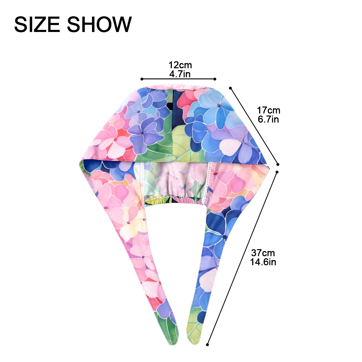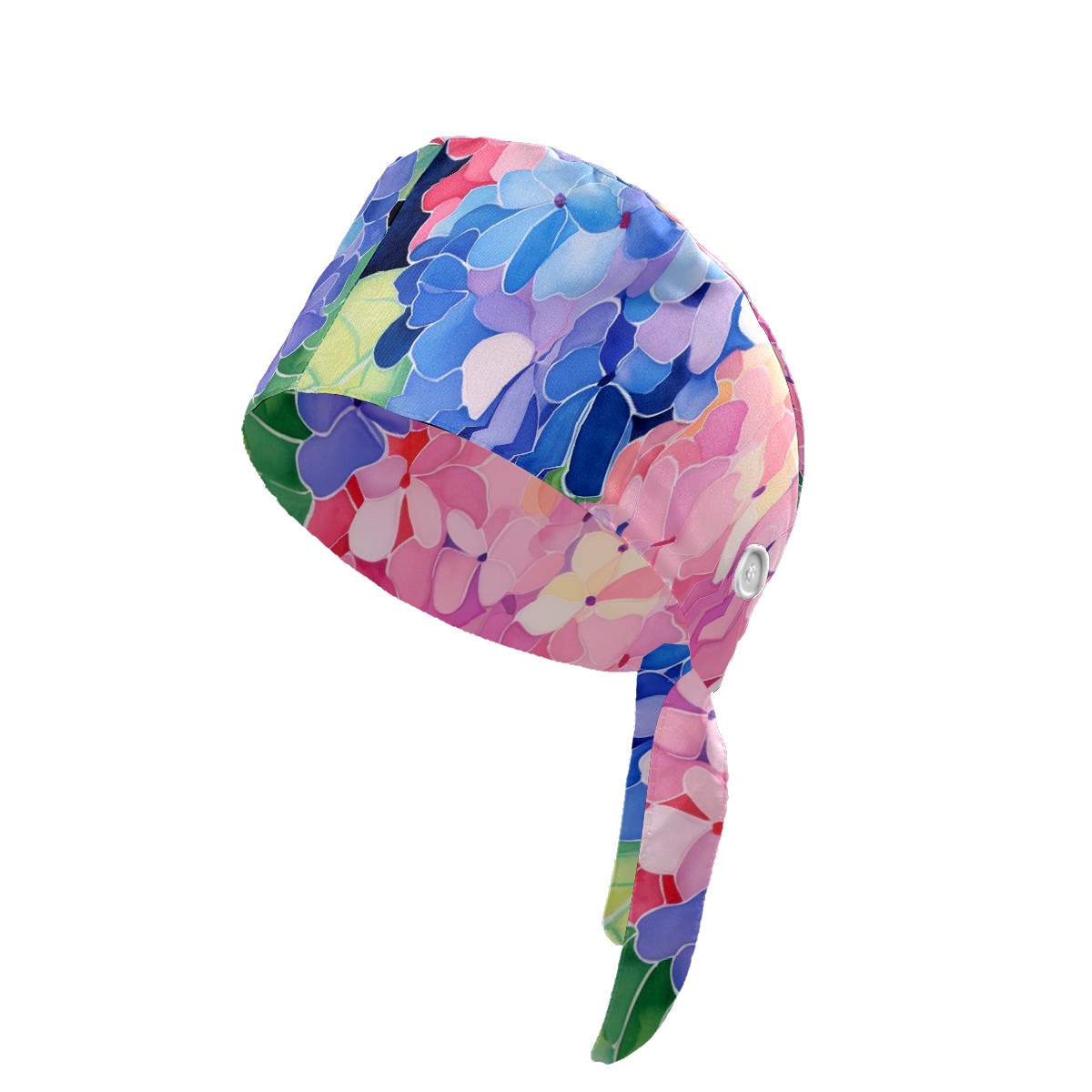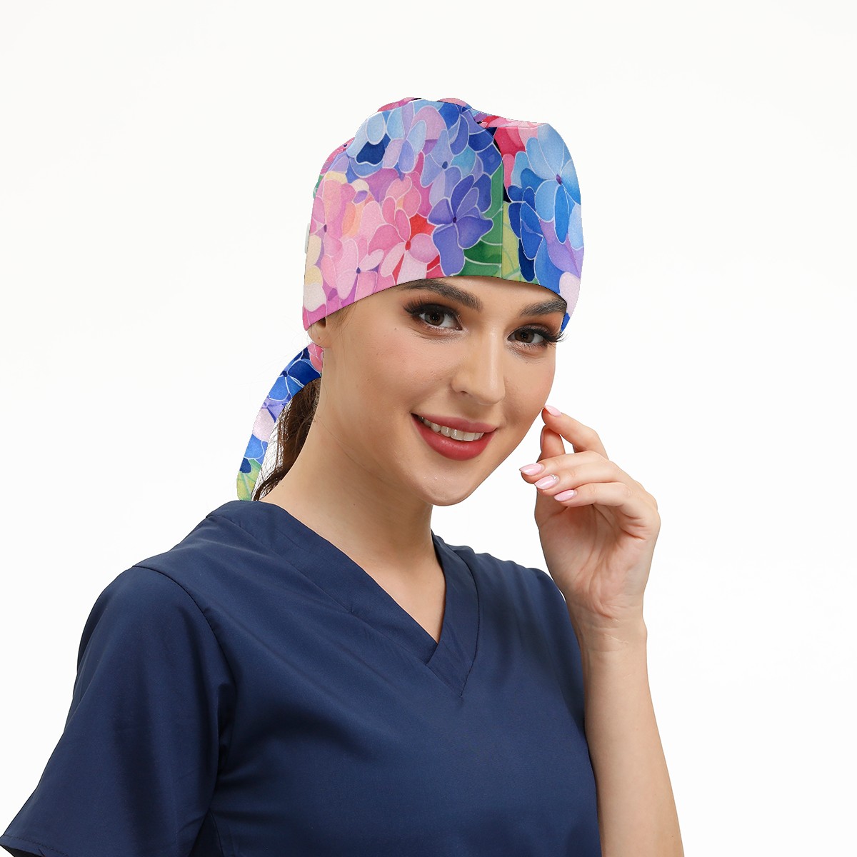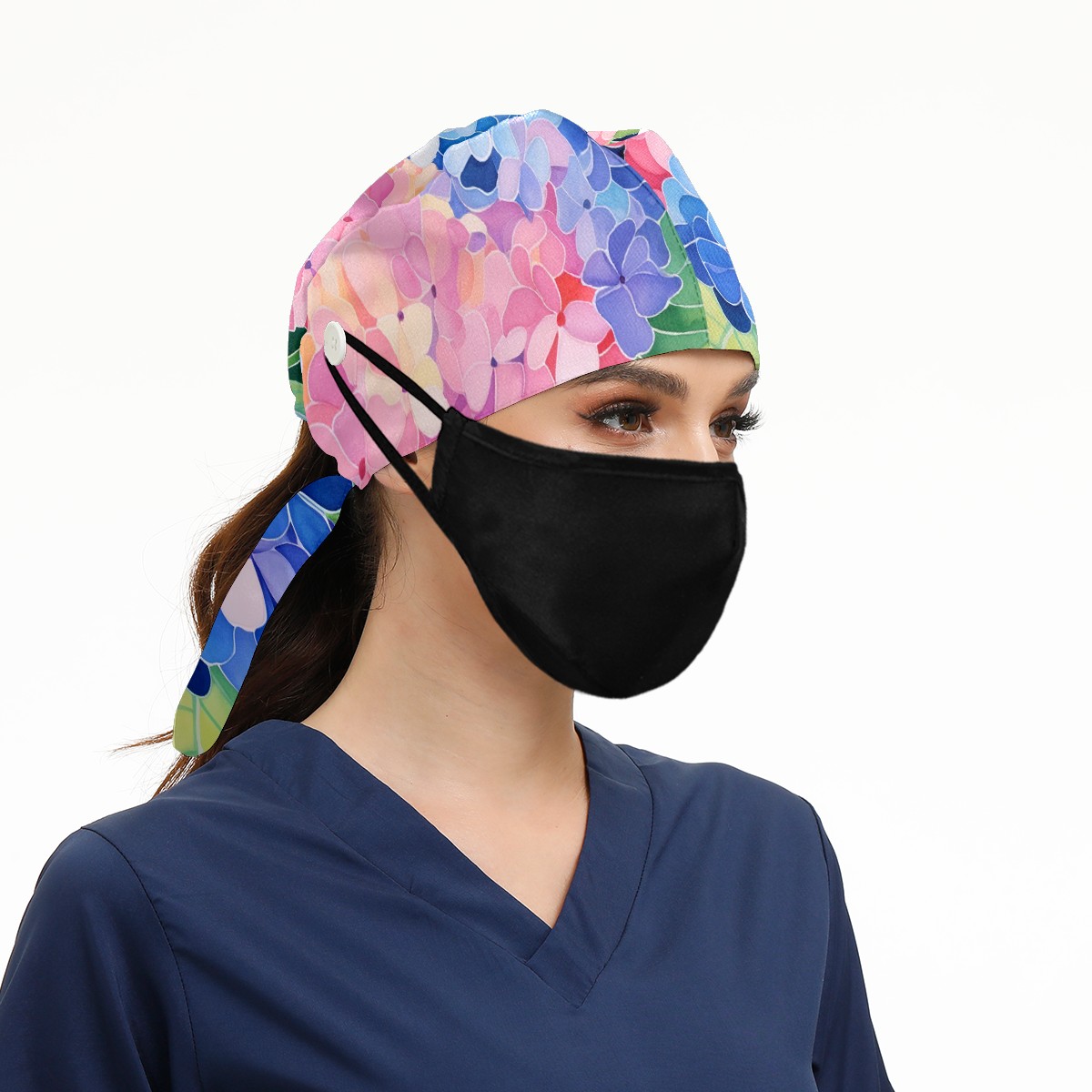 Working Caps with Button&Sweatband Satin Lined Cotton Adjustable Nurse Hats Elastic Band Scrub Cap Surgeon Hat Watercolour Flower