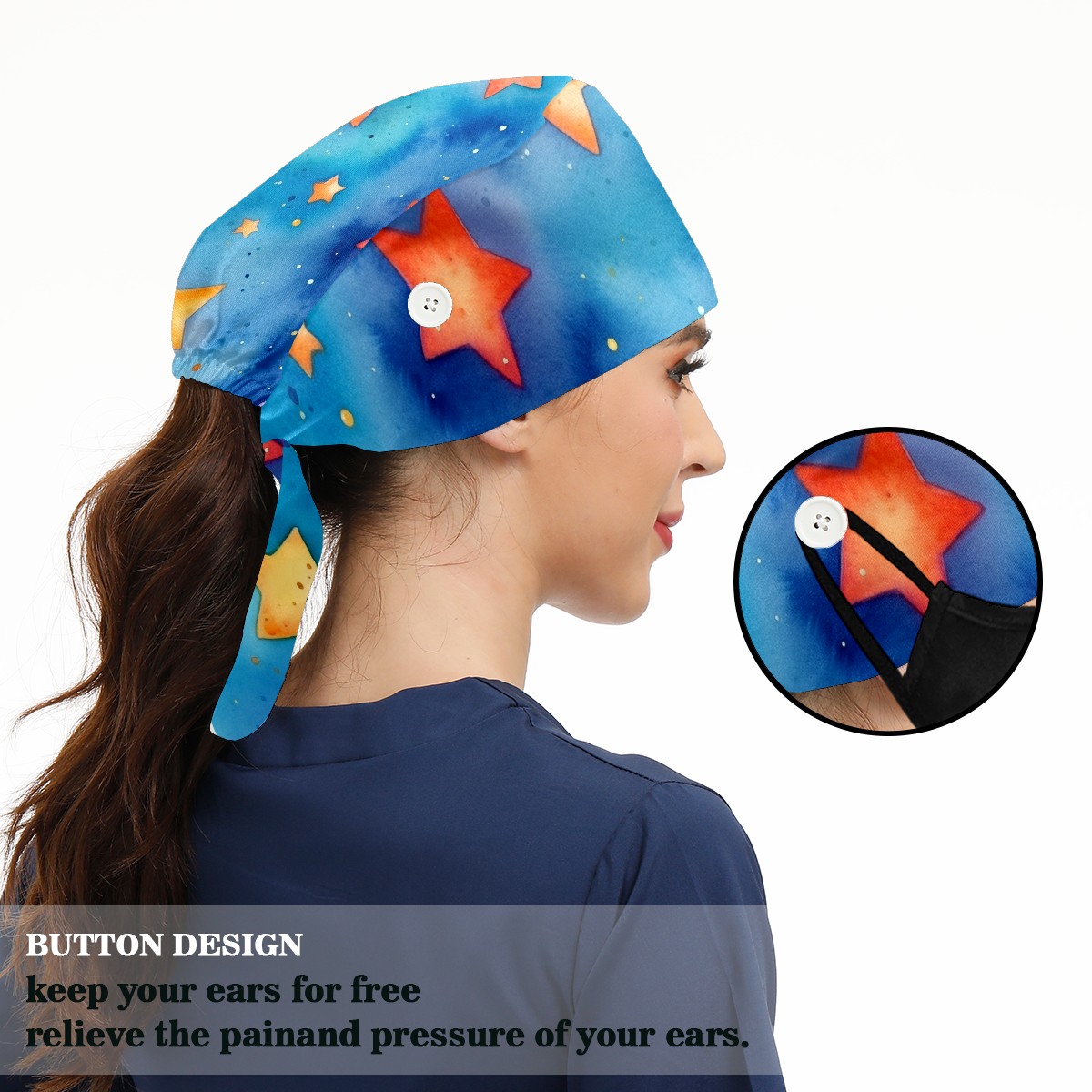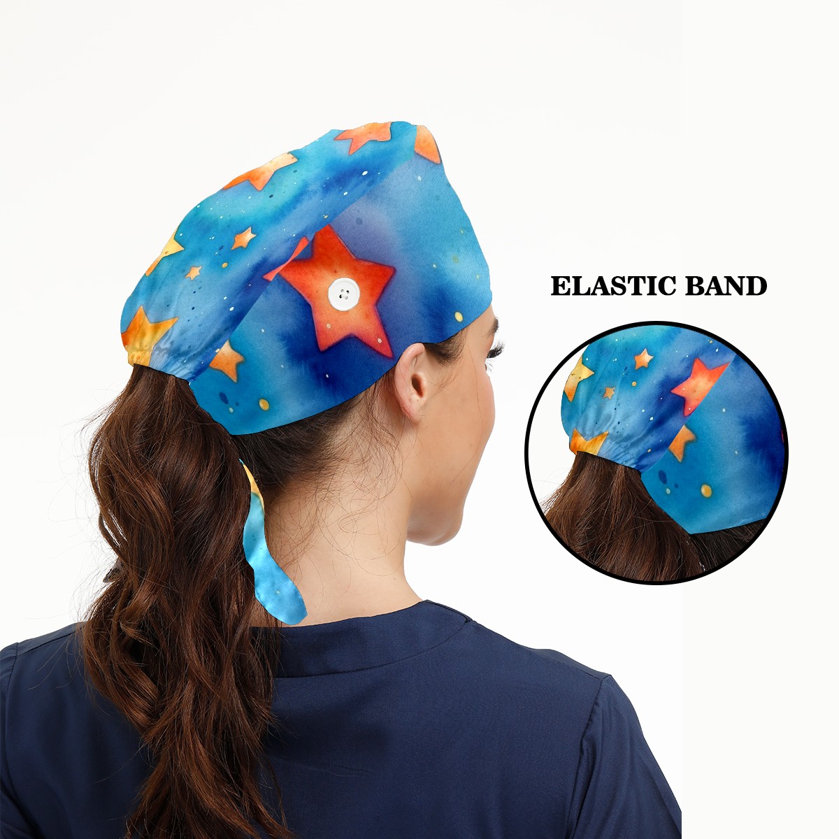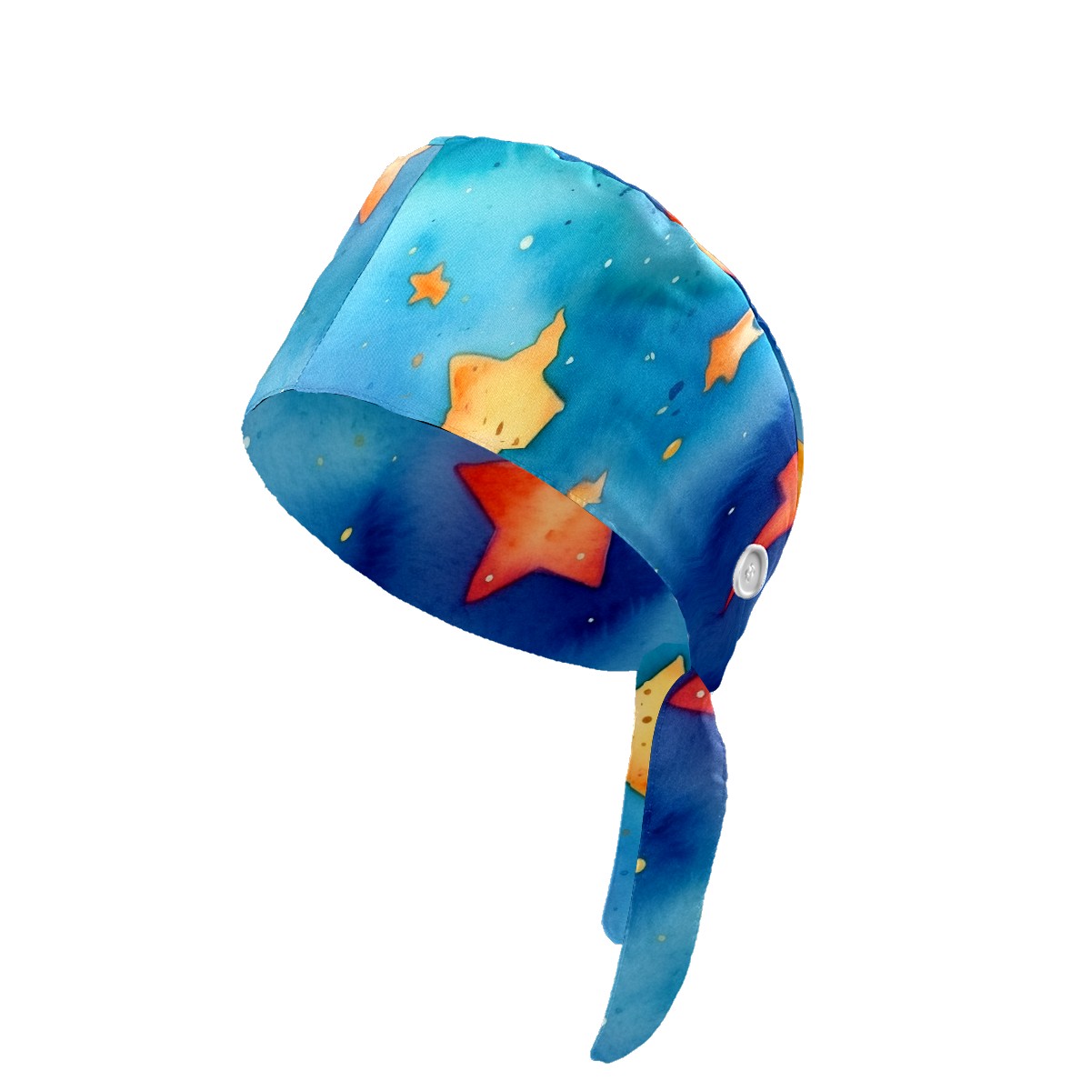 Working Caps with Button&Sweatband Satin Lined Cotton Adjustable Nurse Hats Elastic Band Scrub Cap Surgeon Hat Watercolor Stars