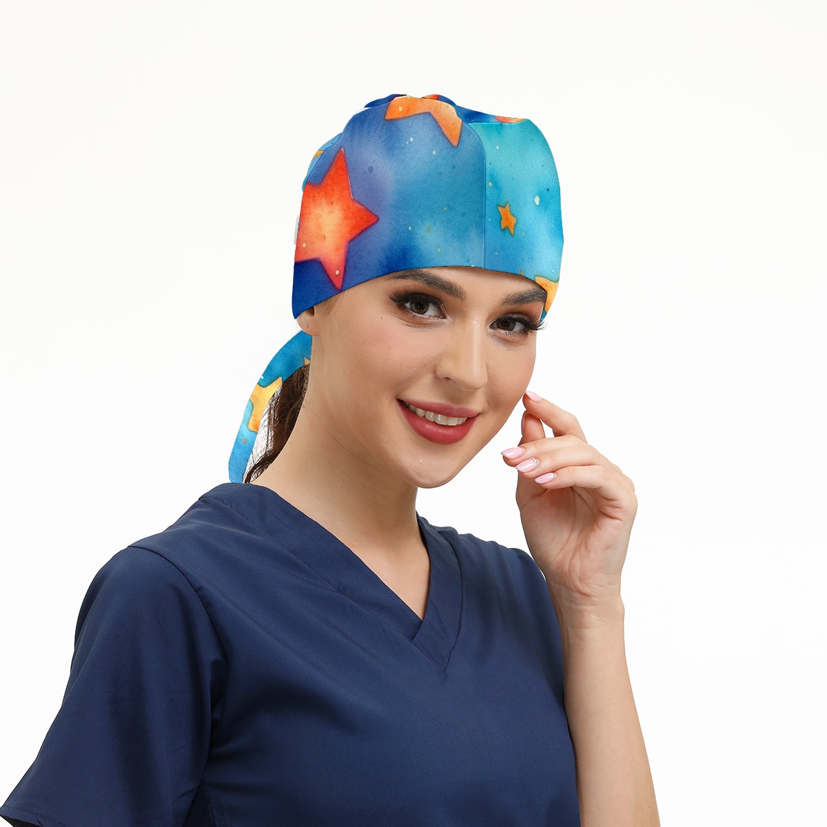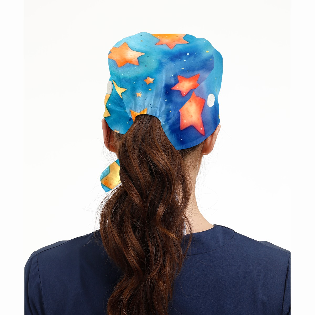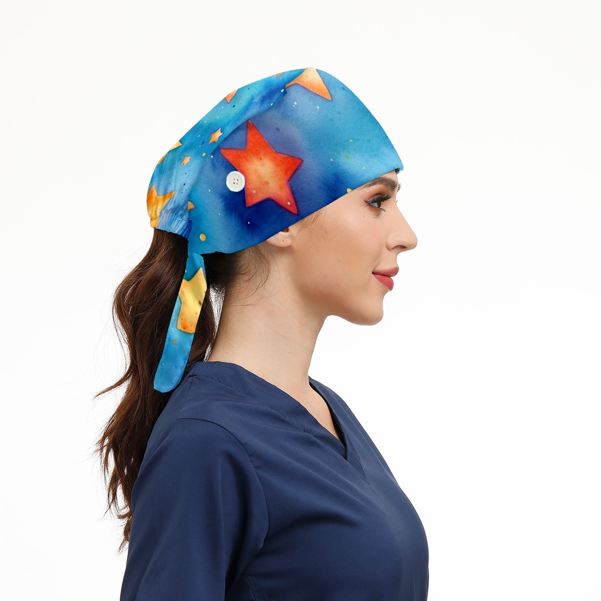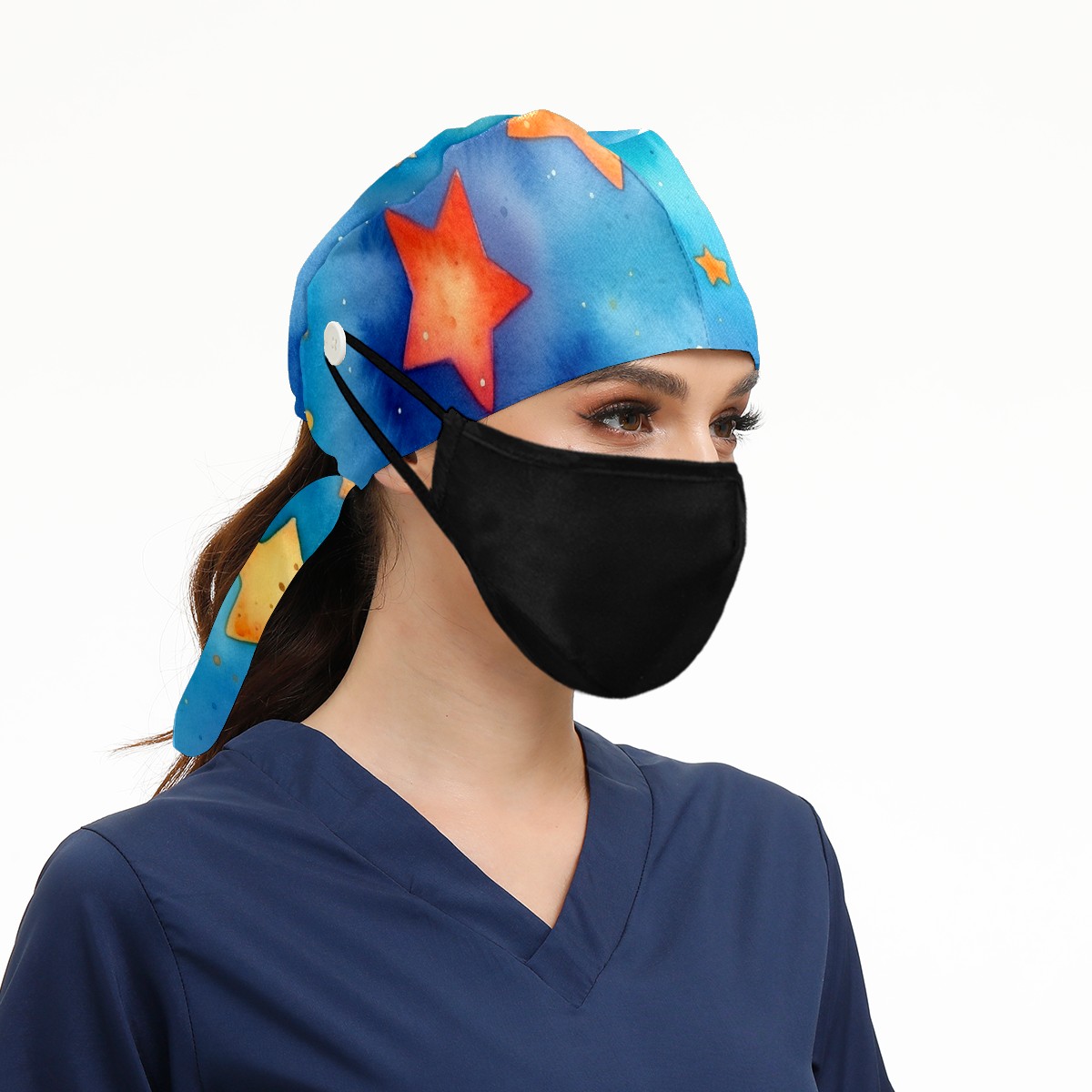 Working Caps with Button&Sweatband Satin Lined Cotton Adjustable Nurse Hats Elastic Band Scrub Cap Surgeon Hat Watercolor Stars