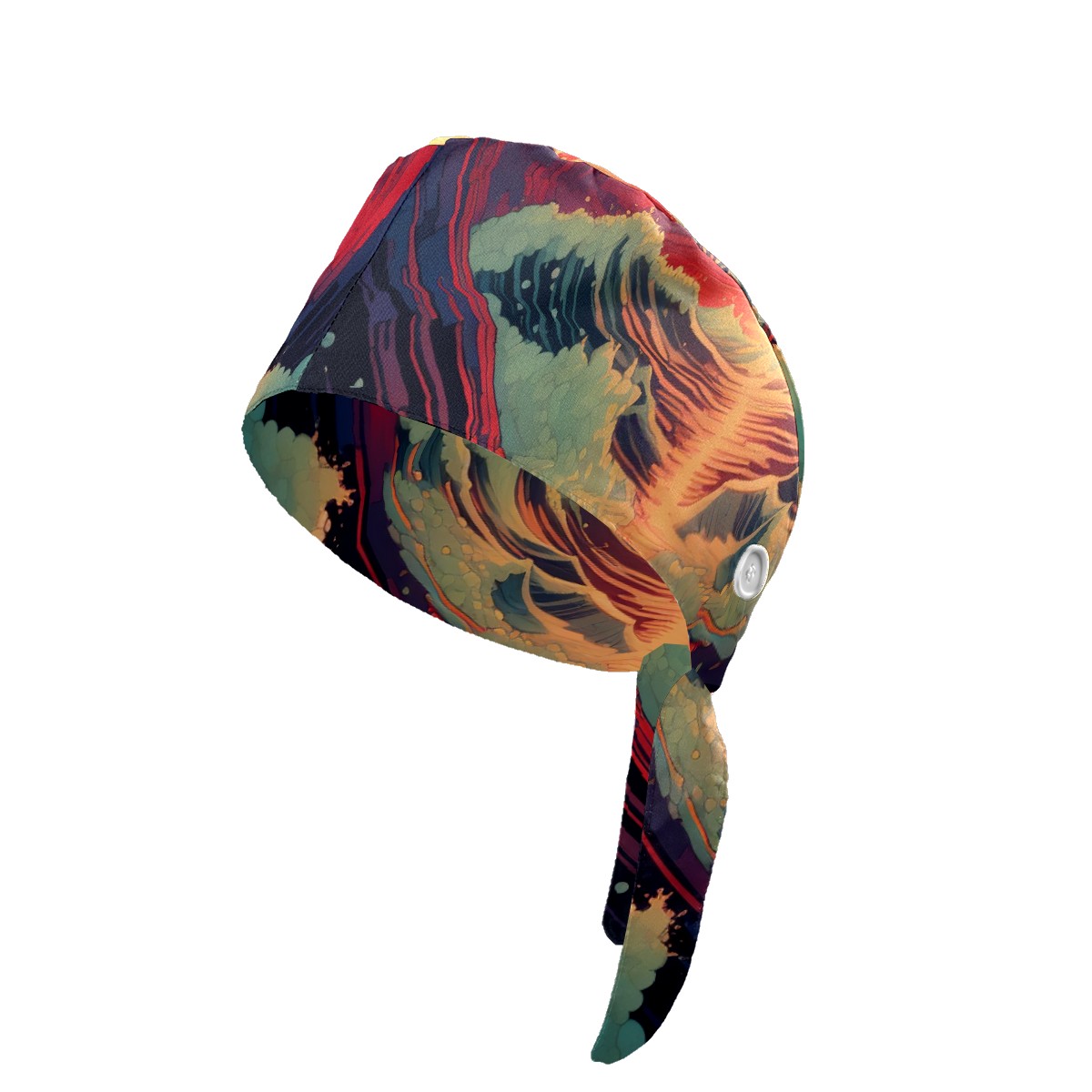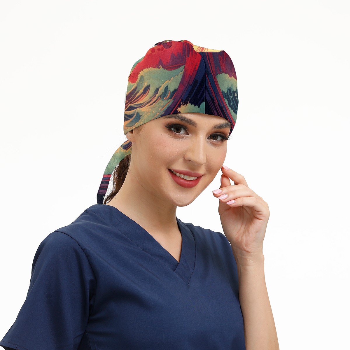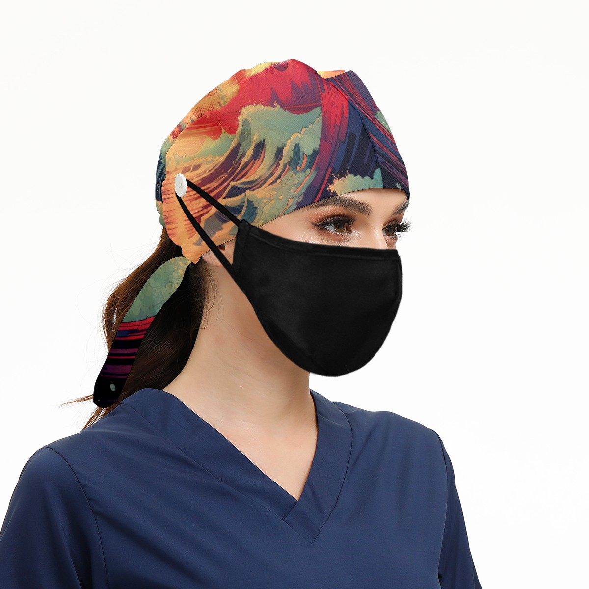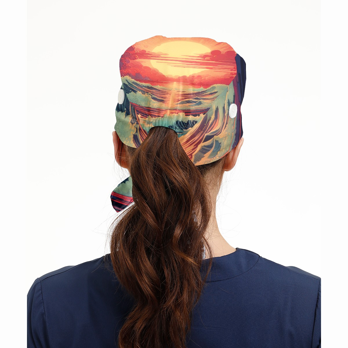 Working Caps with Button&Sweatband Satin Lined Cotton Adjustable Nurse Hats Elastic Band Scrub Cap Surgeon Hat Sunset Wave