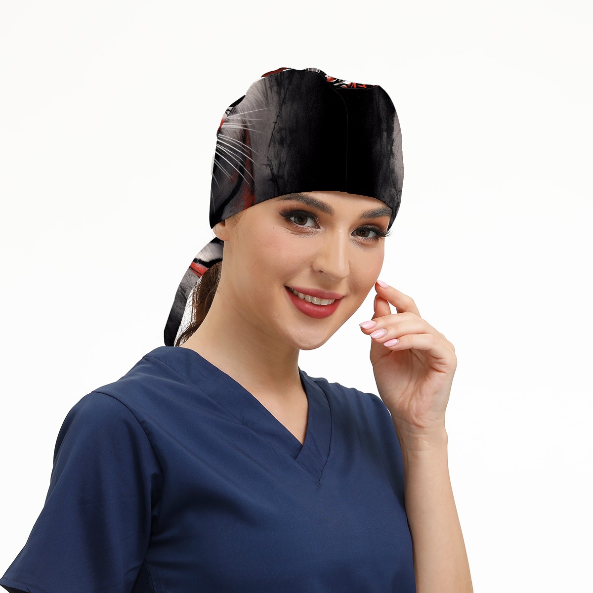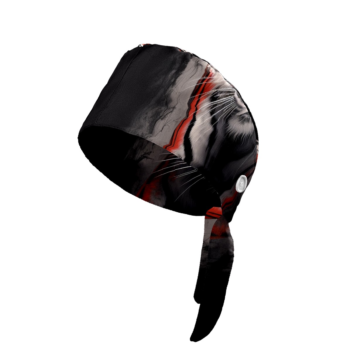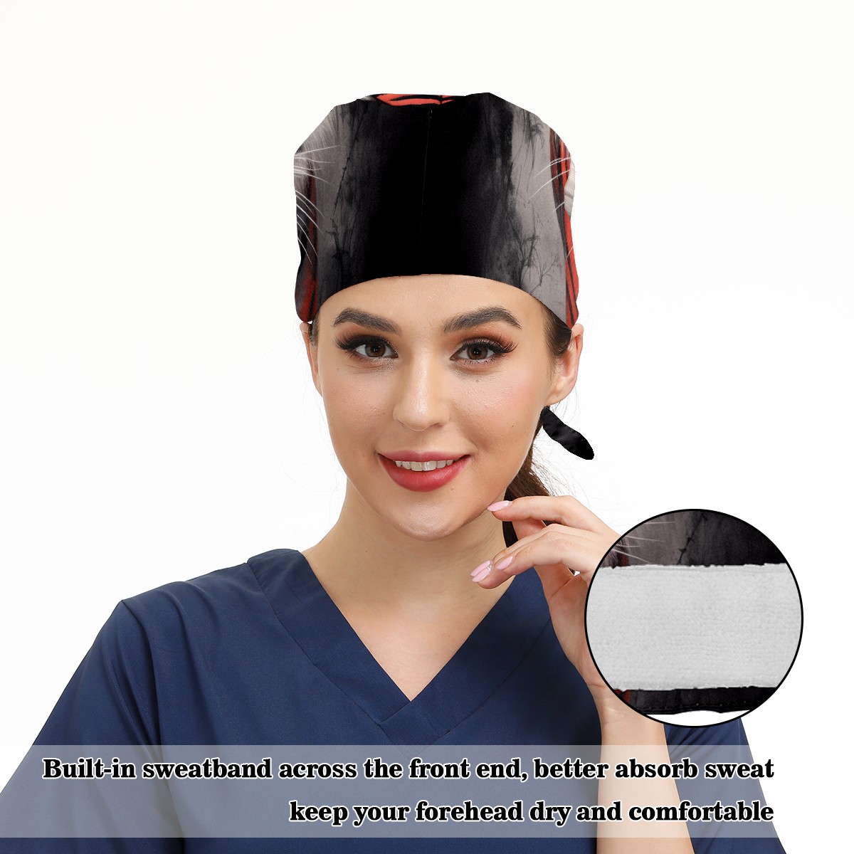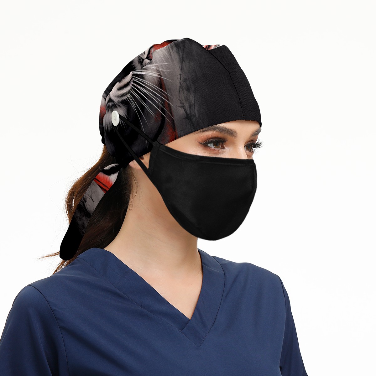 Working Caps with Button&Sweatband Satin Lined Cotton Adjustable Nurse Hats Elastic Band Scrub Cap Surgeon Hat Tiger 2