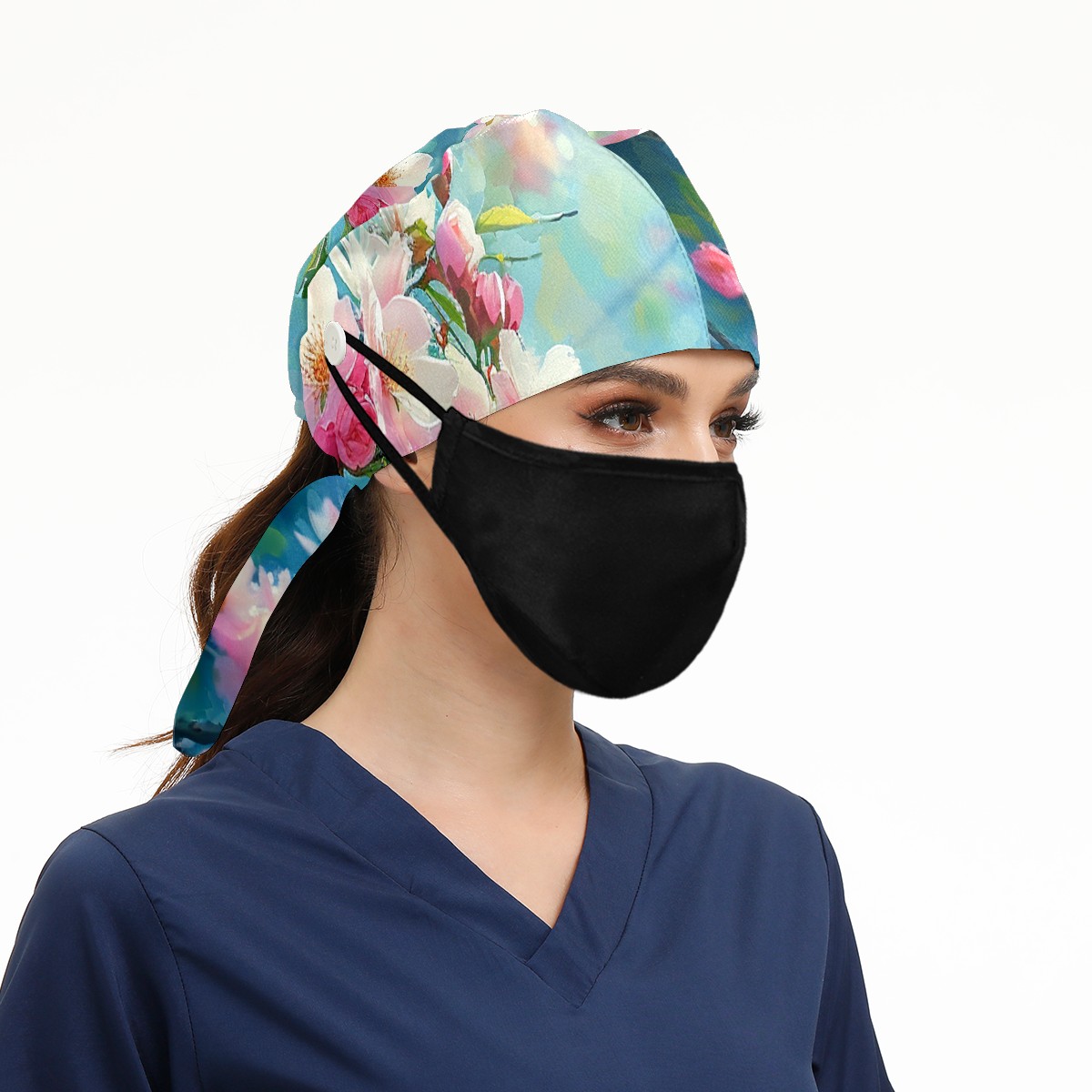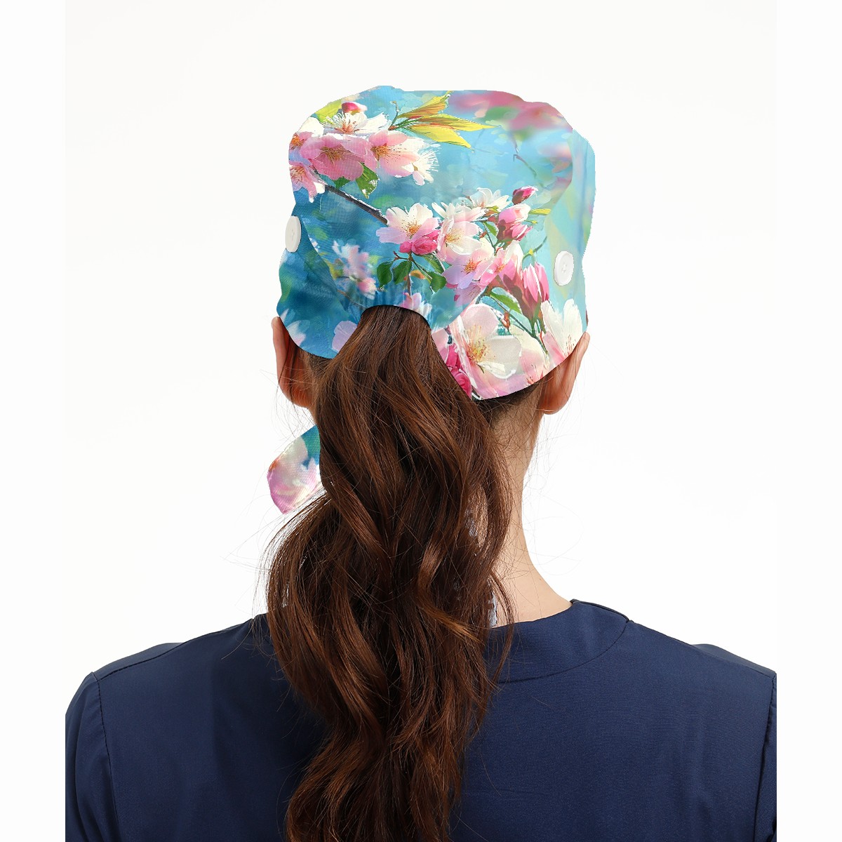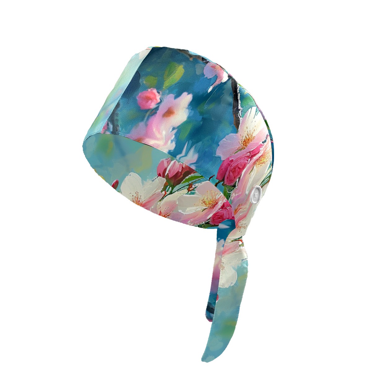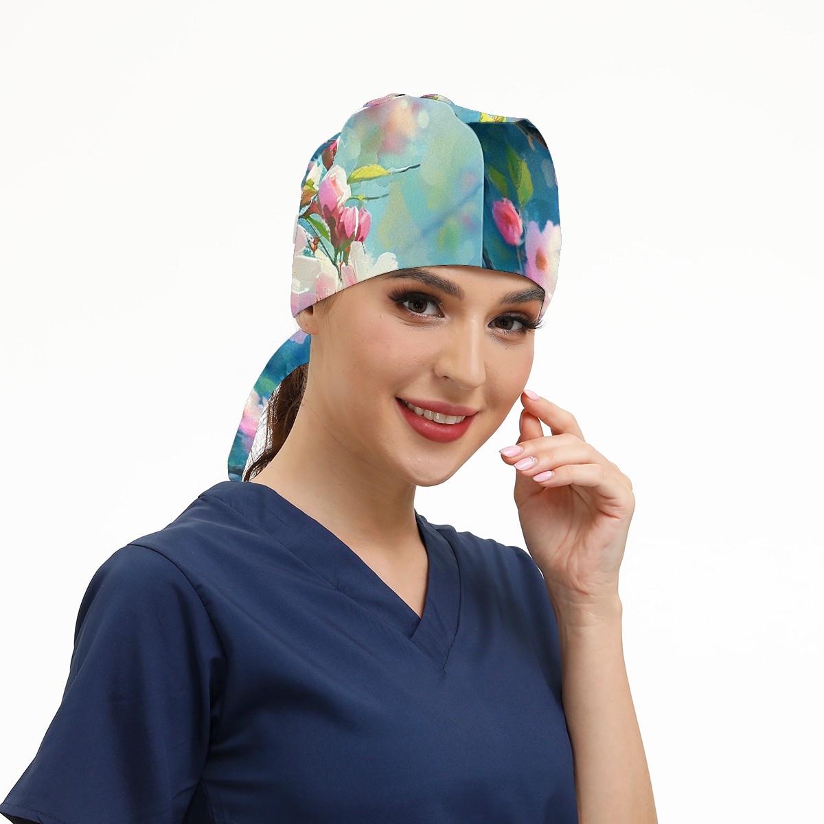 Working Caps with Button&Sweatband Satin Lined Cotton Adjustable Nurse Hats Elastic Band Scrub Cap Surgeon Hat Spring