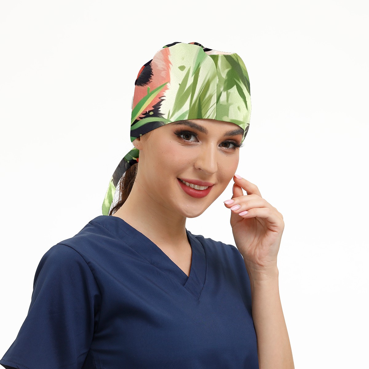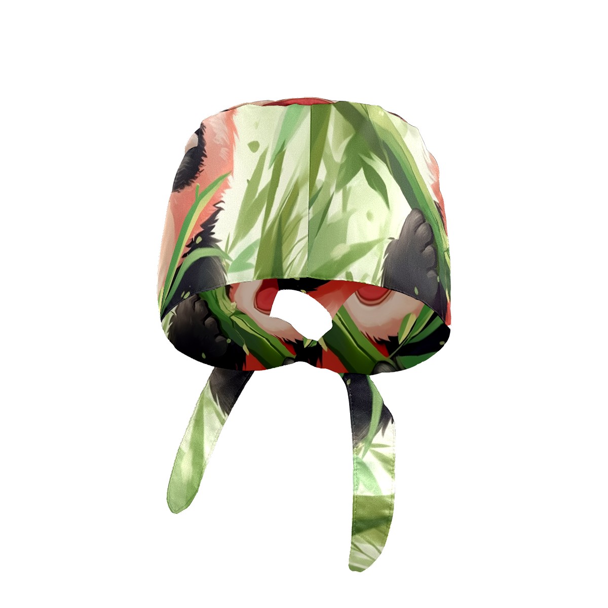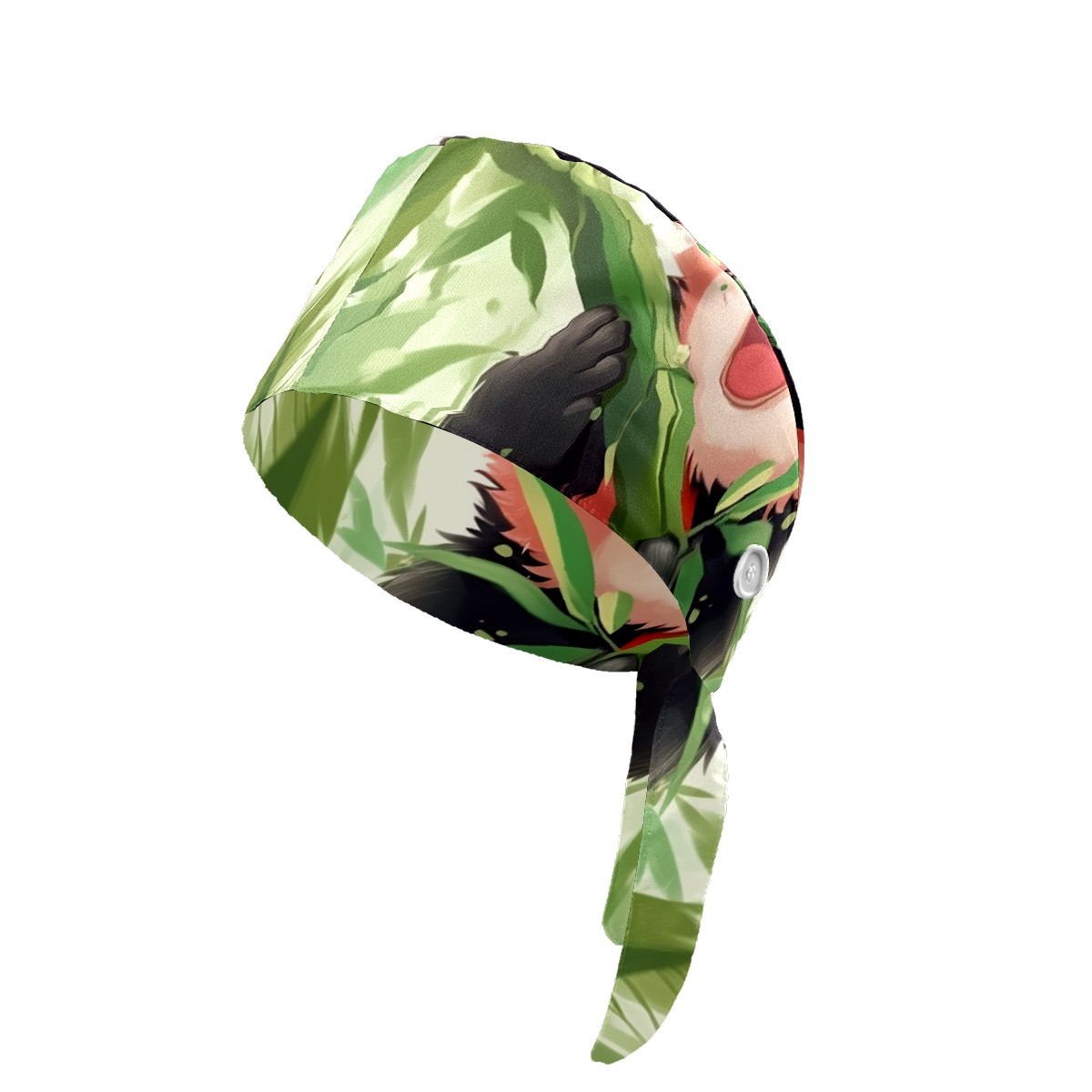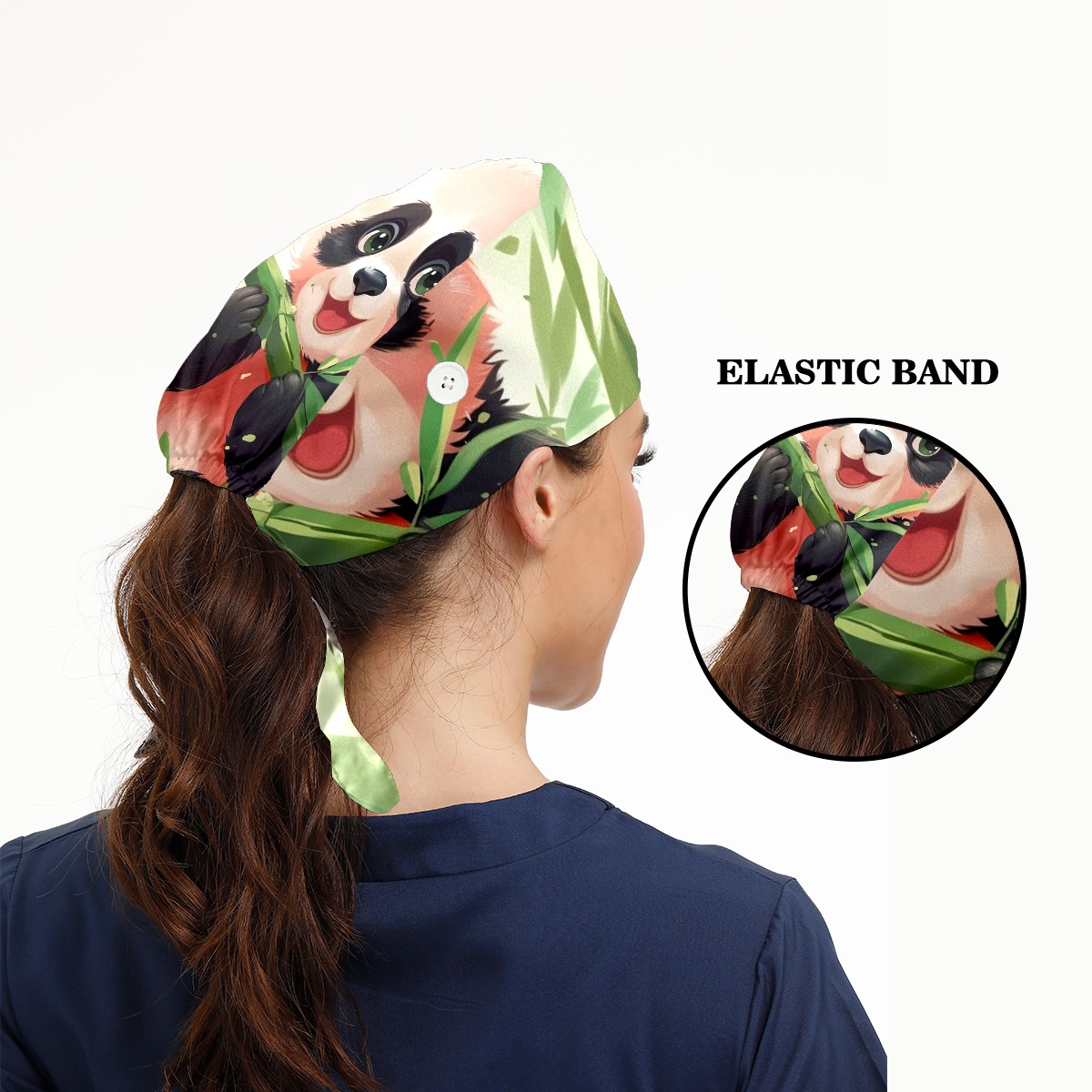 Working Caps with Button&Sweatband Satin Lined Cotton Adjustable Nurse Hats Elastic Band Scrub Cap Surgeon Hat Panda 3