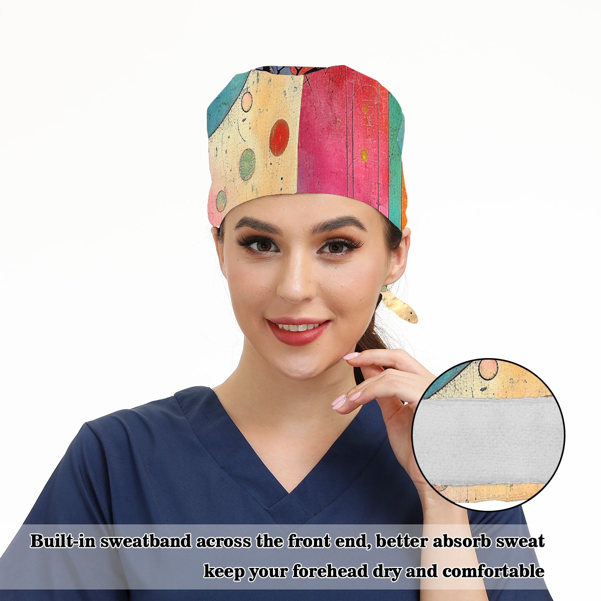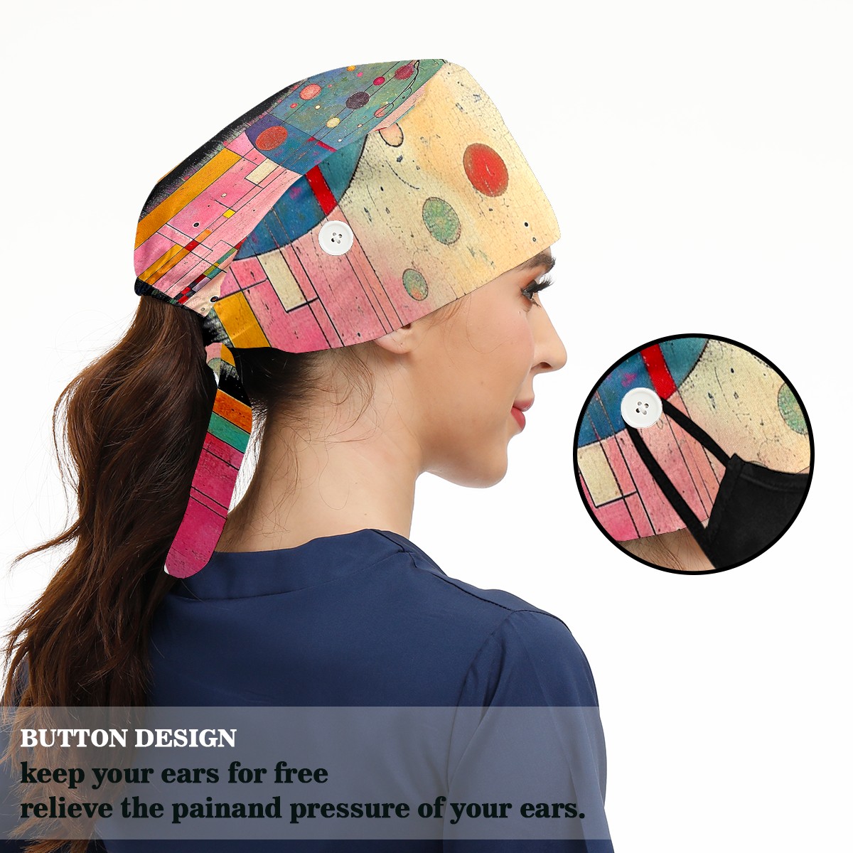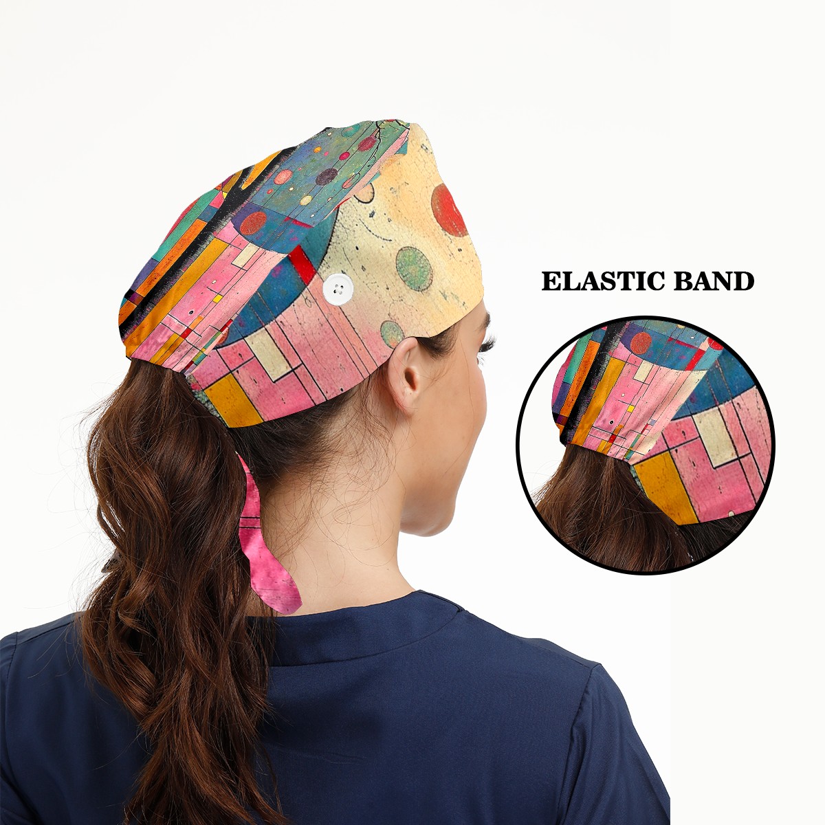 Working Caps with Button&Sweatband Satin Lined Cotton Adjustable Nurse Hats Elastic Band Scrub Cap Surgeon Hat Modern Abstraction