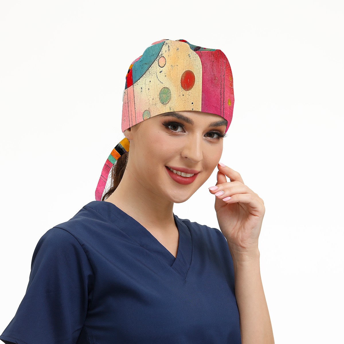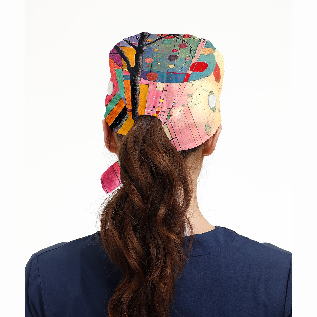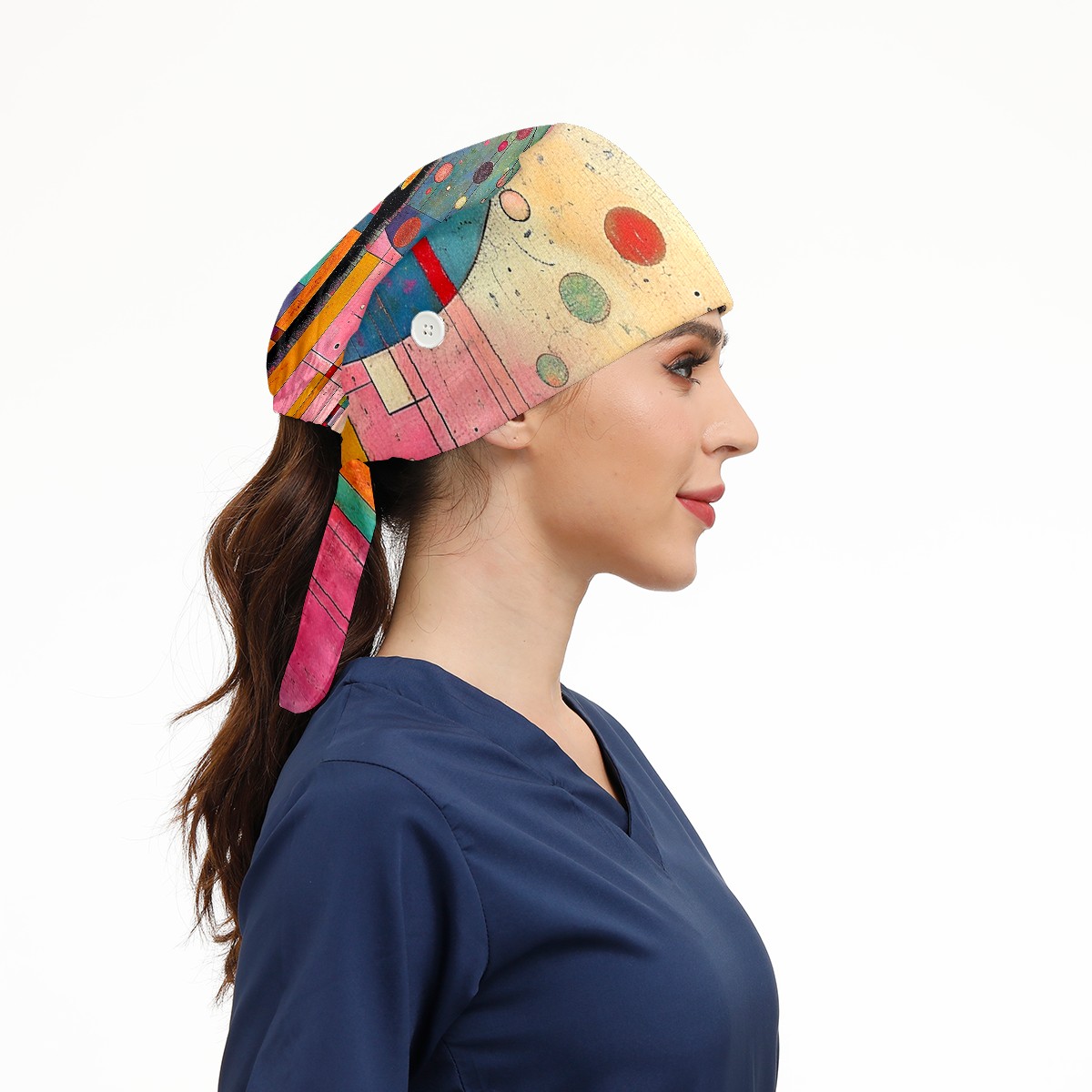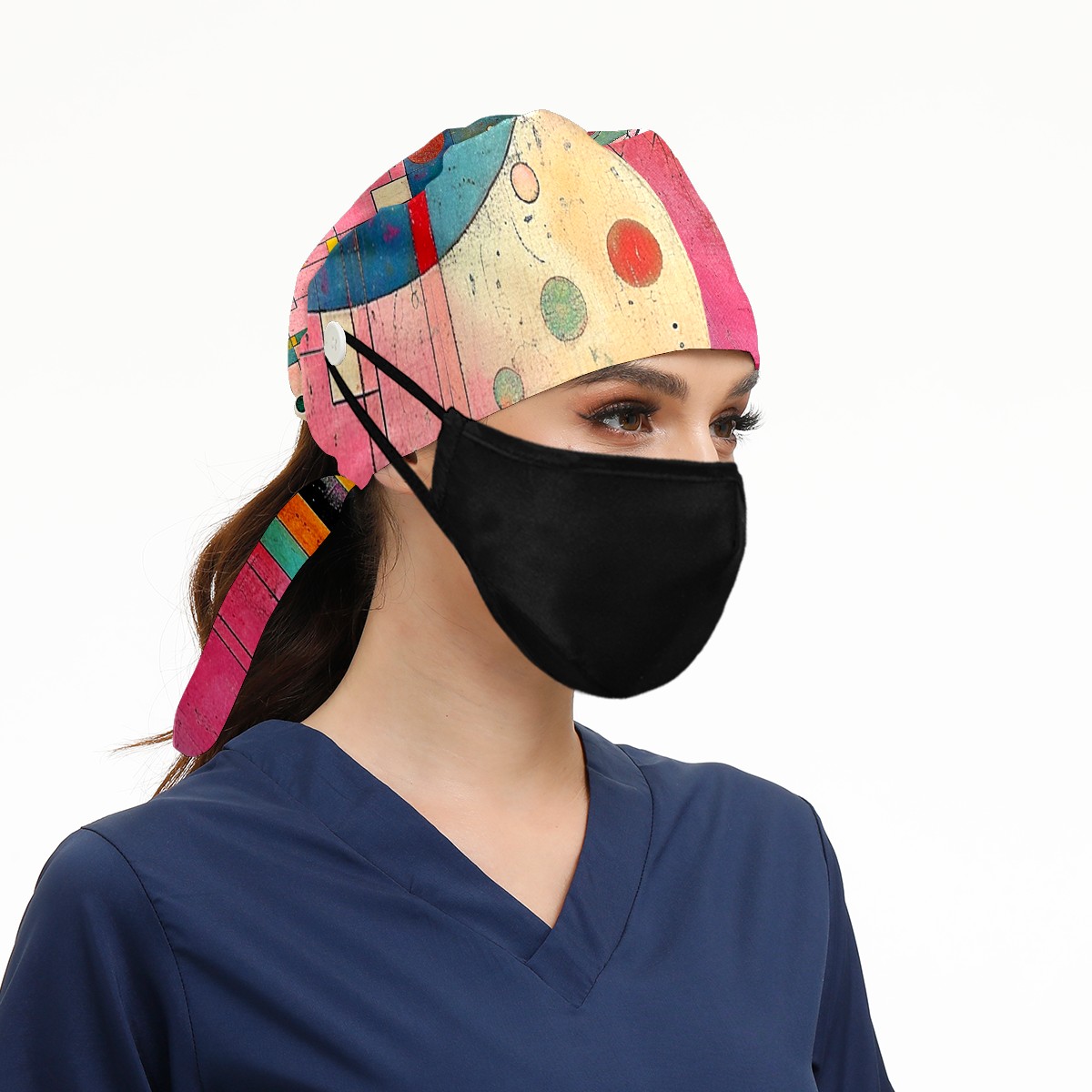 Working Caps with Button&Sweatband Satin Lined Cotton Adjustable Nurse Hats Elastic Band Scrub Cap Surgeon Hat Modern Abstraction