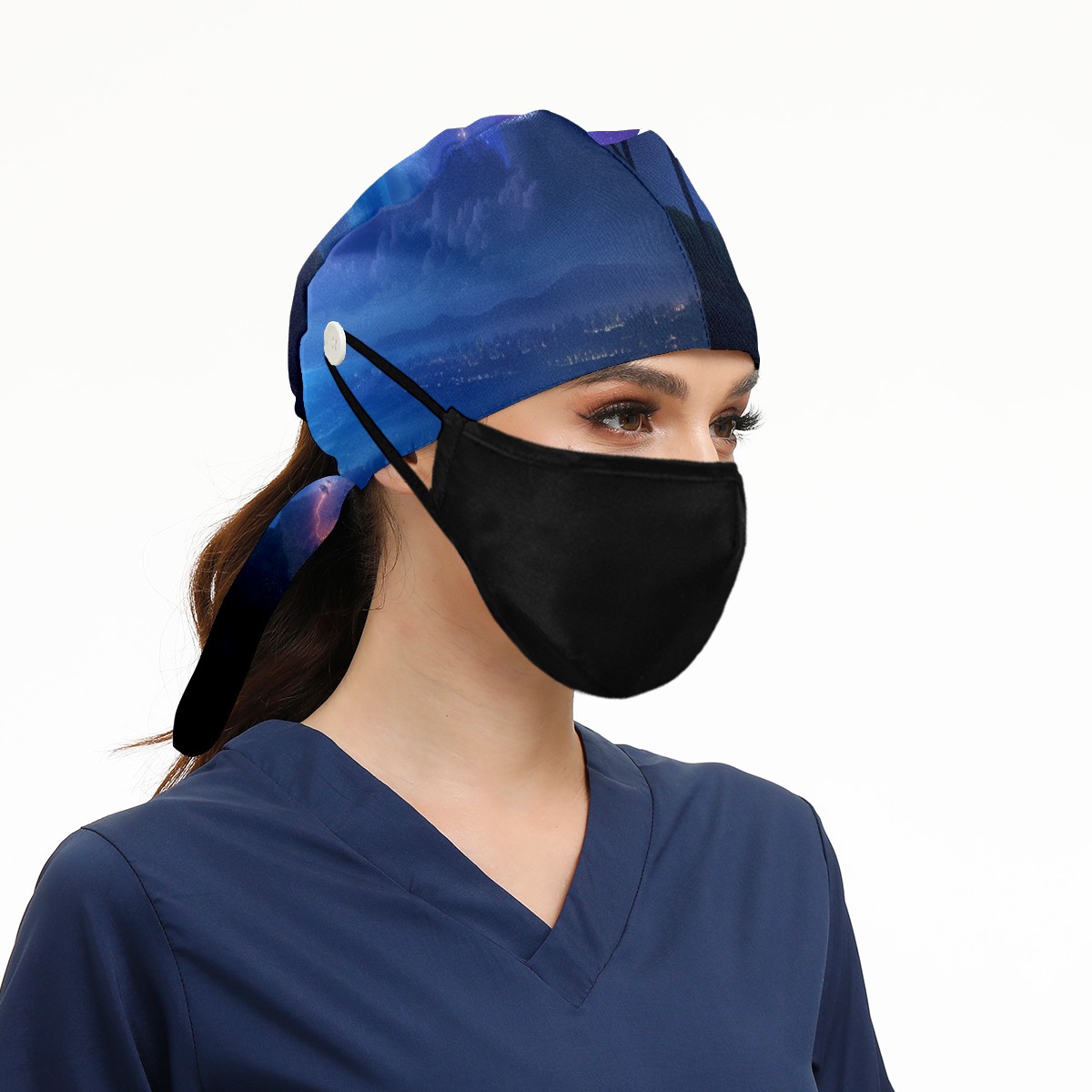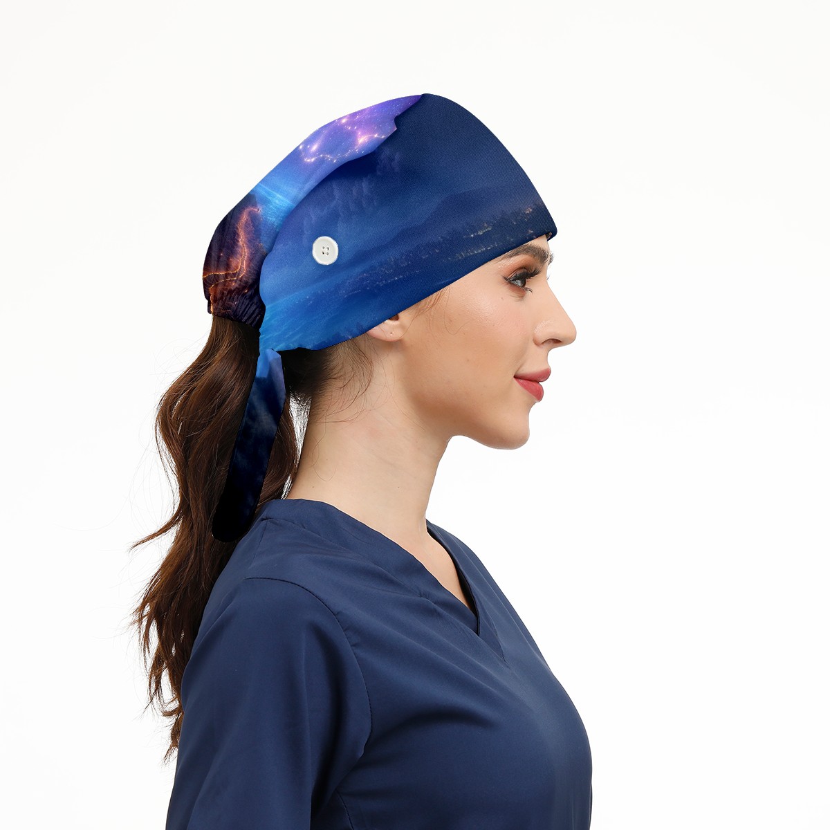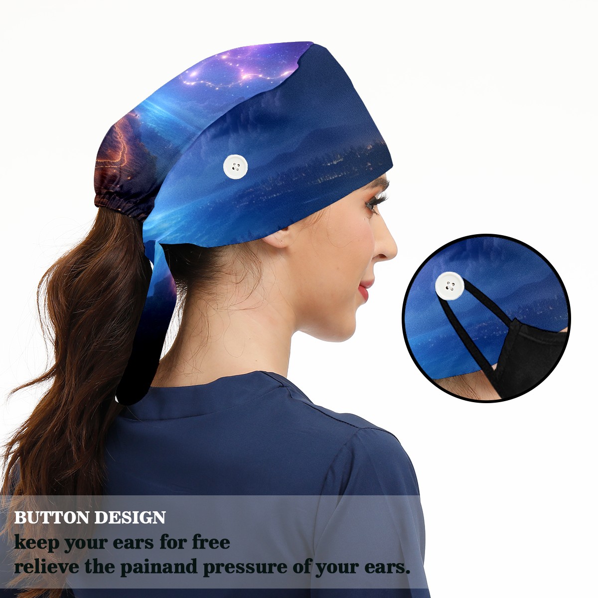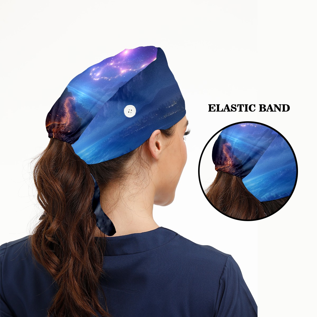Working Caps with Button&Sweatband Satin Lined Cotton Adjustable Nurse Hats Elastic Band Scrub Cap Surgeon Hat Magic Stars 1