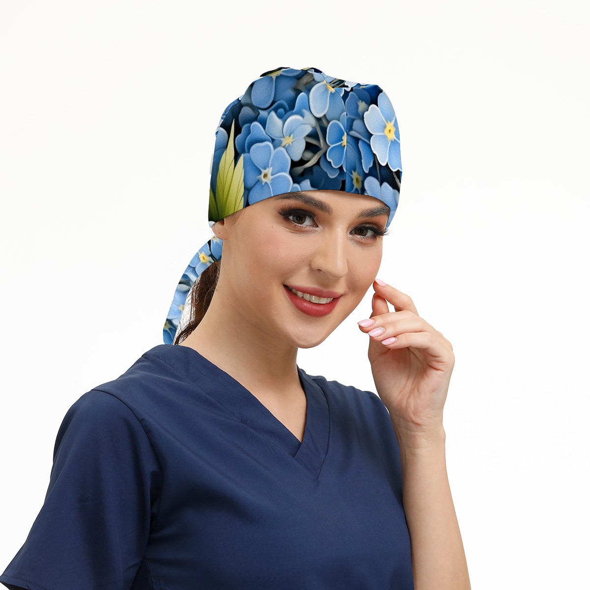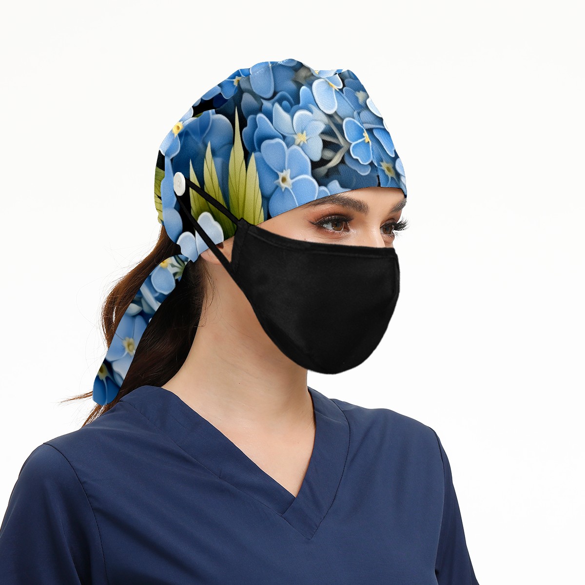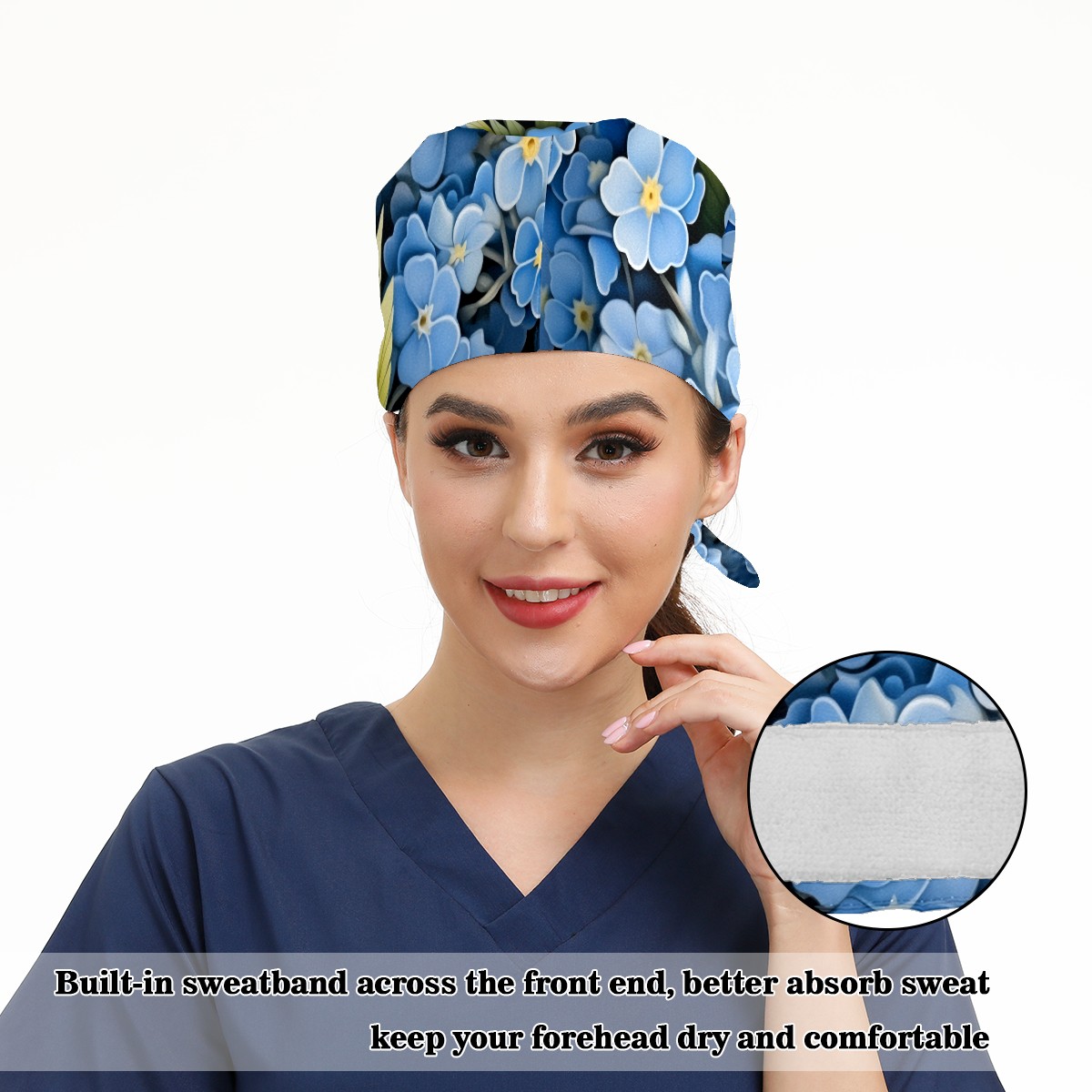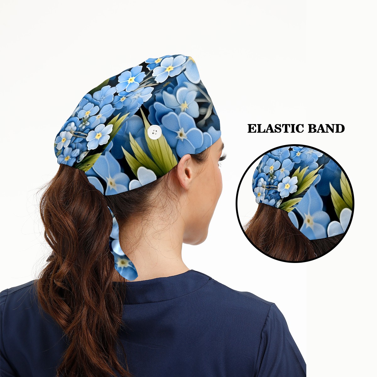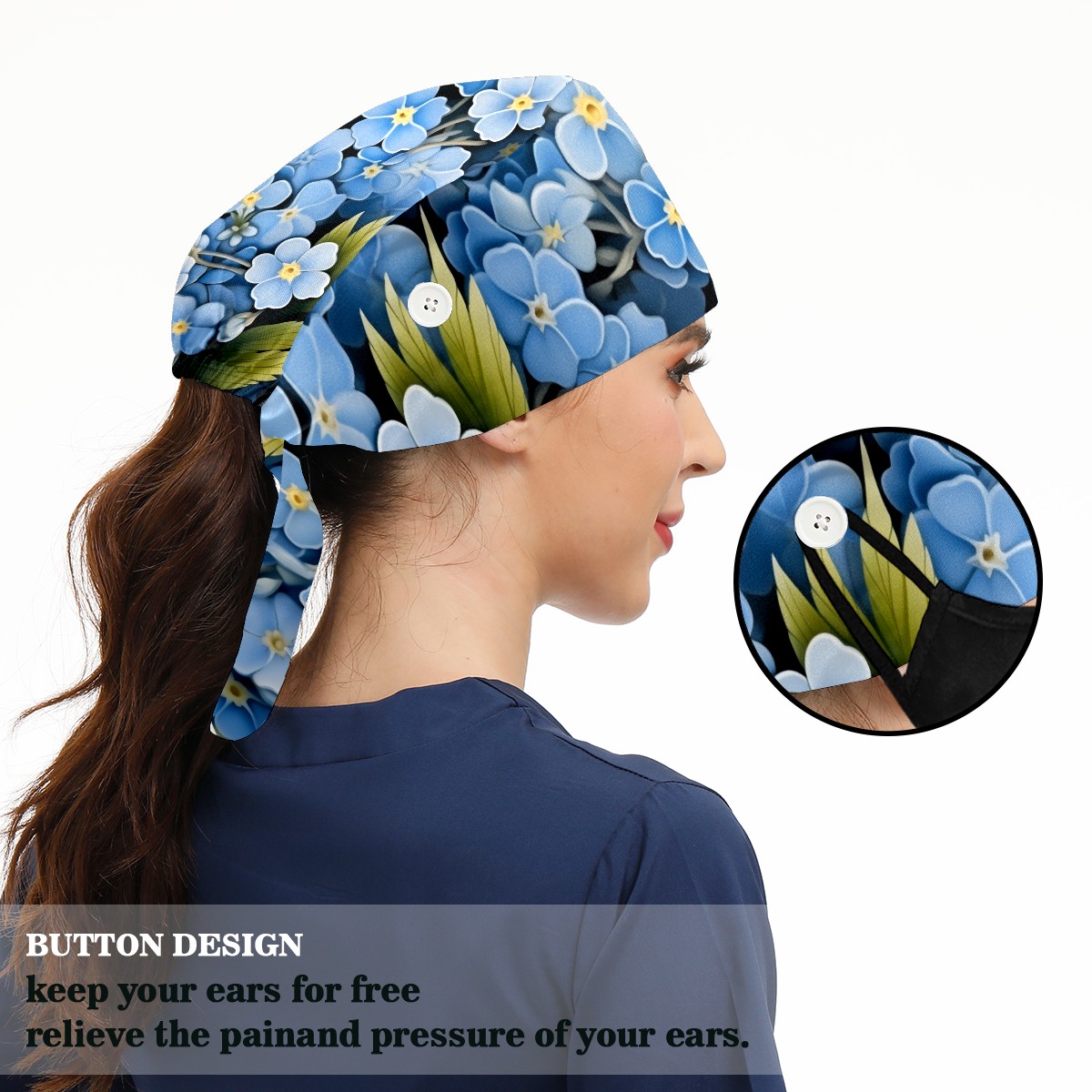 Working Caps with Button&Sweatband Satin Lined Cotton Adjustable Nurse Hats Elastic Band Scrub Cap Surgeon Hat Flower