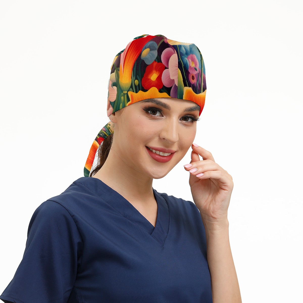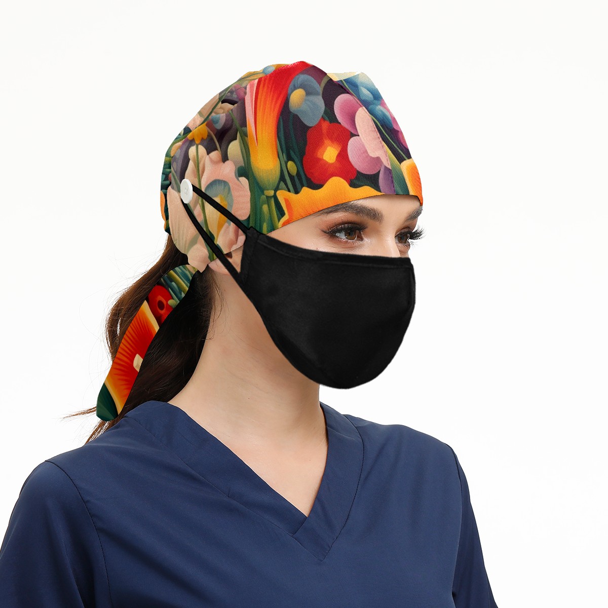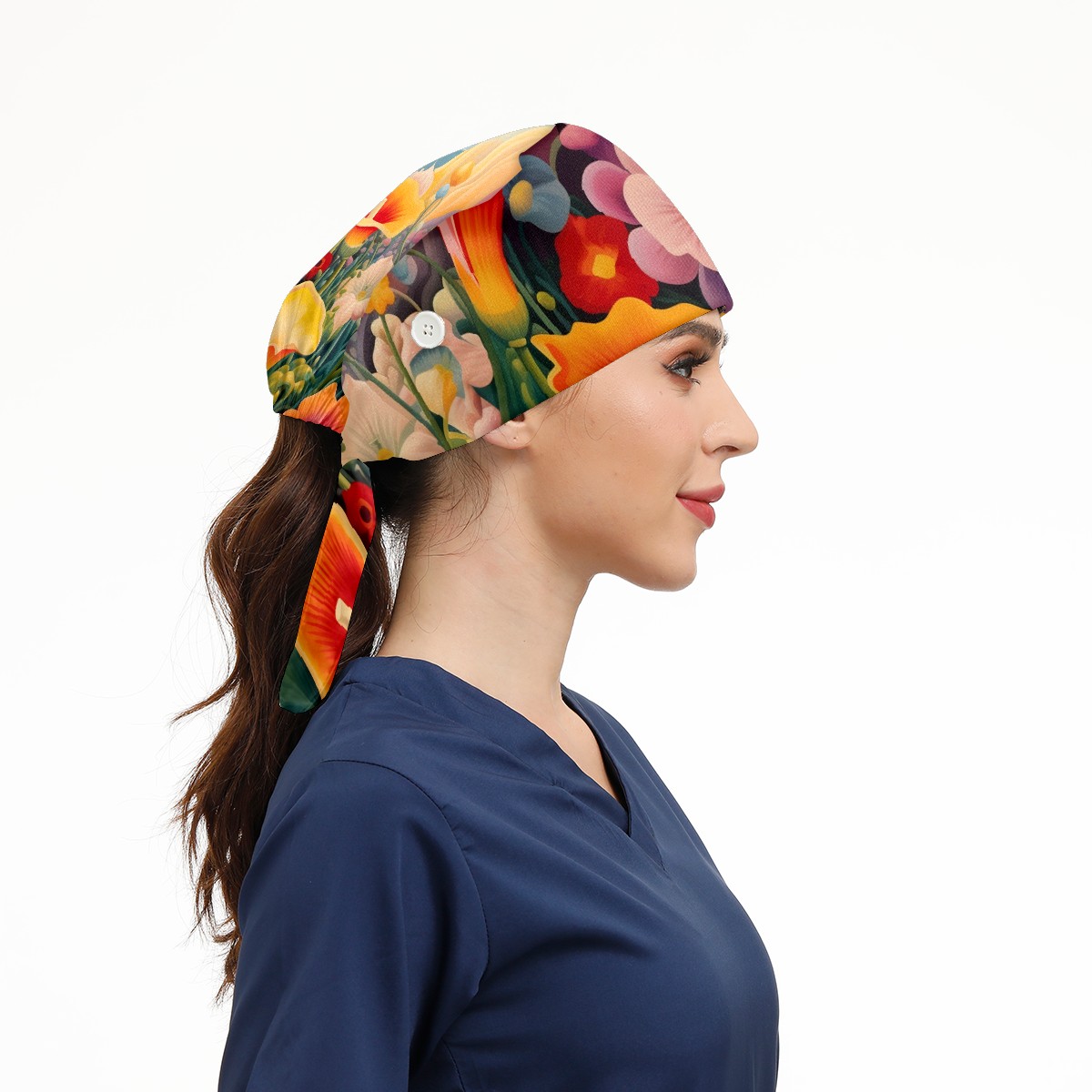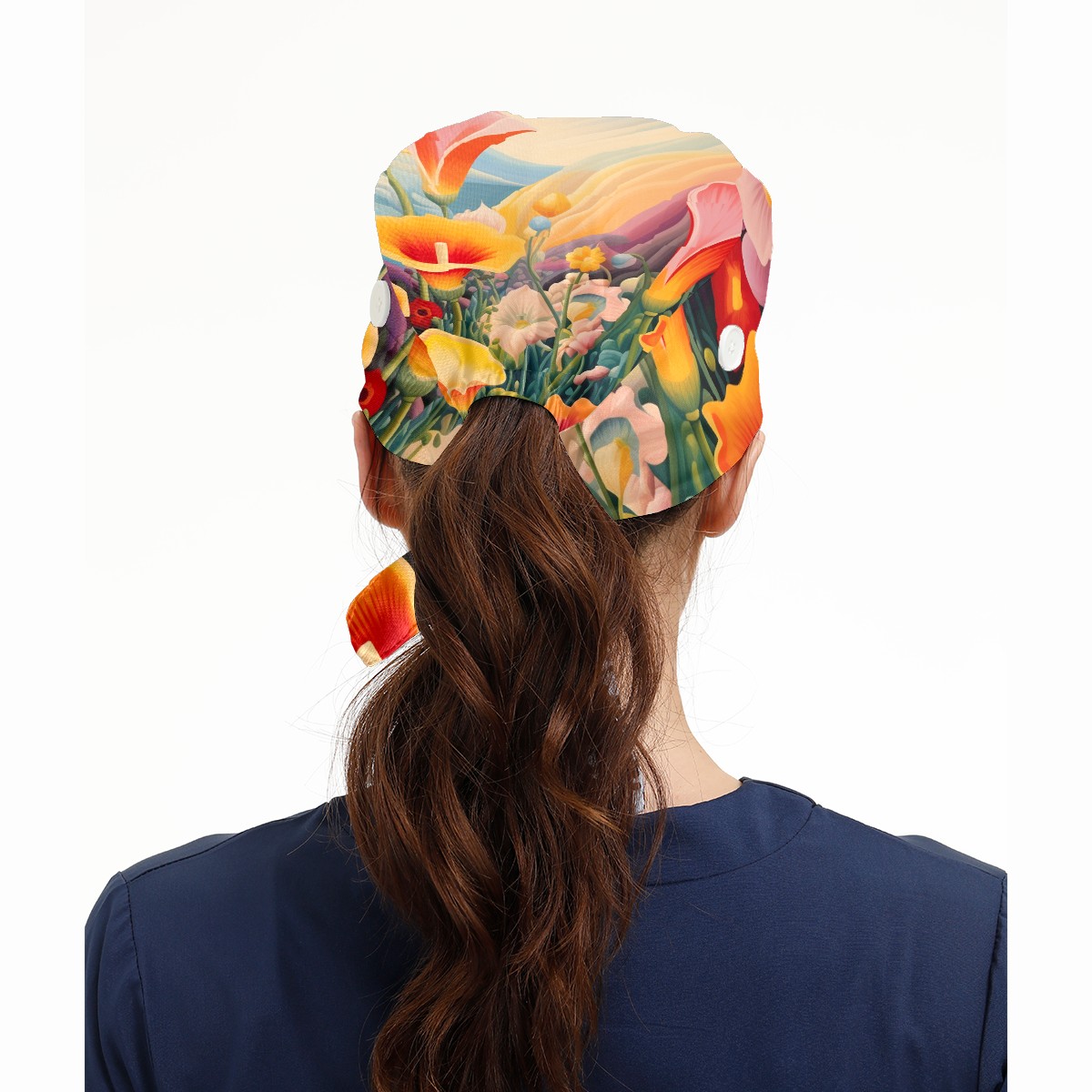 Working Caps with Button&Sweatband Satin Lined Cotton Adjustable Nurse Hats Elastic Band Scrub Cap Surgeon Hat Flower 7