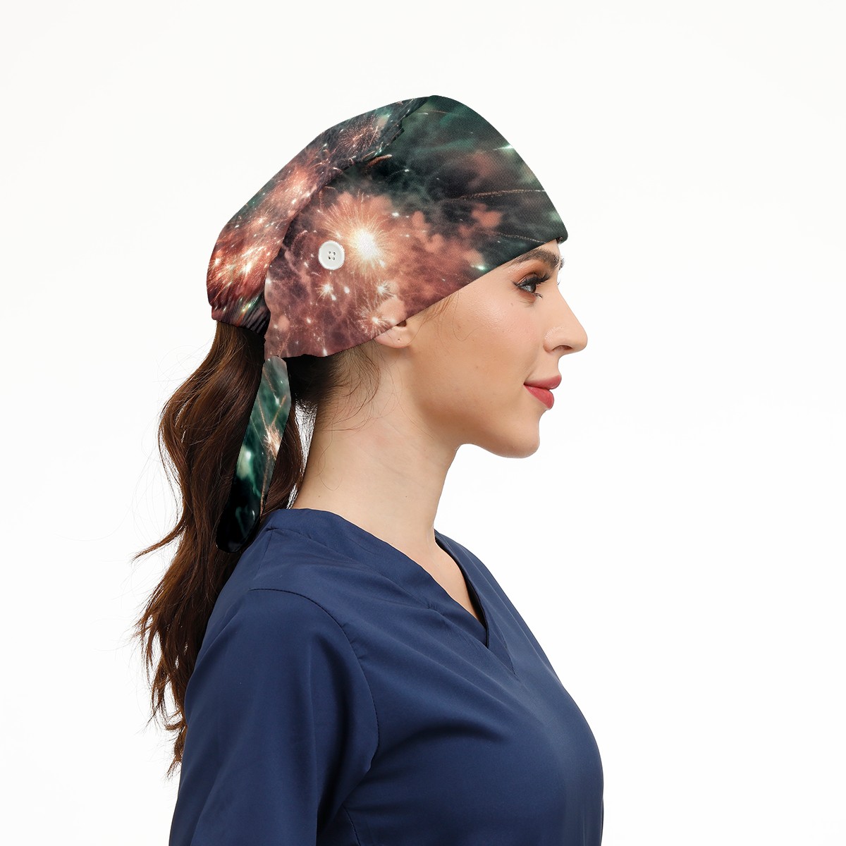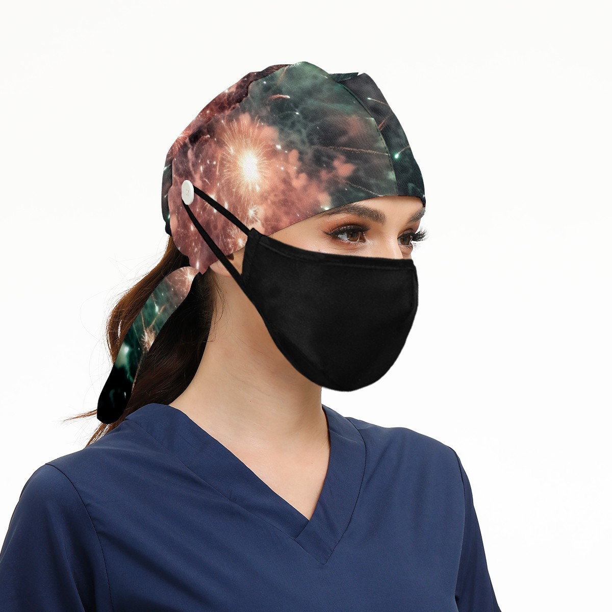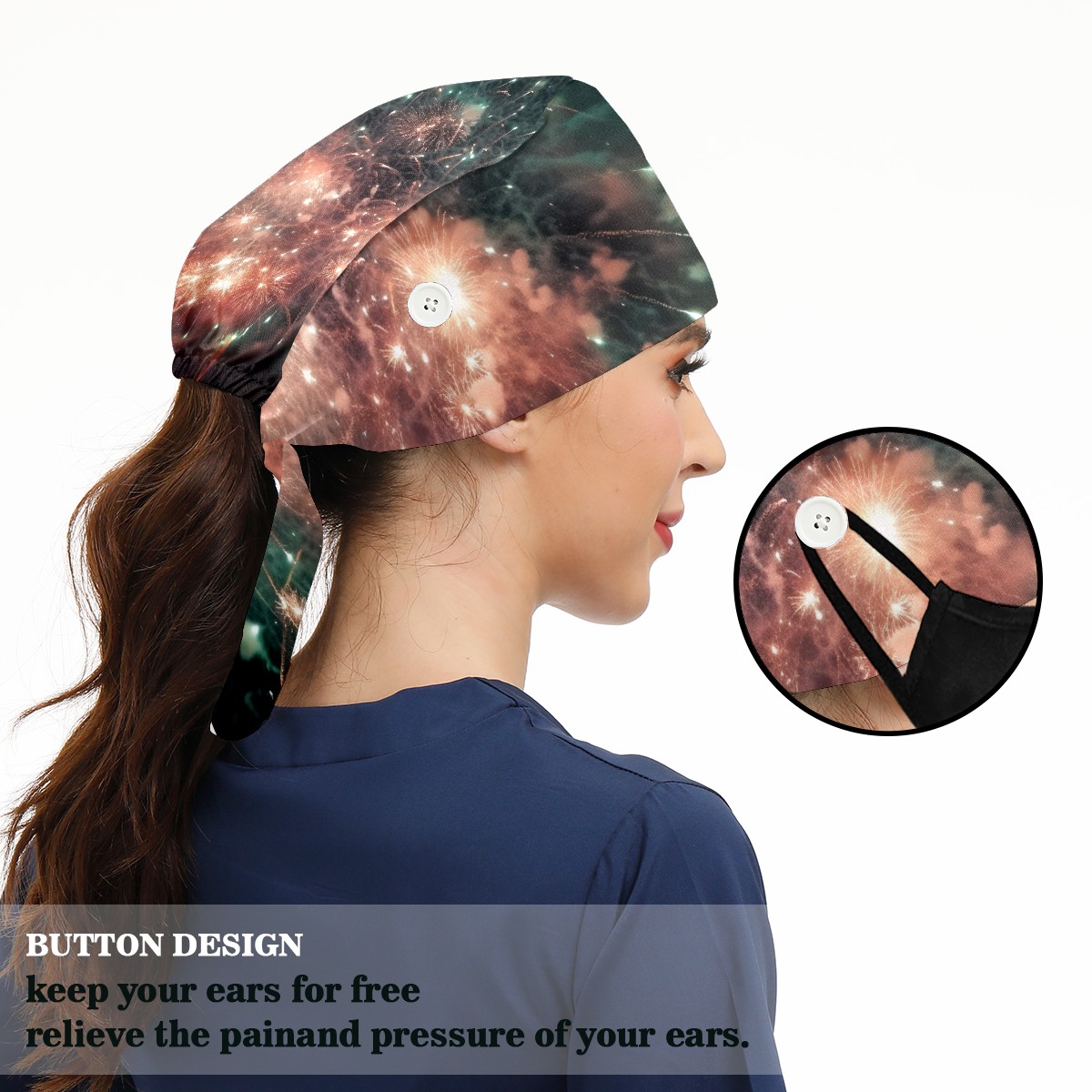 Working Caps with Button&Sweatband Satin Lined Cotton Adjustable Nurse Hats Elastic Band Scrub Cap Surgeon Hat Fireworks