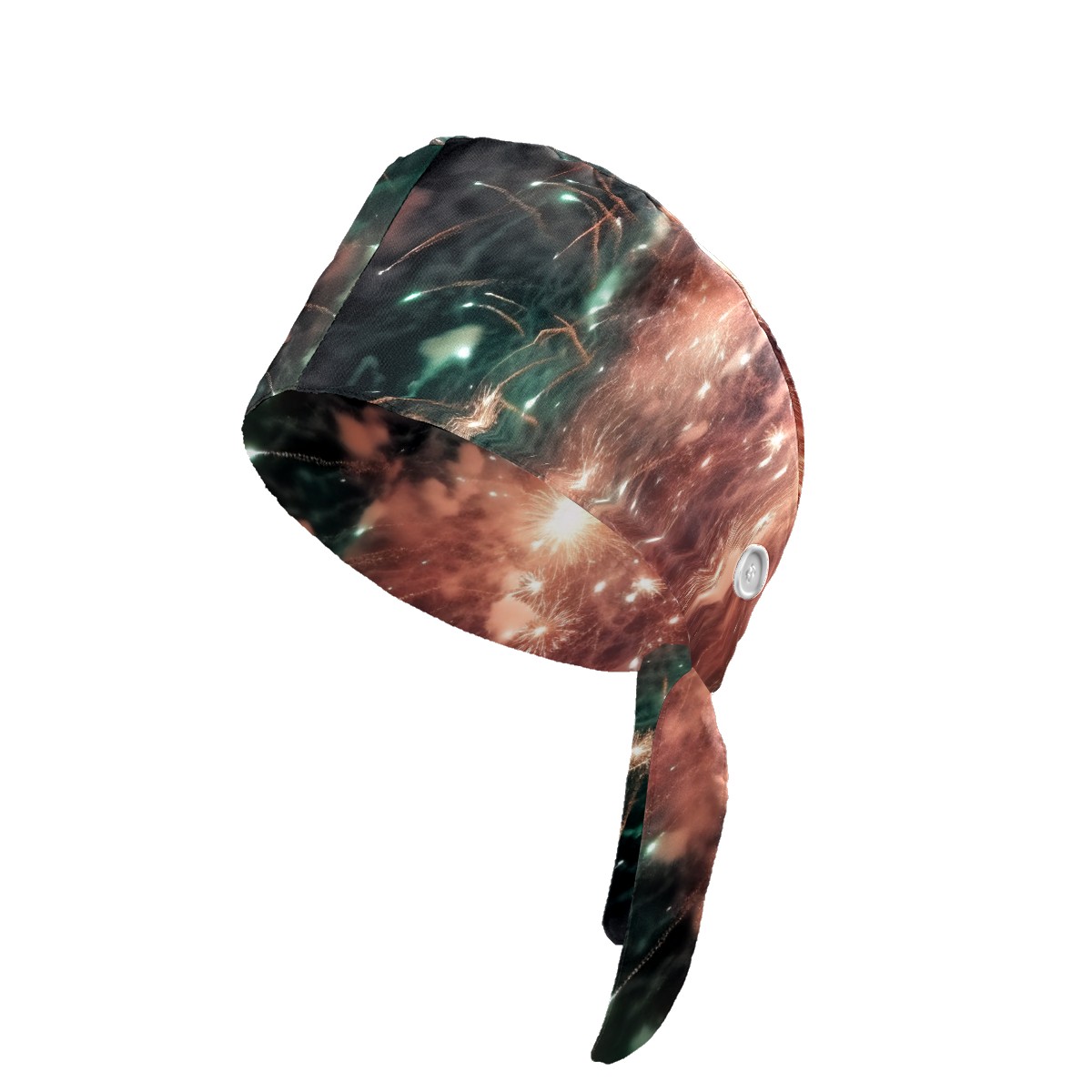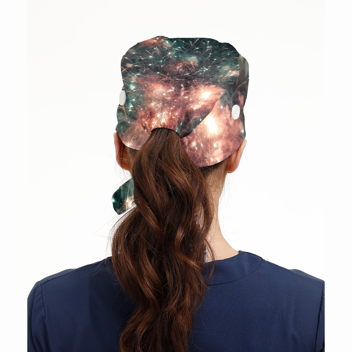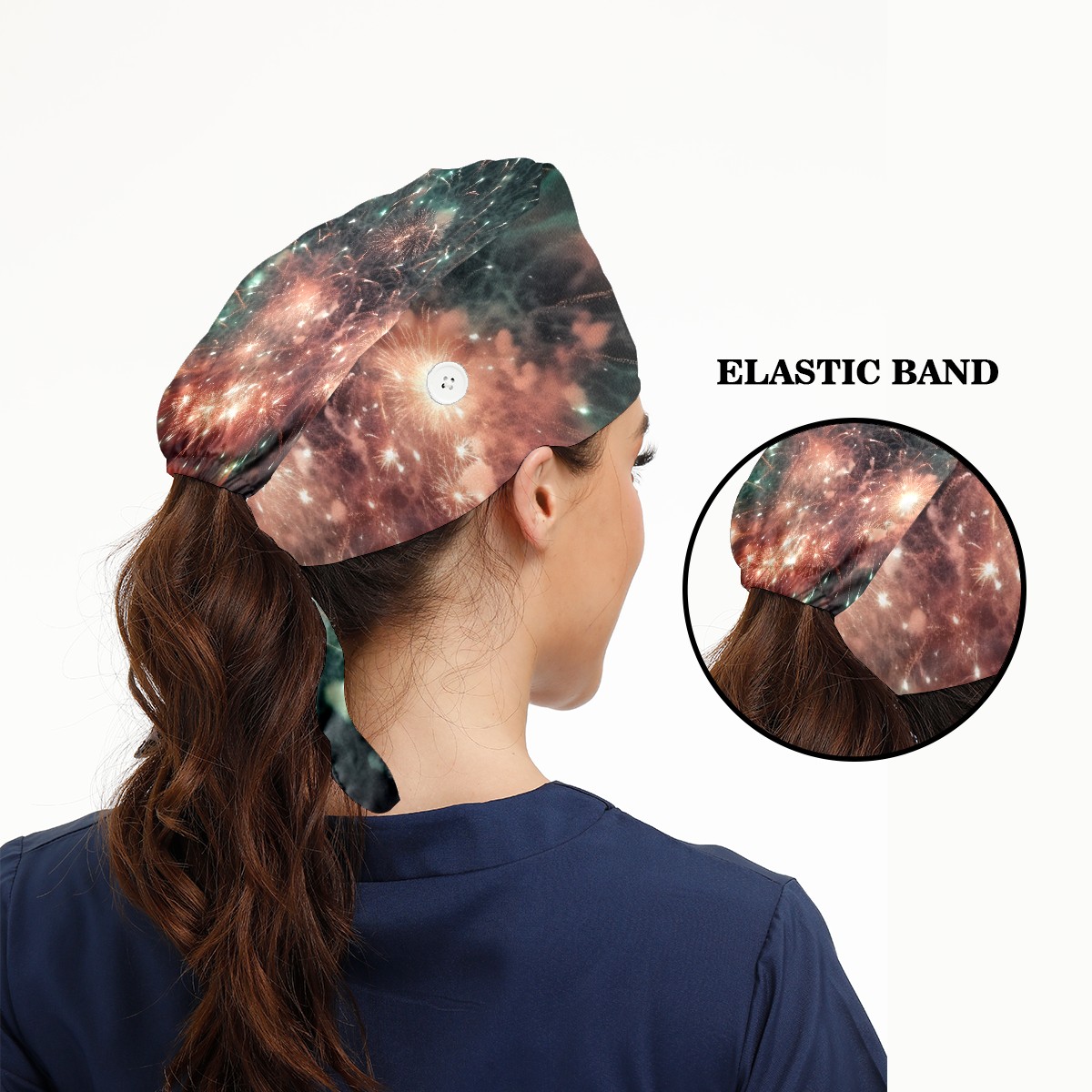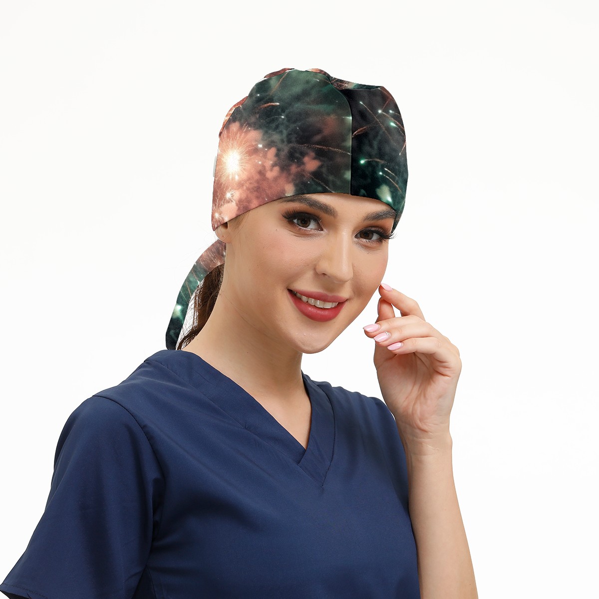 Working Caps with Button&Sweatband Satin Lined Cotton Adjustable Nurse Hats Elastic Band Scrub Cap Surgeon Hat Fireworks