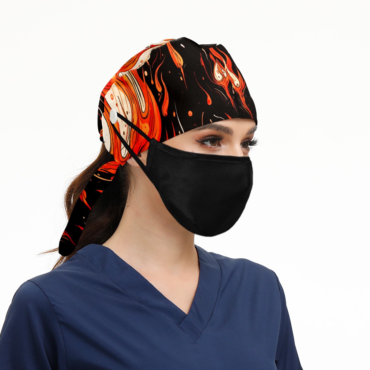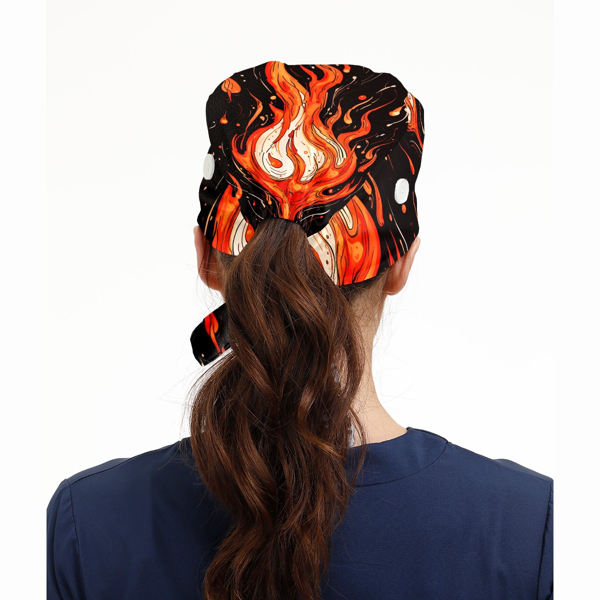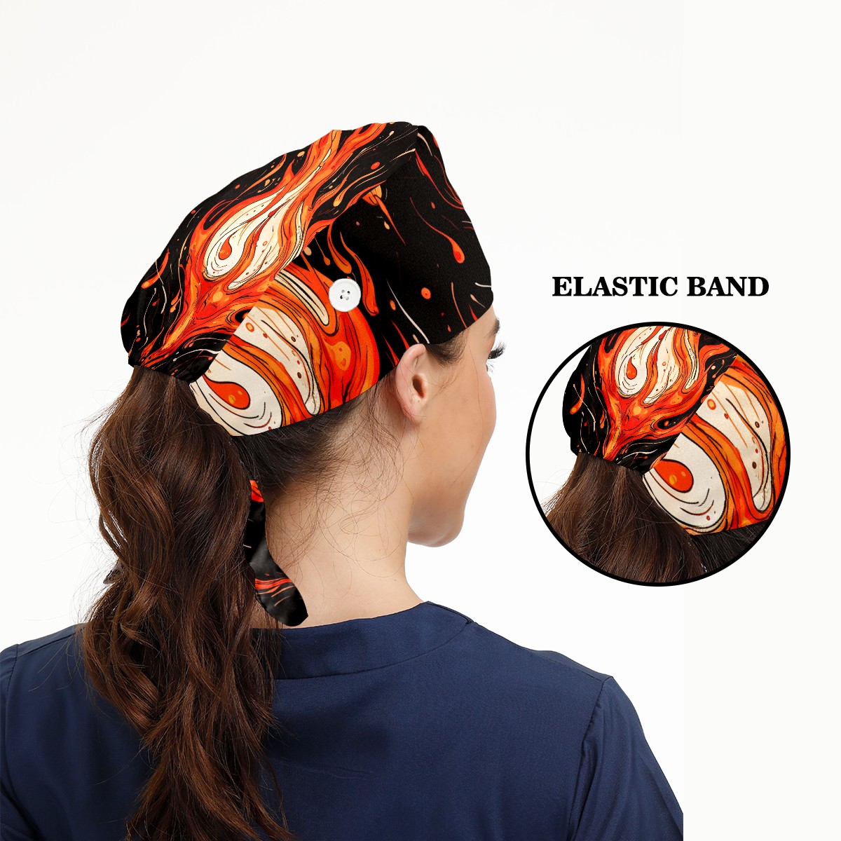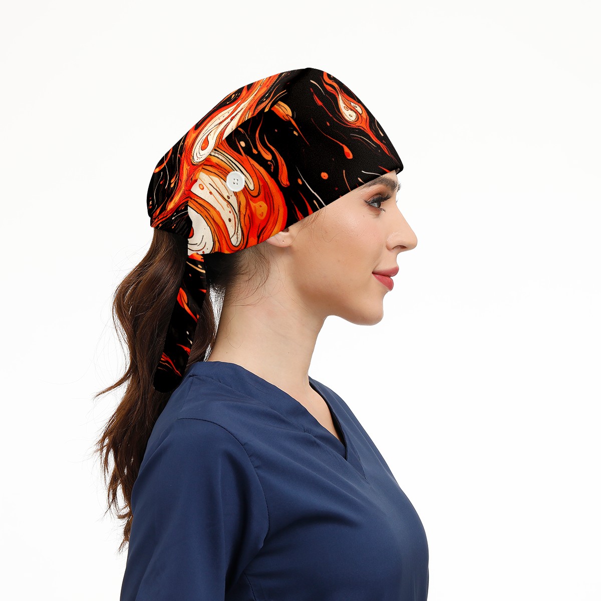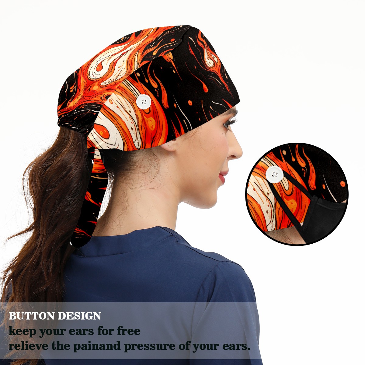 Working Caps with Button&Sweatband Satin Lined Cotton Adjustable Nurse Hats Elastic Band Scrub Cap Surgeon Hat Fire