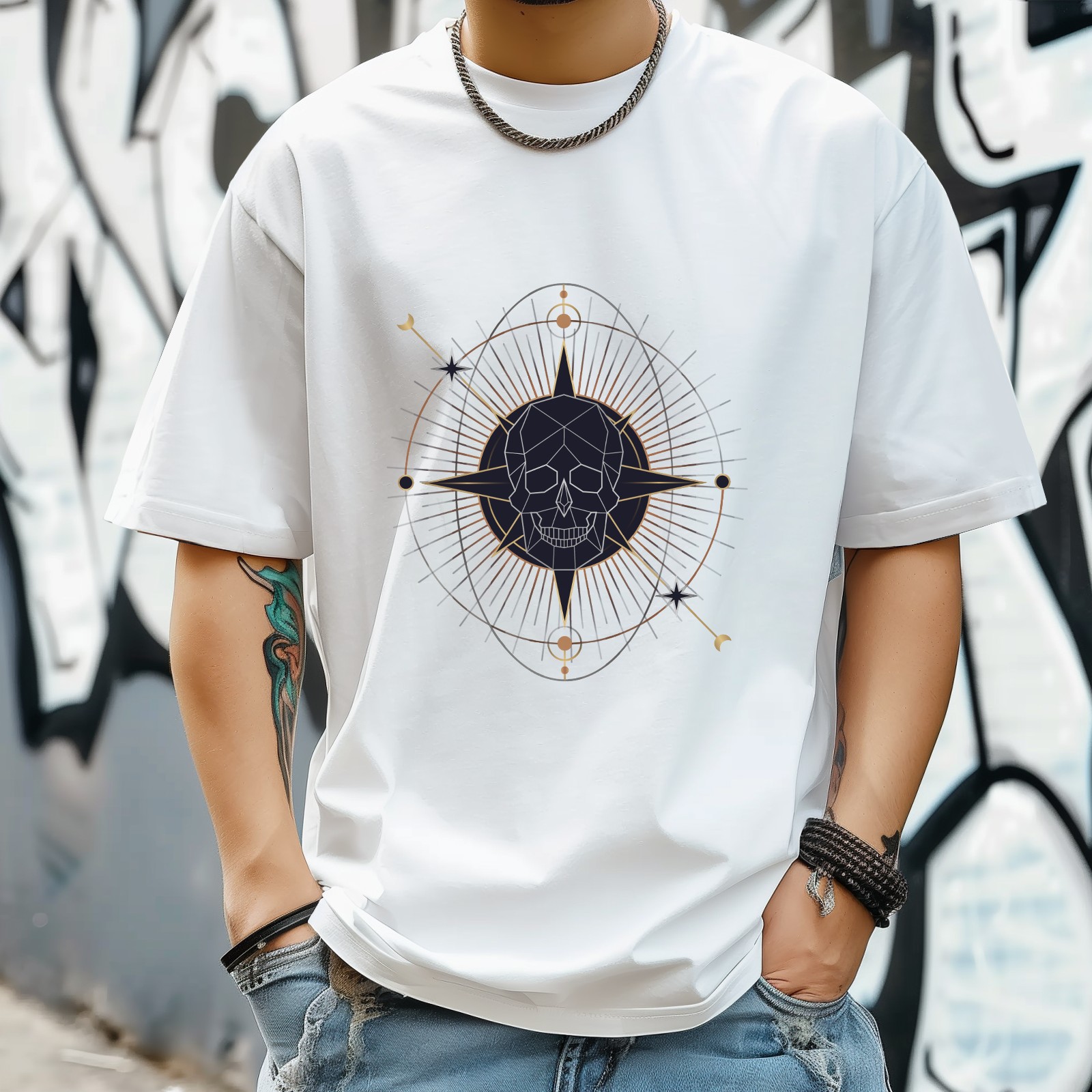 Men's T Shirt Round Neck Patterned Tee Summer New Sports Shirt Vintage Style Gift for Friends XS