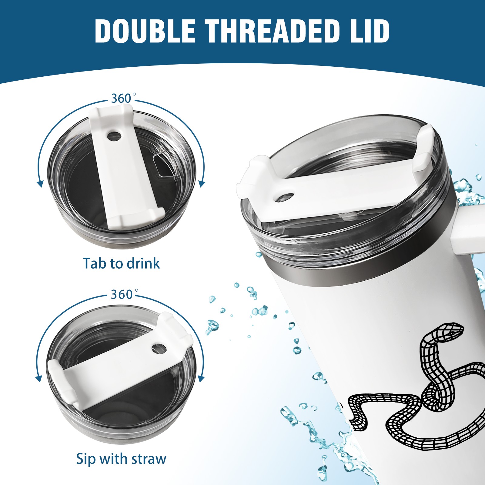40oz Tumbler with Straw Lid , Handle& Double Wall Vacuum Insulated Cup Reusable Stainless Steel Bottle Trave Mug coffee tumblers BPA Powder Coated Snake