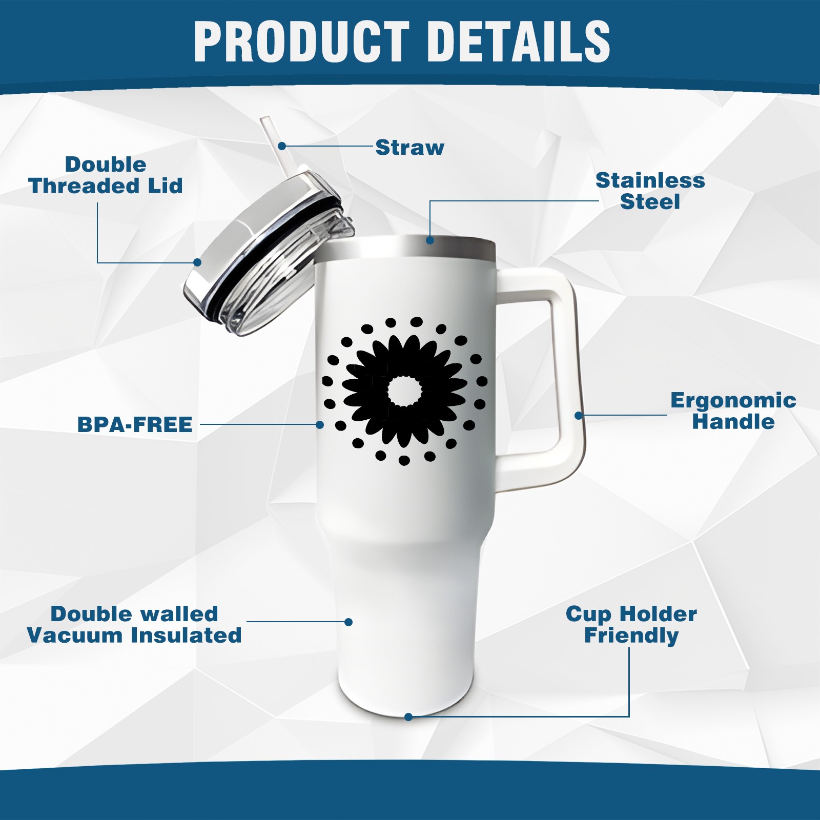 <b>ZXIVGOQFR Tumbler Is Your Dream Cup! </b>Whichever way your day flows, tumbler keeps you refreshed with fewer refills. </br> </br> ●<b>Double Wall Vacuum Insulation </b>means drinks stay cold, iced or hot for hours. </br> ●With advanced lid construction,STRAW OPENING designed to resist splashes with a seal that holds the reusable straw in place, a drink opening, and a full-cover top for added leak resistance. Totally spill proof! </br> ●ZXIVGOQFR Tumbler also included an ergonomic, comfort-grip HANDLE, 40 ounce tumbler cup is 2.9” wide at the base and 3.7” at the top. Narrow base fits just about any car cup holder. So you can bring a smoothie cup, iced coffee cup or extra espresso for your daily commute or weekend outing.