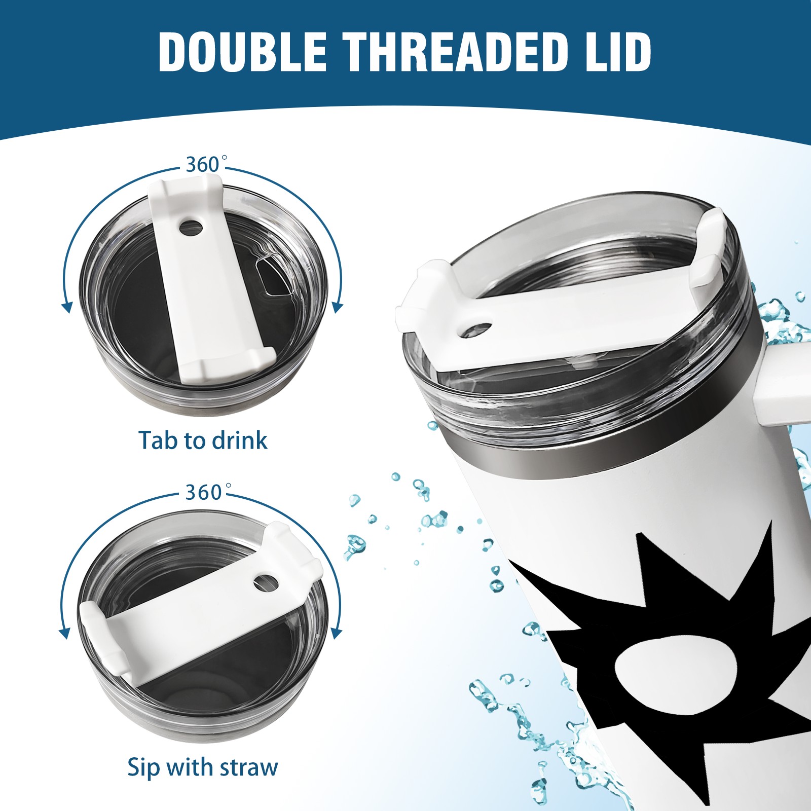 <b>ZXIVGOQFR Tumbler Is Your Dream Cup! </b>Whichever way your day flows, tumbler keeps you refreshed with fewer refills. </br> </br> ●<b>Double Wall Vacuum Insulation </b>means drinks stay cold, iced or hot for hours. </br> ●With advanced lid construction,STRAW OPENING designed to resist splashes with a seal that holds the reusable straw in place, a drink opening, and a full-cover top for added leak resistance. Totally spill proof! </br> ●ZXIVGOQFR Tumbler also included an ergonomic, comfort-grip HANDLE, 40 ounce tumbler cup is 2.9” wide at the base and 3.7” at the top. Narrow base fits just about any car cup holder. So you can bring a smoothie cup, iced coffee cup or extra espresso for your daily commute or weekend outing.