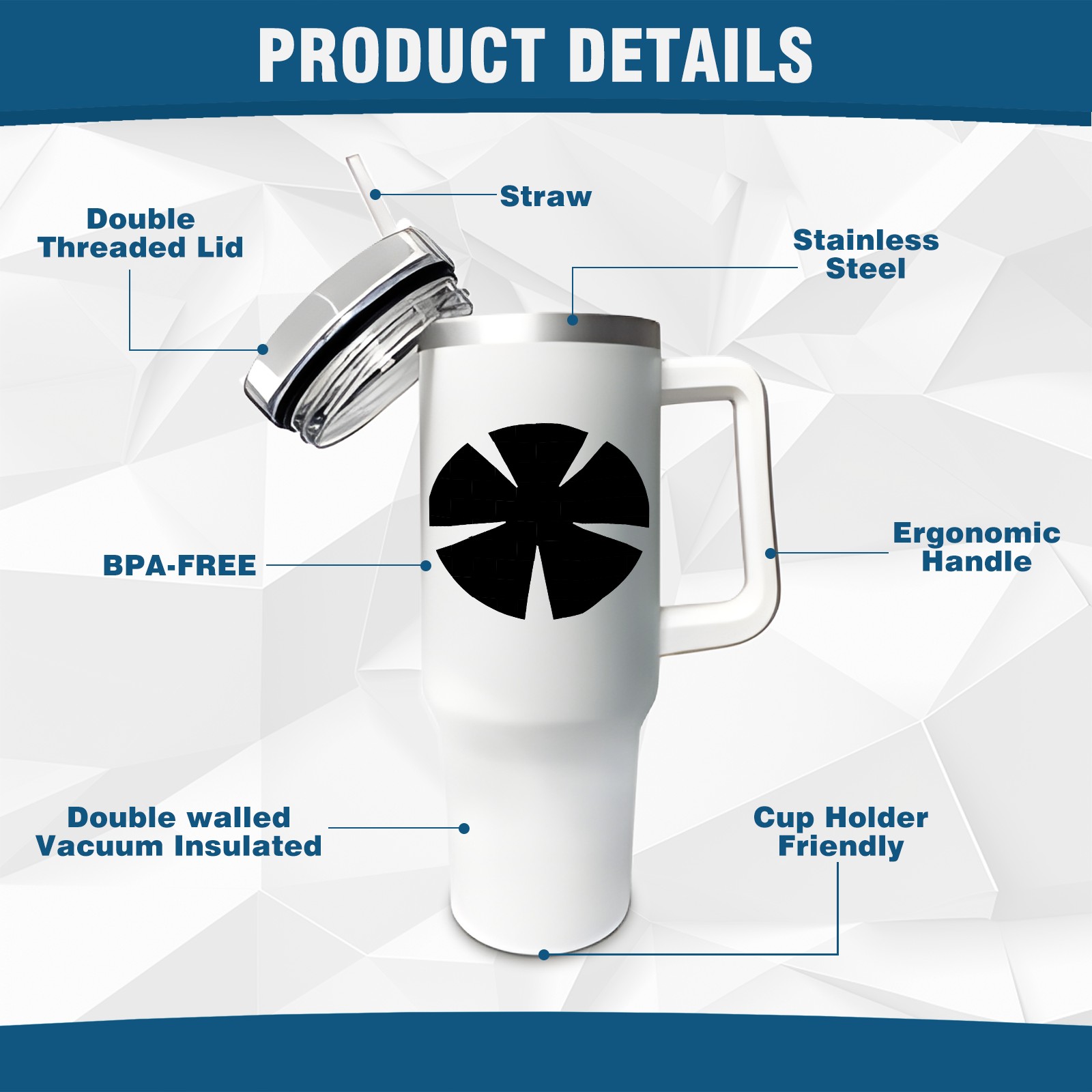 <b>ZXIVGOQFR Tumbler Is Your Dream Cup! </b>Whichever way your day flows, tumbler keeps you refreshed with fewer refills. </br> </br> ●<b>Double Wall Vacuum Insulation </b>means drinks stay cold, iced or hot for hours. </br> ●With advanced lid construction,STRAW OPENING designed to resist splashes with a seal that holds the reusable straw in place, a drink opening, and a full-cover top for added leak resistance. Totally spill proof! </br> ●ZXIVGOQFR Tumbler also included an ergonomic, comfort-grip HANDLE, 40 ounce tumbler cup is 2.9” wide at the base and 3.7” at the top. Narrow base fits just about any car cup holder. So you can bring a smoothie cup, iced coffee cup or extra espresso for your daily commute or weekend outing.