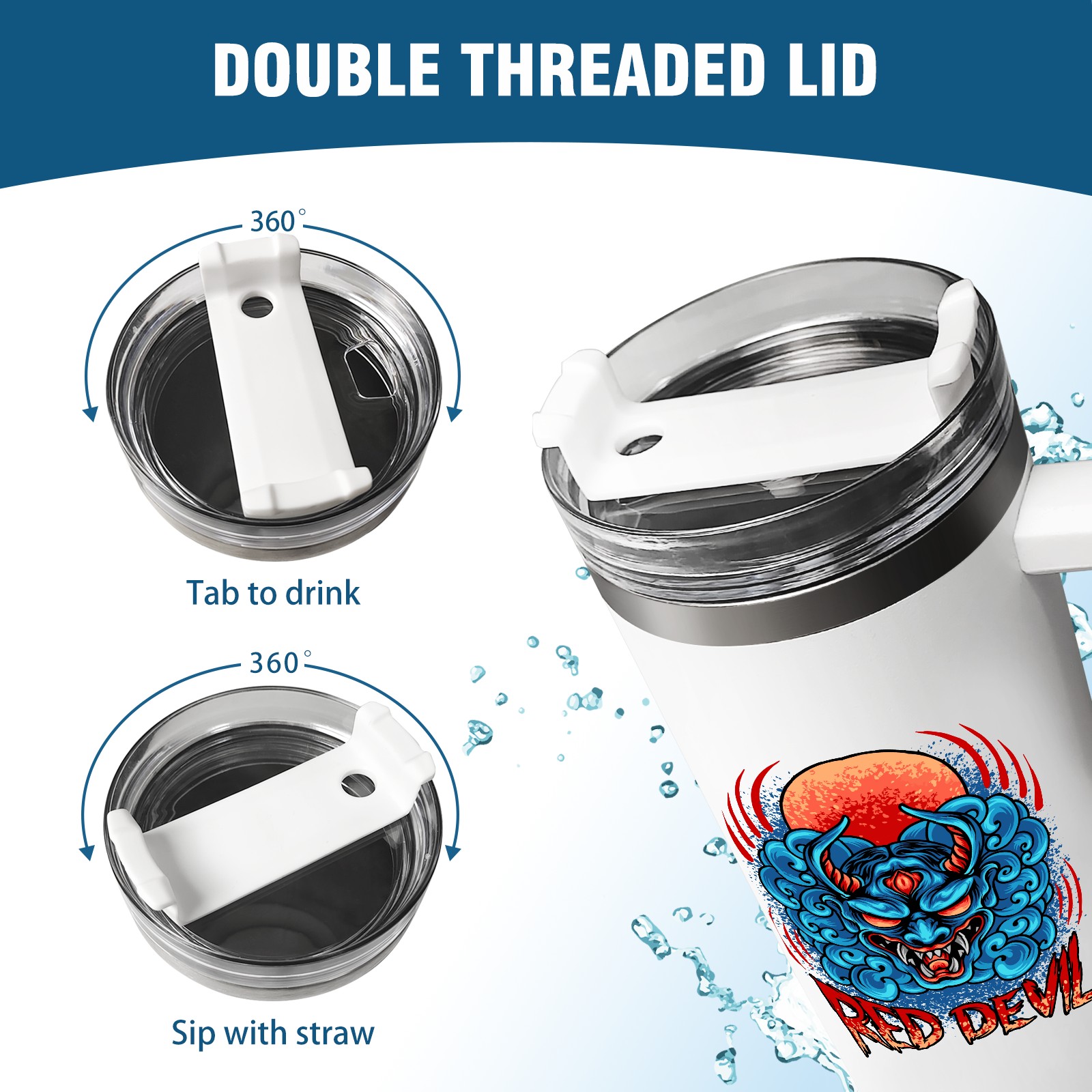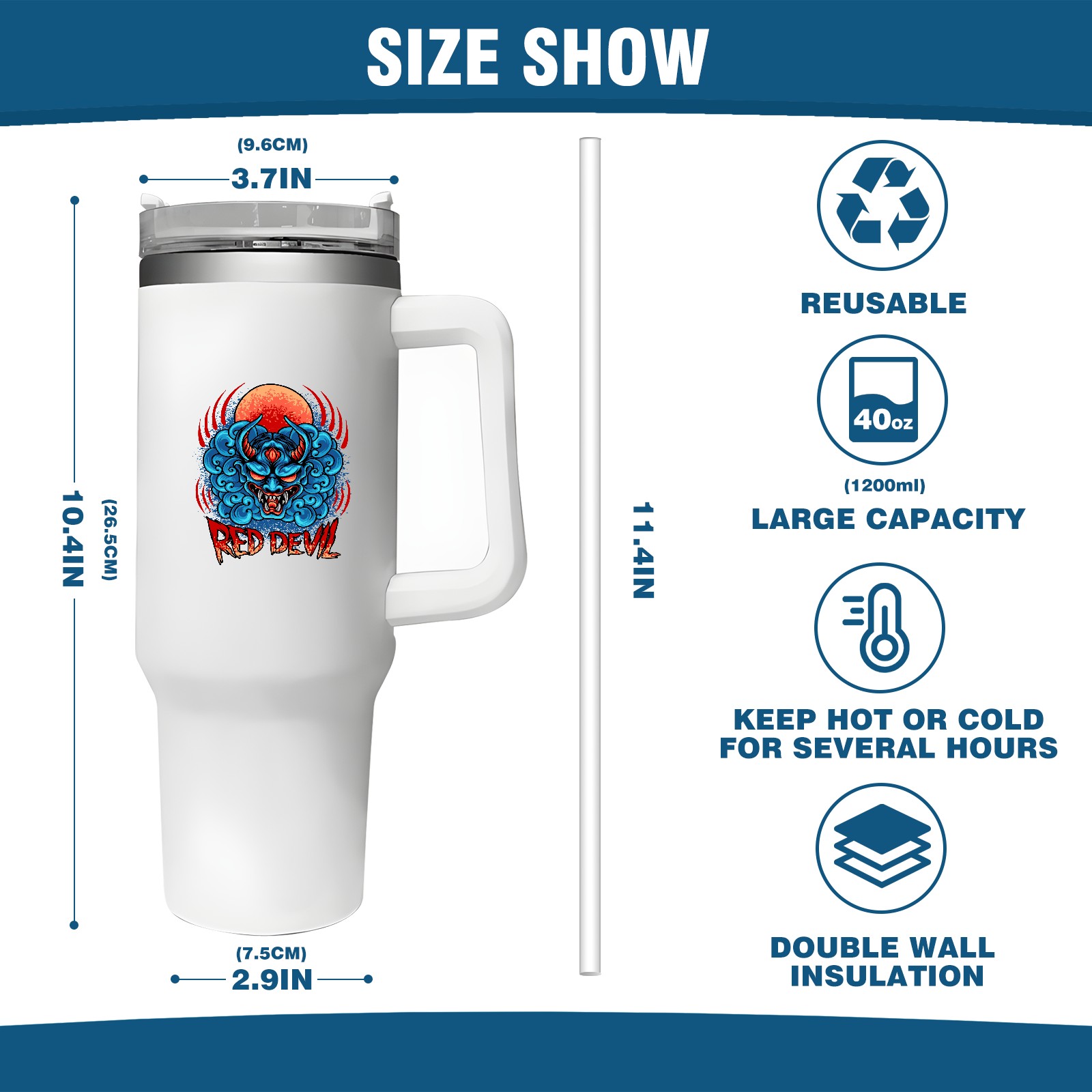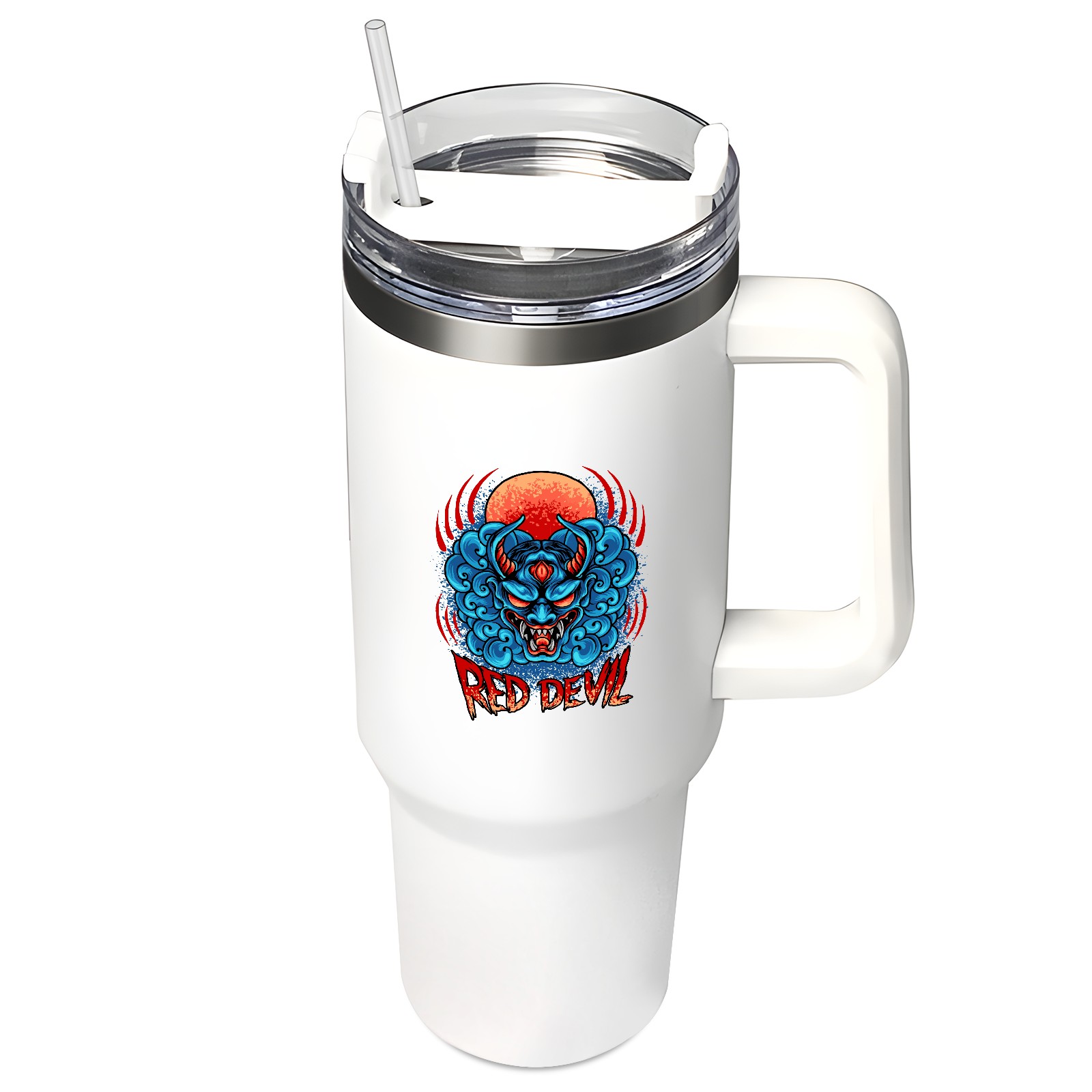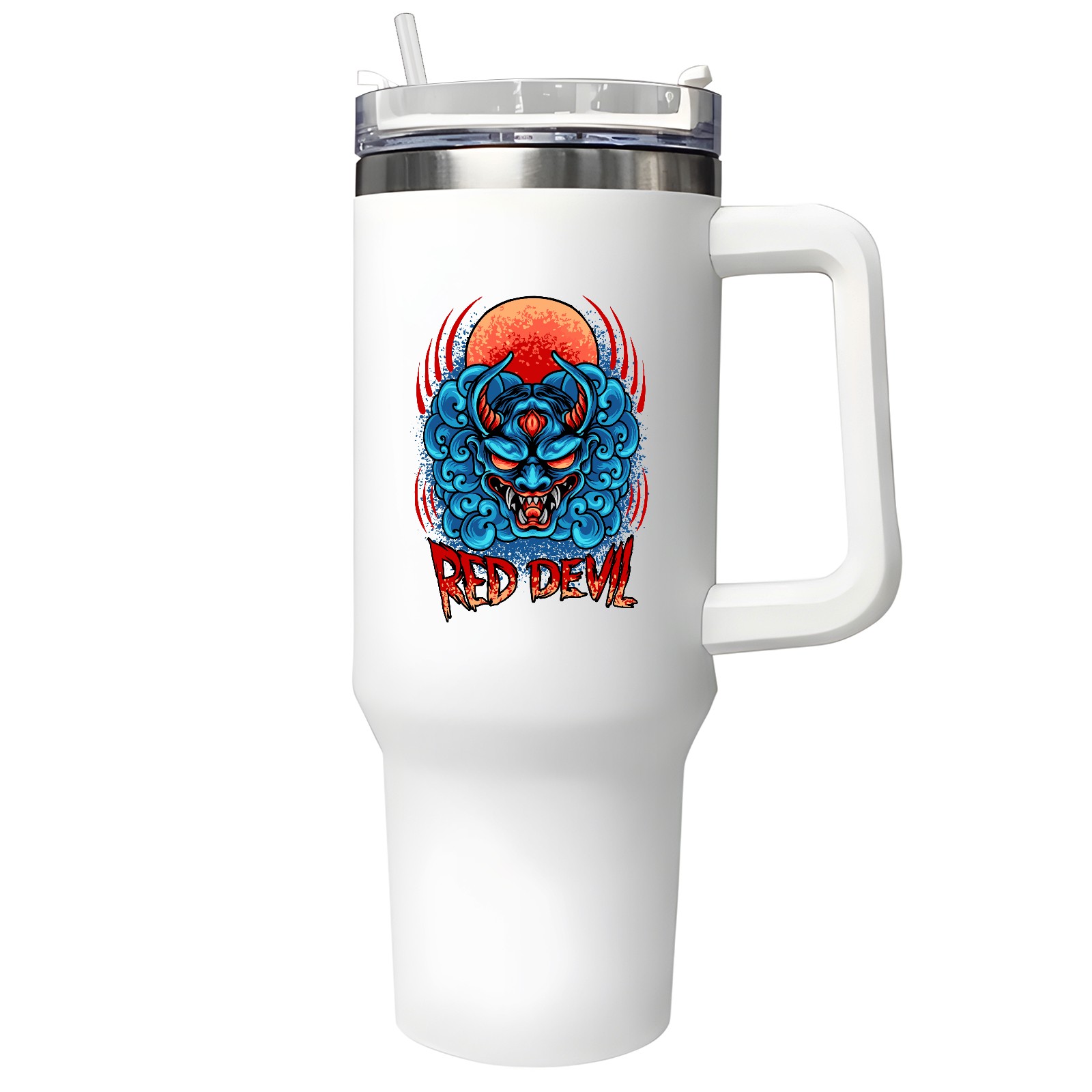 40oz Tumbler with Straw Lid , Handle& Double Wall Vacuum Insulated Cup Reusable Stainless Steel Bottle Trave Mug coffee tumblers BPA Powder Coated Red Devil