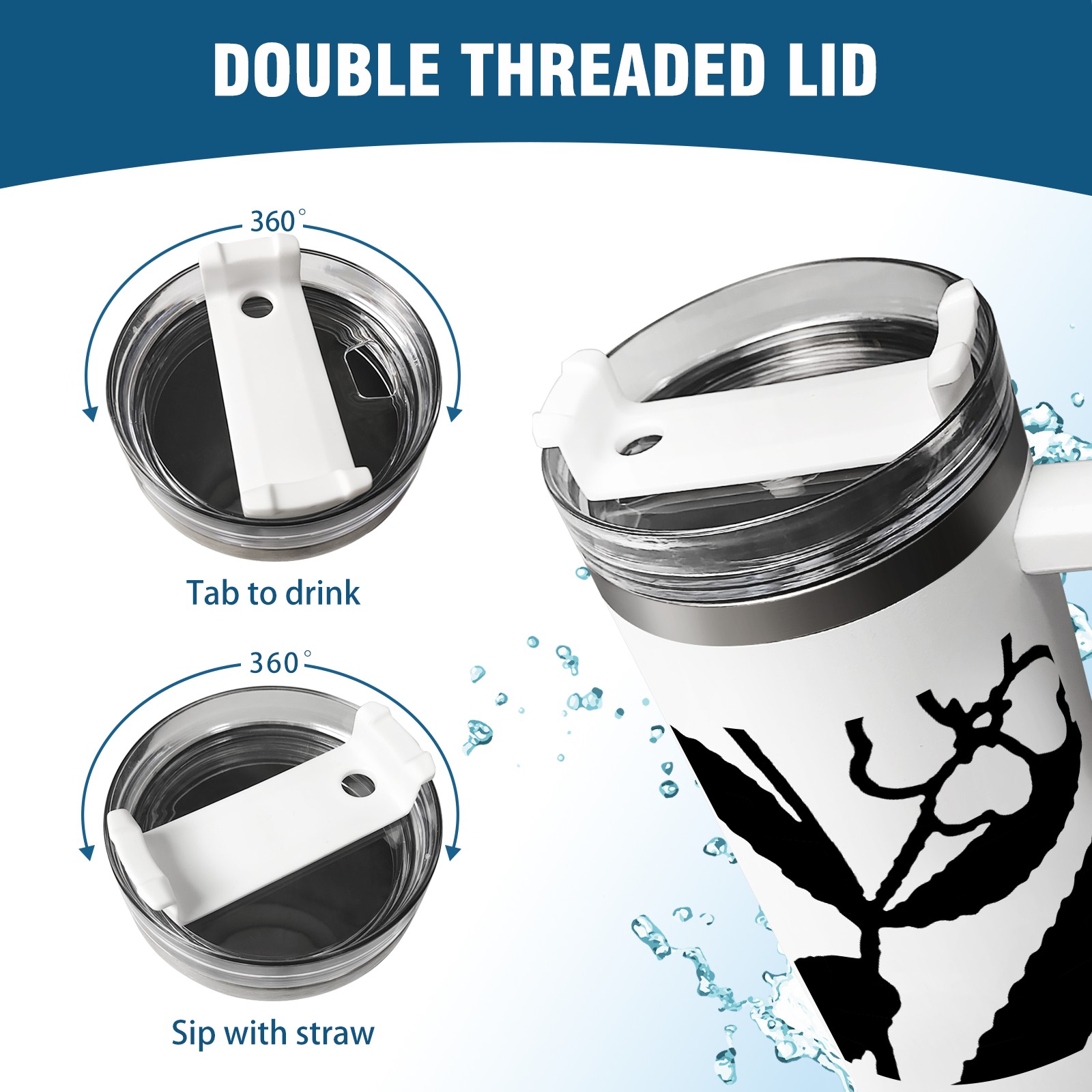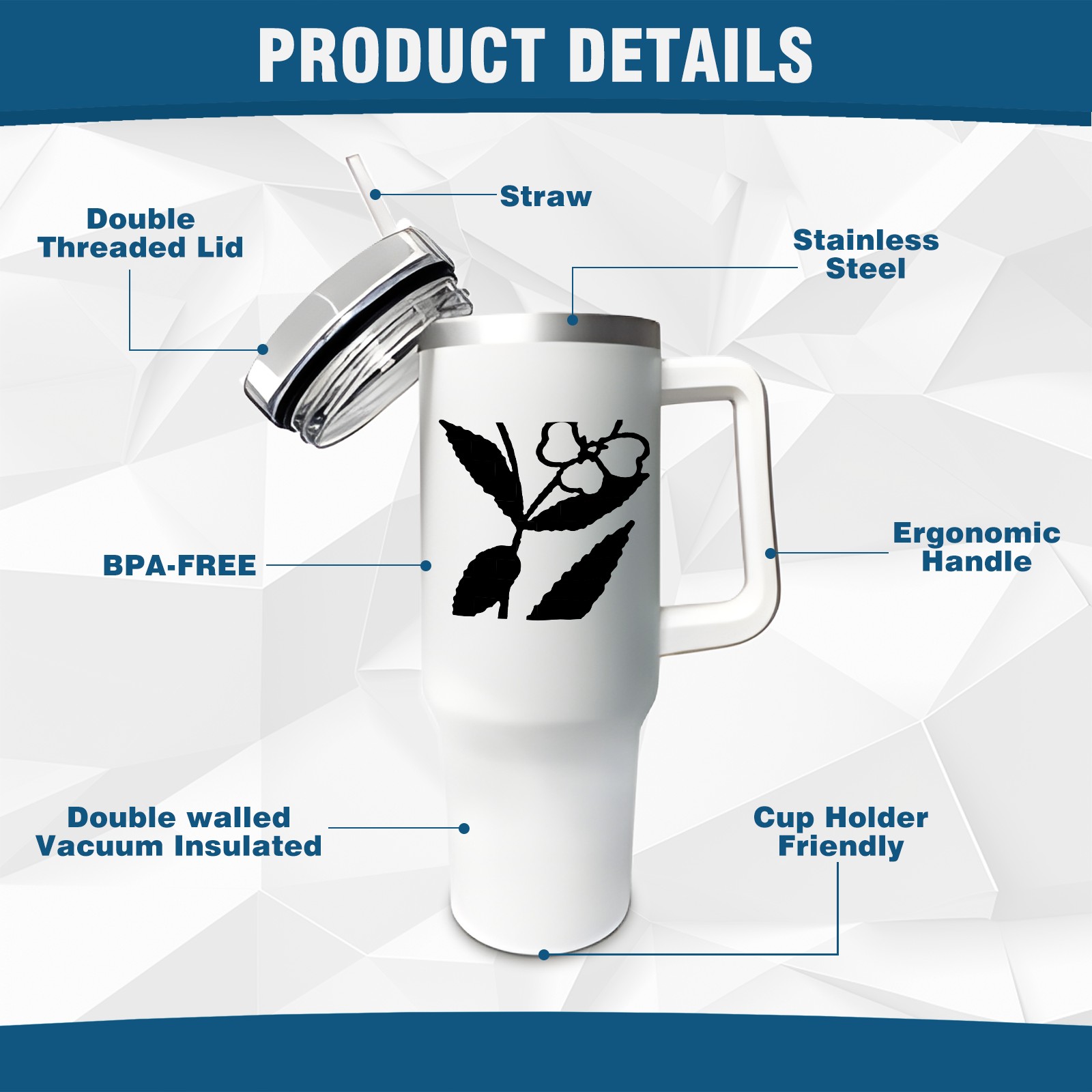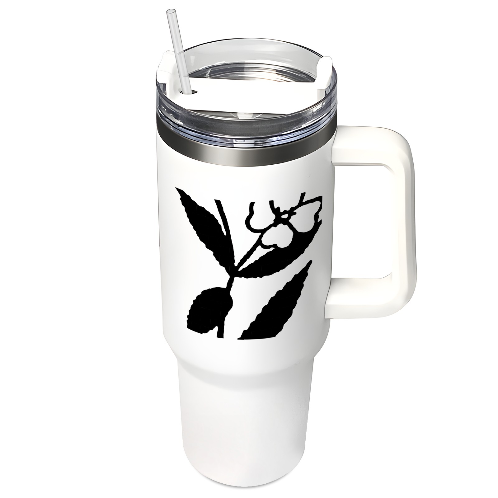 40oz Tumbler with Straw Lid , Handle& Double Wall Vacuum Insulated Cup Reusable Stainless Steel Bottle Trave Mug coffee tumblers BPA Powder Coated Flower (2)
