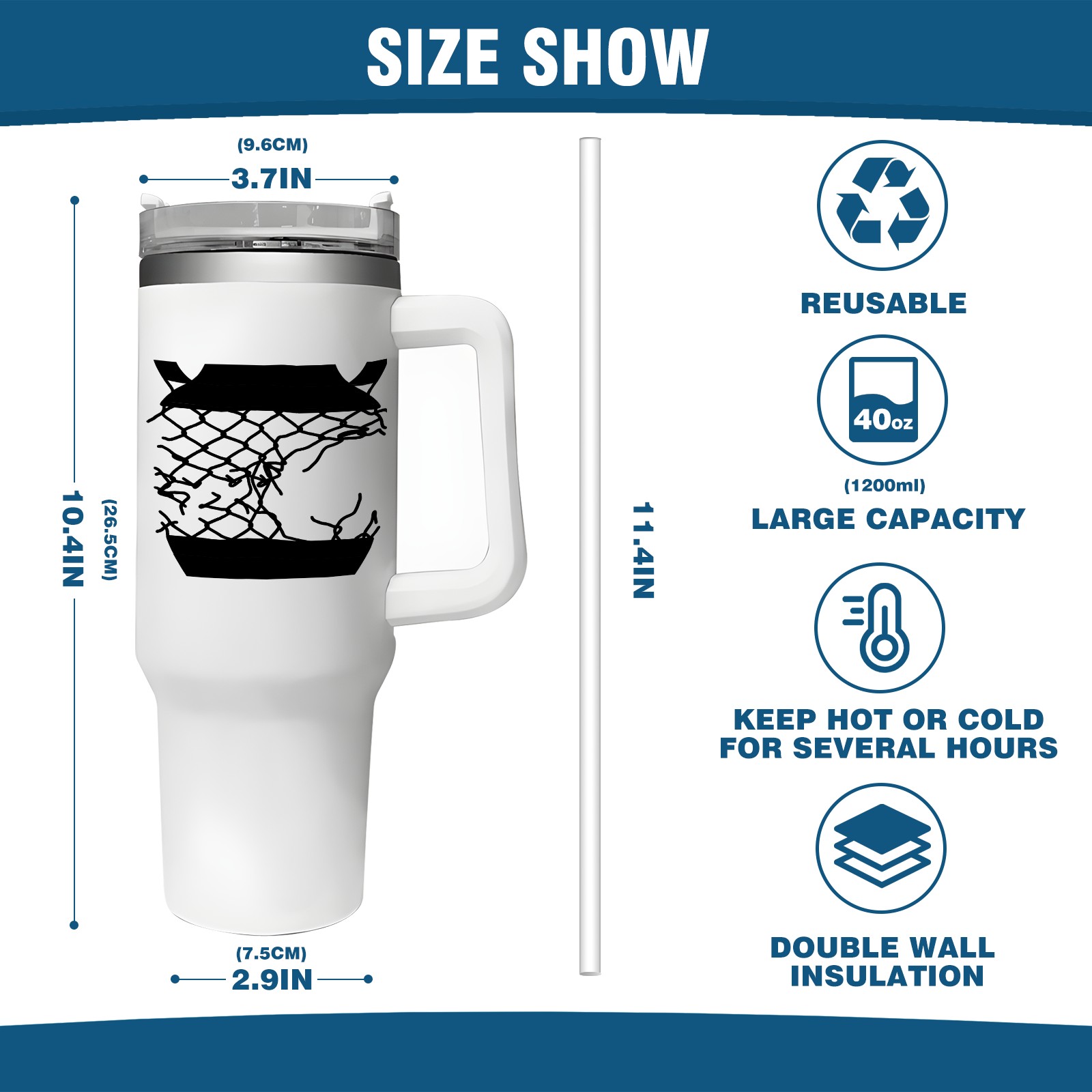 <b>ZXIVGOQFR Tumbler Is Your Dream Cup! </b>Whichever way your day flows, tumbler keeps you refreshed with fewer refills. </br> </br> ●<b>Double Wall Vacuum Insulation </b>means drinks stay cold, iced or hot for hours. </br> ●With advanced lid construction,STRAW OPENING designed to resist splashes with a seal that holds the reusable straw in place, a drink opening, and a full-cover top for added leak resistance. Totally spill proof! </br> ●ZXIVGOQFR Tumbler also included an ergonomic, comfort-grip HANDLE, 40 ounce tumbler cup is 2.9” wide at the base and 3.7” at the top. Narrow base fits just about any car cup holder. So you can bring a smoothie cup, iced coffee cup or extra espresso for your daily commute or weekend outing.