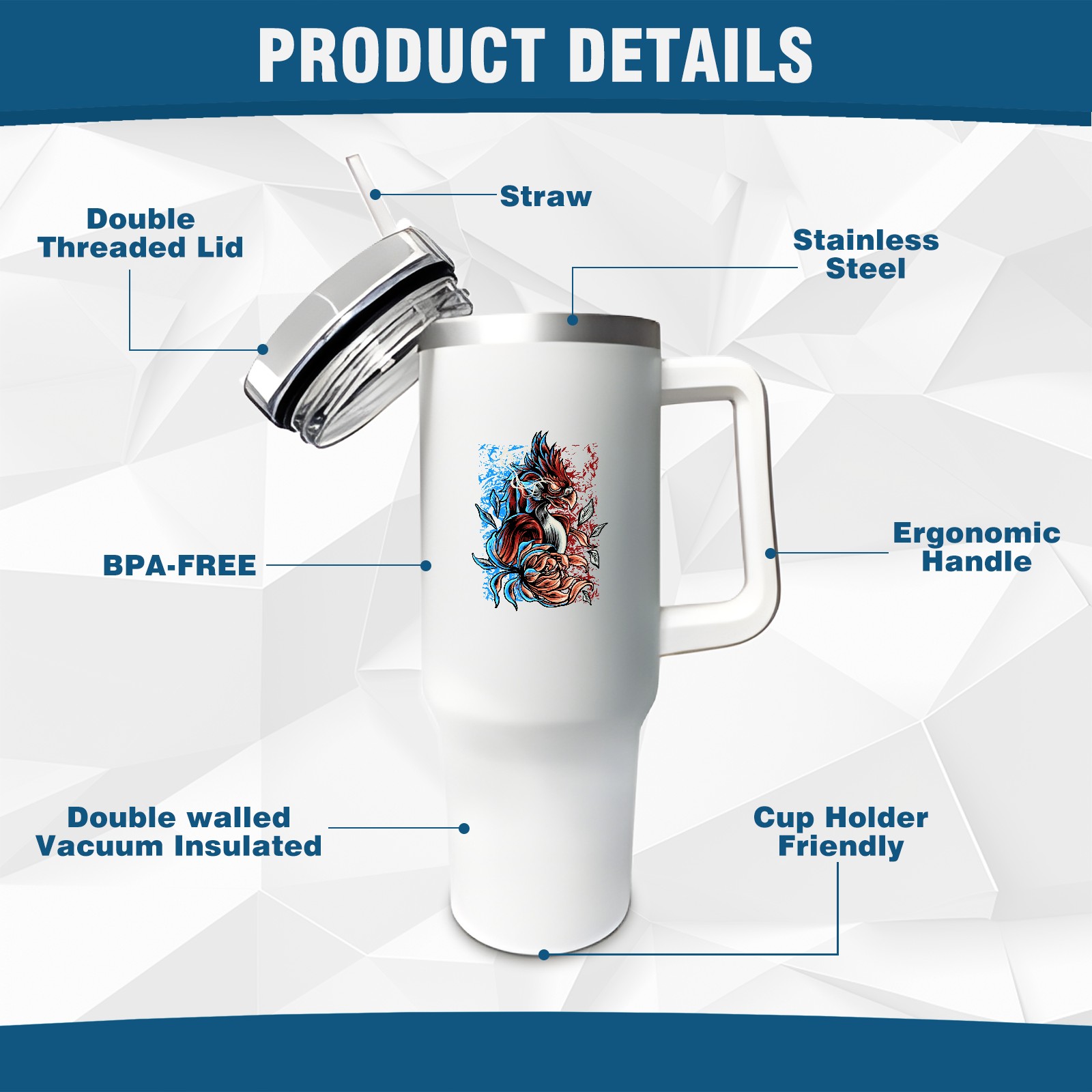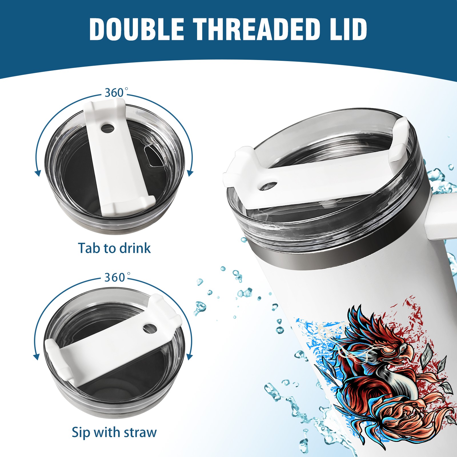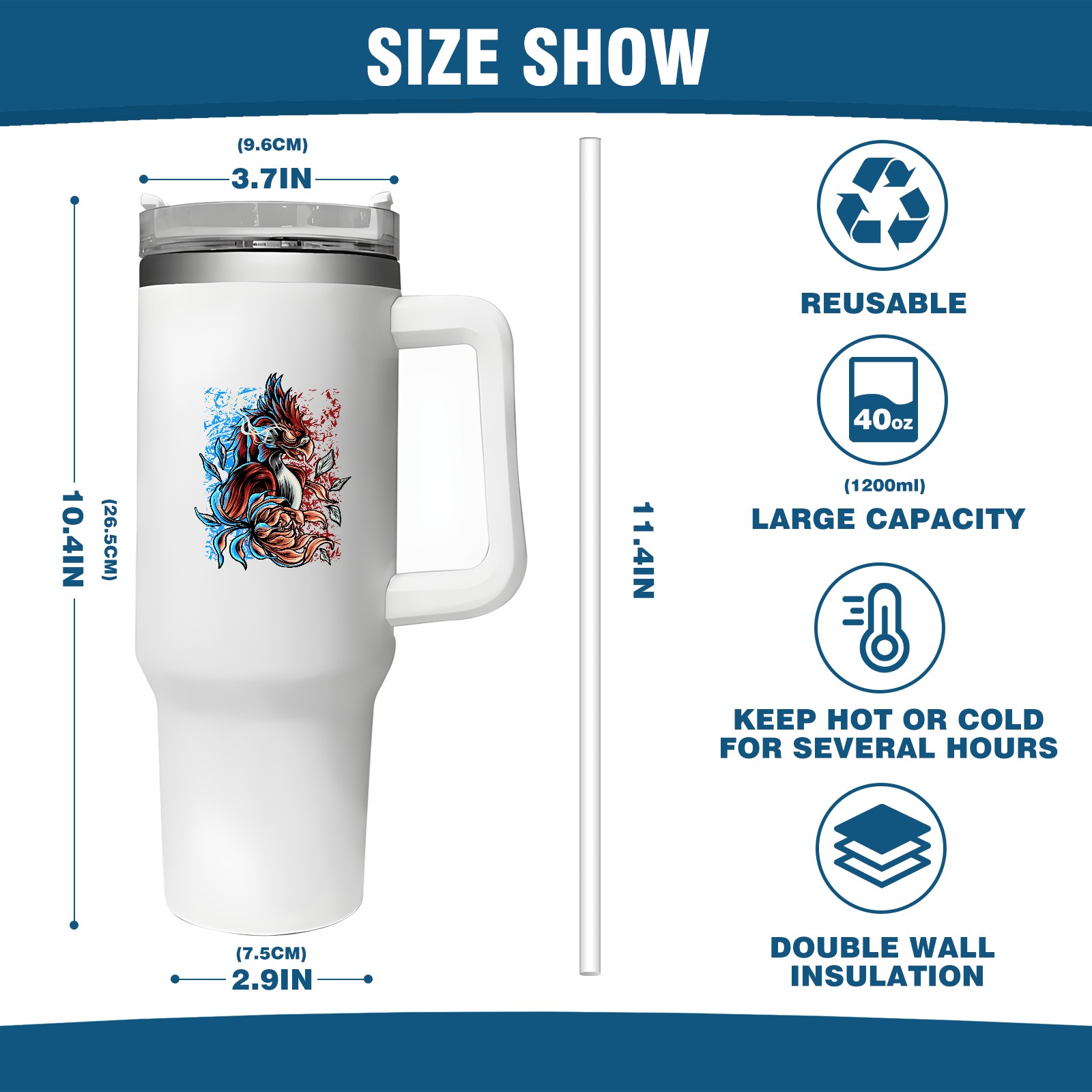 <b>ZXIVGOQFR Tumbler Is Your Dream Cup! </b>Whichever way your day flows, tumbler keeps you refreshed with fewer refills. </br> </br> ●<b>Double Wall Vacuum Insulation </b>means drinks stay cold, iced or hot for hours. </br> ●With advanced lid construction,STRAW OPENING designed to resist splashes with a seal that holds the reusable straw in place, a drink opening, and a full-cover top for added leak resistance. Totally spill proof! </br> ●ZXIVGOQFR Tumbler also included an ergonomic, comfort-grip HANDLE, 40 ounce tumbler cup is 2.9” wide at the base and 3.7” at the top. Narrow base fits just about any car cup holder. So you can bring a smoothie cup, iced coffee cup or extra espresso for your daily commute or weekend outing.