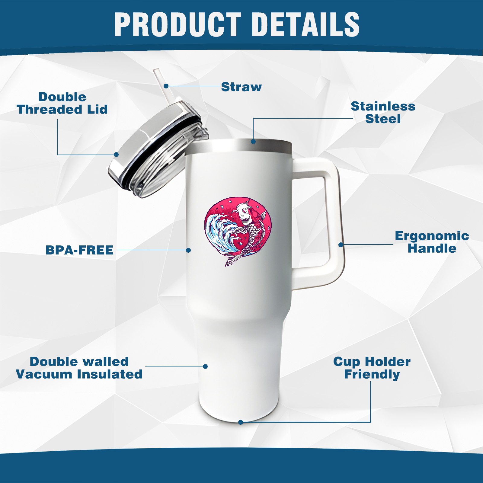 • <b>ZXIVGOQFR Tumbler Is Your Dream Cup! </b>Whichever way your day flows, tumbler keeps you refreshed with fewer refills. </br> </br> ●<b>Double Wall Vacuum Insulation </b>means drinks stay cold, iced or hot for hours. </br> ●With advanced lid construction,STRAW OPENING designed to resist splashes with a seal that holds the reusable straw in place, a drink opening, and a full-cover top for added leak resistance. Totally spill proof! </br> ●ZXIVGOQFR Tumbler also included an ergonomic, comfort-grip HANDLE, 40 ounce tumbler cup is 2.9” wide at the base and 3.7” at the top. Narrow base fits just about any car cup holder. So you can bring a smoothie cup, iced coffee cup or extra espresso for your daily commute or weekend outing.