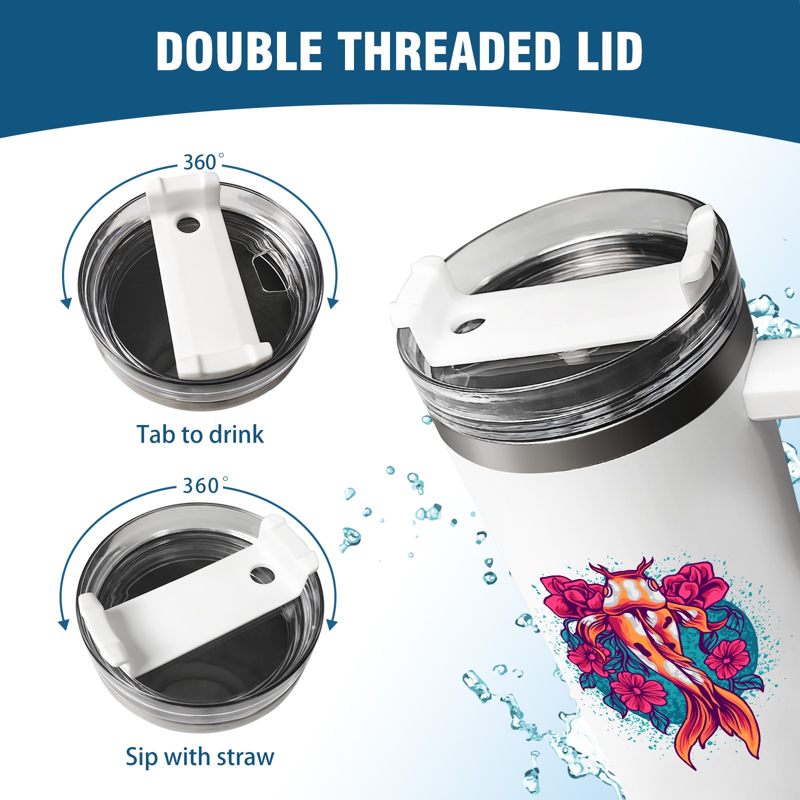 40oz Tumbler with Straw Lid , Handle& Double Wall Vacuum Insulated Cup Reusable Stainless Steel Bottle Trave Mug coffee tumblers BPA Powder Coated Decoration (14)