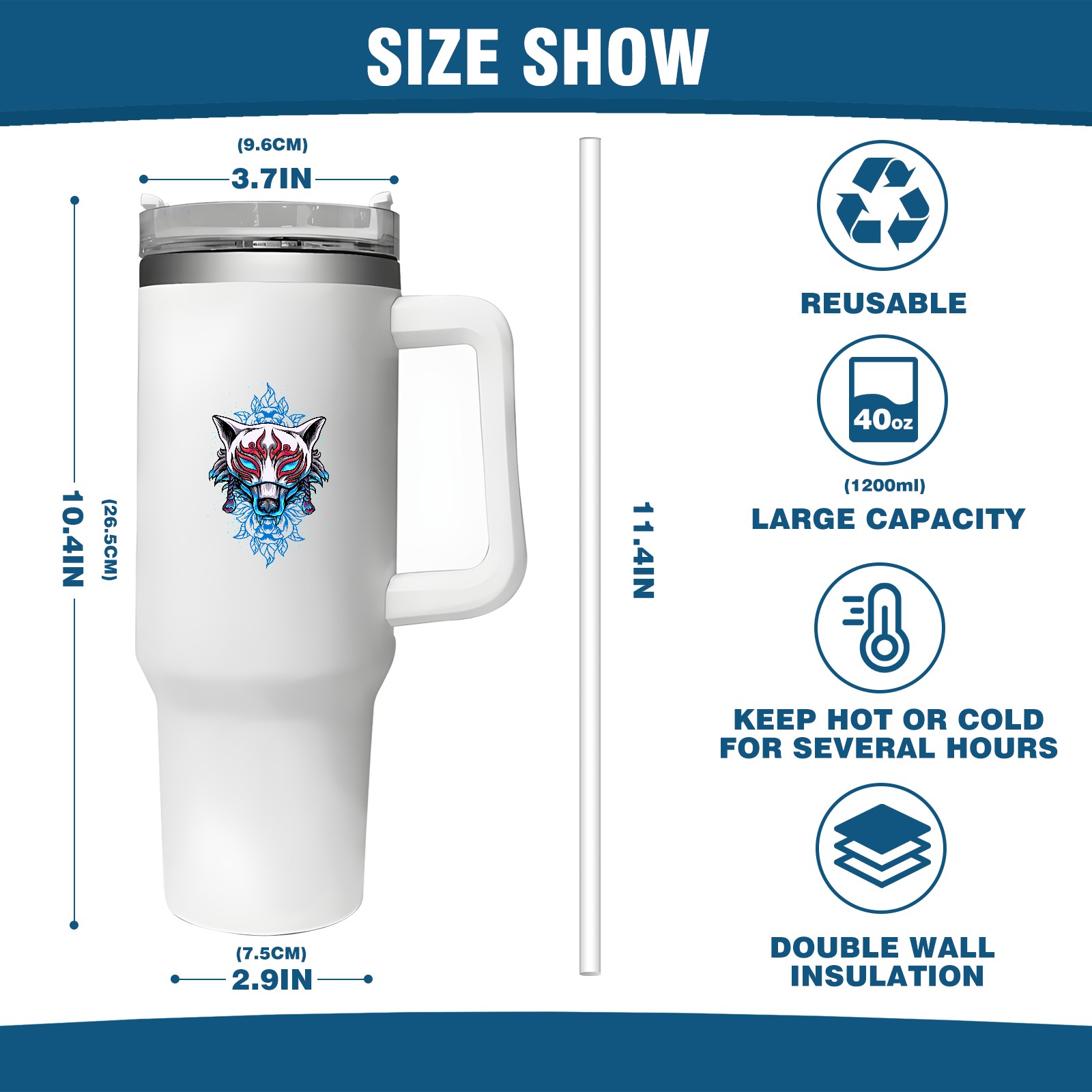 40oz Tumbler with Straw Lid , Handle& Double Wall Vacuum Insulated Cup Reusable Stainless Steel Bottle Trave Mug coffee tumblers BPA Powder Coated Decoration (7)