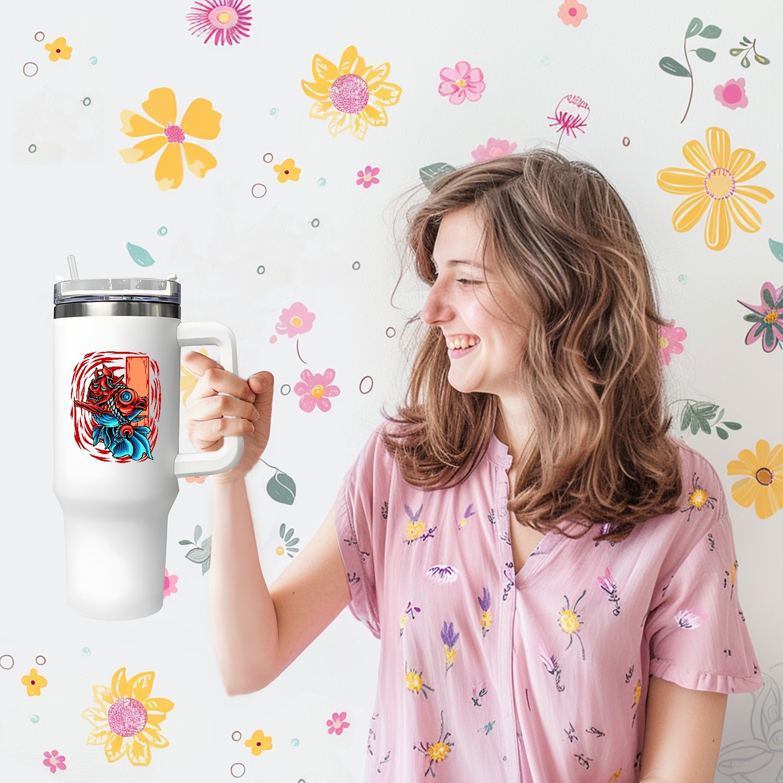 40oz Tumbler with Straw Lid , Handle& Double Wall Vacuum Insulated Cup Reusable Stainless Steel Bottle Trave Mug coffee tumblers BPA Powder Coated Decoration (11)