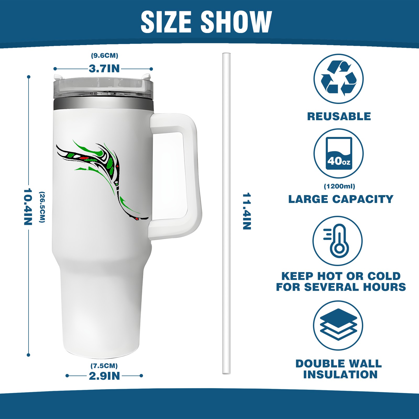 40oz Tumbler with Straw Lid , Handle& Double Wall Vacuum Insulated Cup Reusable Stainless Steel Bottle Trave Mug coffee tumblers BPA Powder Coated Customized Patterns