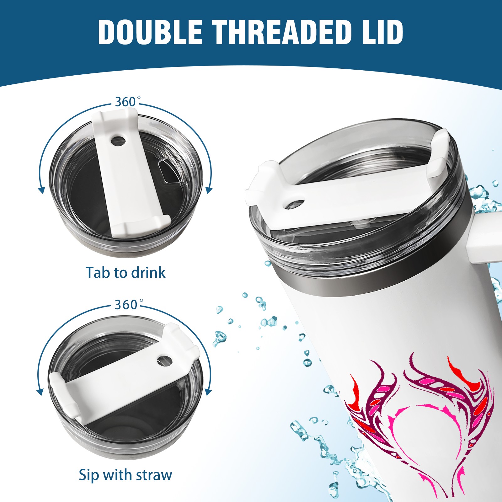 40oz Tumbler with Straw Lid , Handle& Double Wall Vacuum Insulated Cup Reusable Stainless Steel Bottle Trave Mug coffee tumblers BPA Powder Coated Customized Patterns (45)