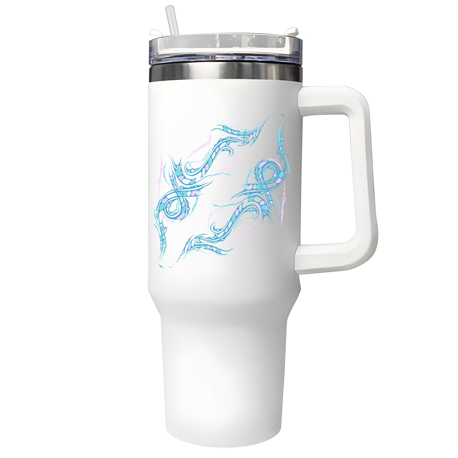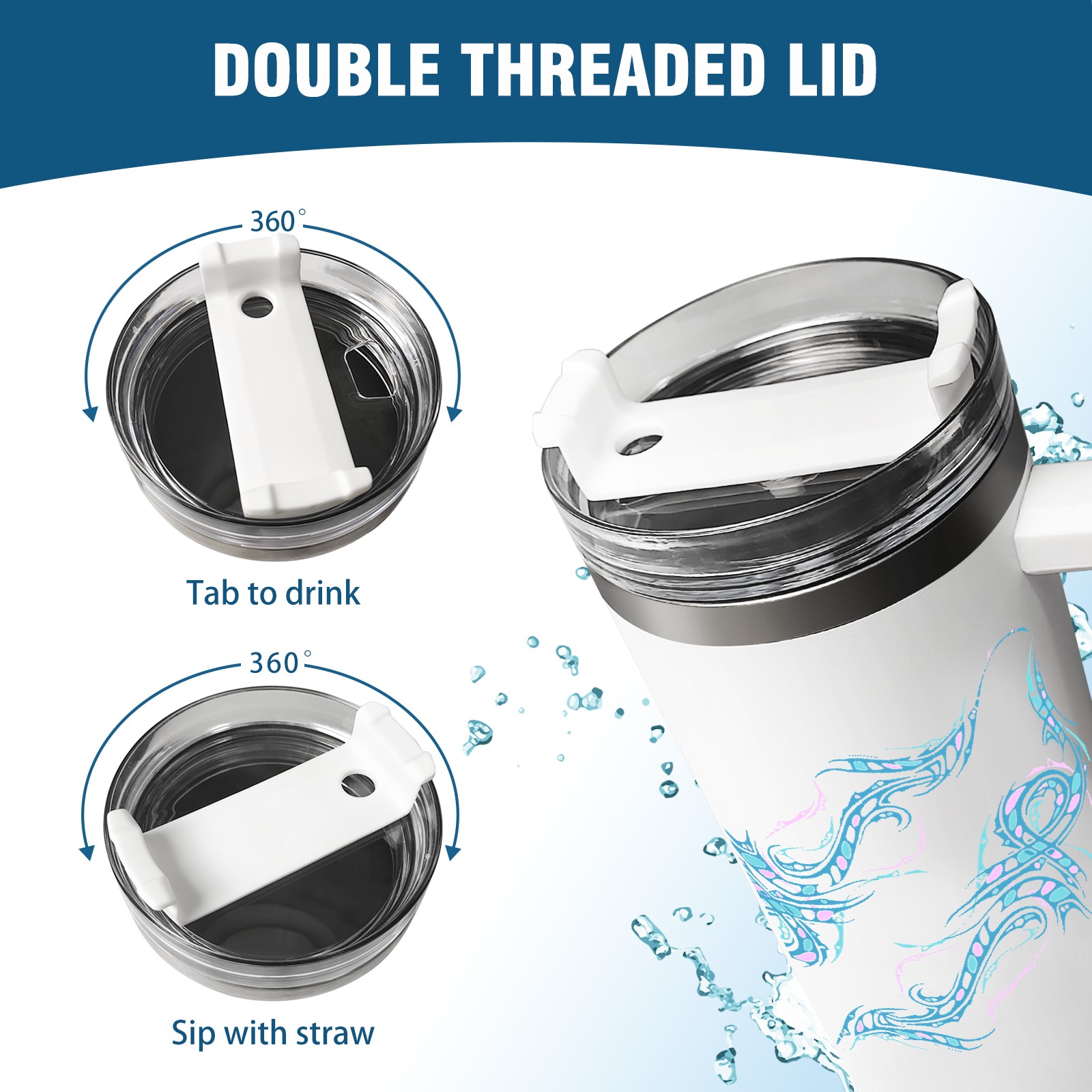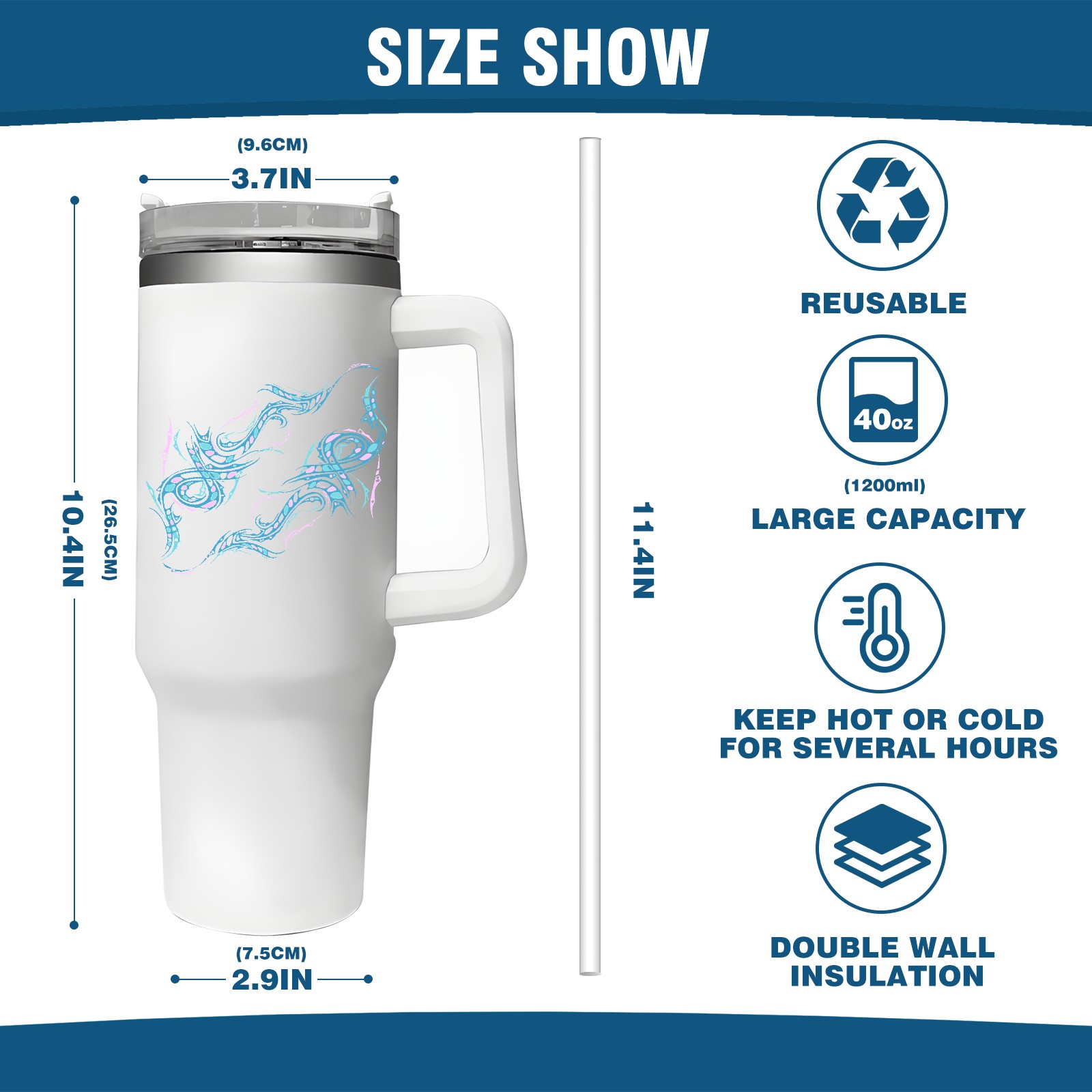 40oz Tumbler with Straw Lid , Handle& Double Wall Vacuum Insulated Cup Reusable Stainless Steel Bottle Trave Mug coffee tumblers BPA Powder Coated Customized Patterns (38)