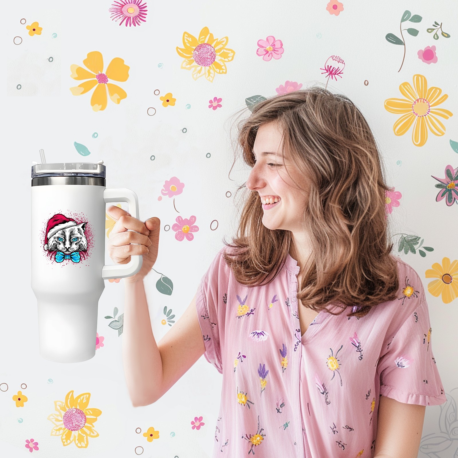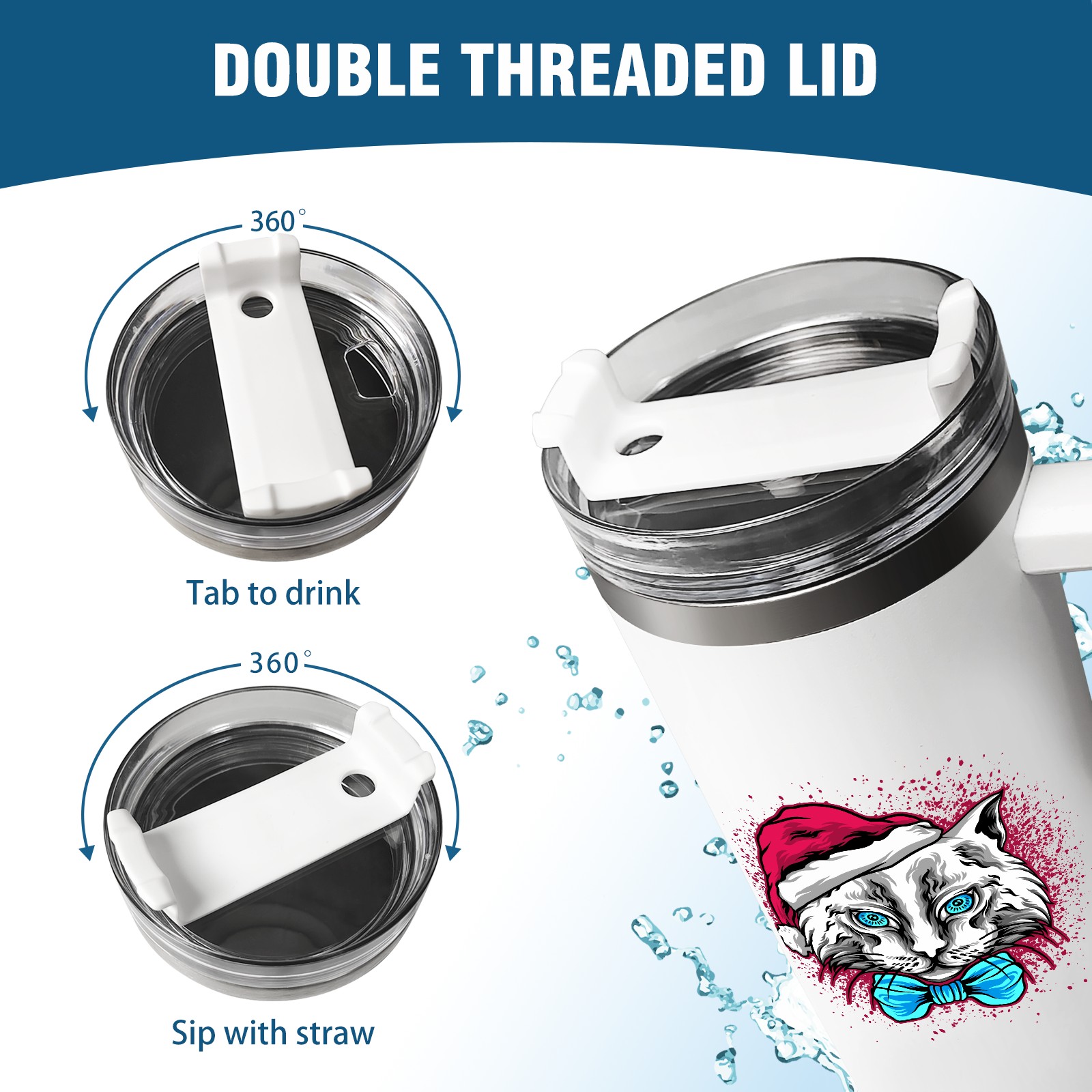 40oz Tumbler with Straw Lid , Handle& Double Wall Vacuum Insulated Cup Reusable Stainless Steel Bottle Trave Mug coffee tumblers BPA Powder Coated Cat