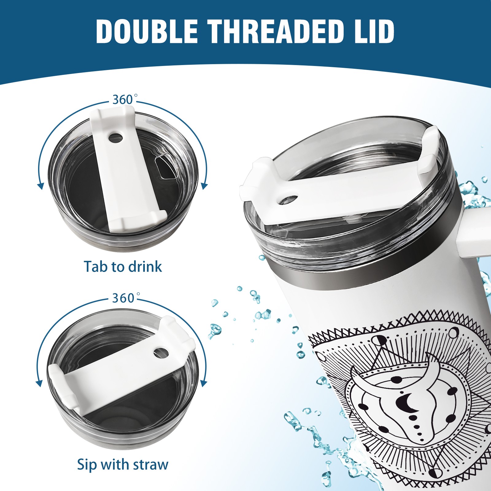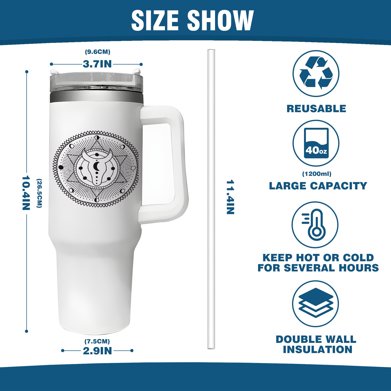 <b>ZXIVGOQFR Tumbler Is Your Dream Cup! </b>Whichever way your day flows, tumbler keeps you refreshed with fewer refills. </br> </br> ●<b>Double Wall Vacuum Insulation </b>means drinks stay cold, iced or hot for hours. </br> ●With advanced lid construction,STRAW OPENING designed to resist splashes with a seal that holds the reusable straw in place, a drink opening, and a full-cover top for added leak resistance. Totally spill proof! </br> ●ZXIVGOQFR Tumbler also included an ergonomic, comfort-grip HANDLE, 40 ounce tumbler cup is 2.9” wide at the base and 3.7” at the top. Narrow base fits just about any car cup holder. So you can bring a smoothie cup, iced coffee cup or extra espresso for your daily commute or weekend outing.