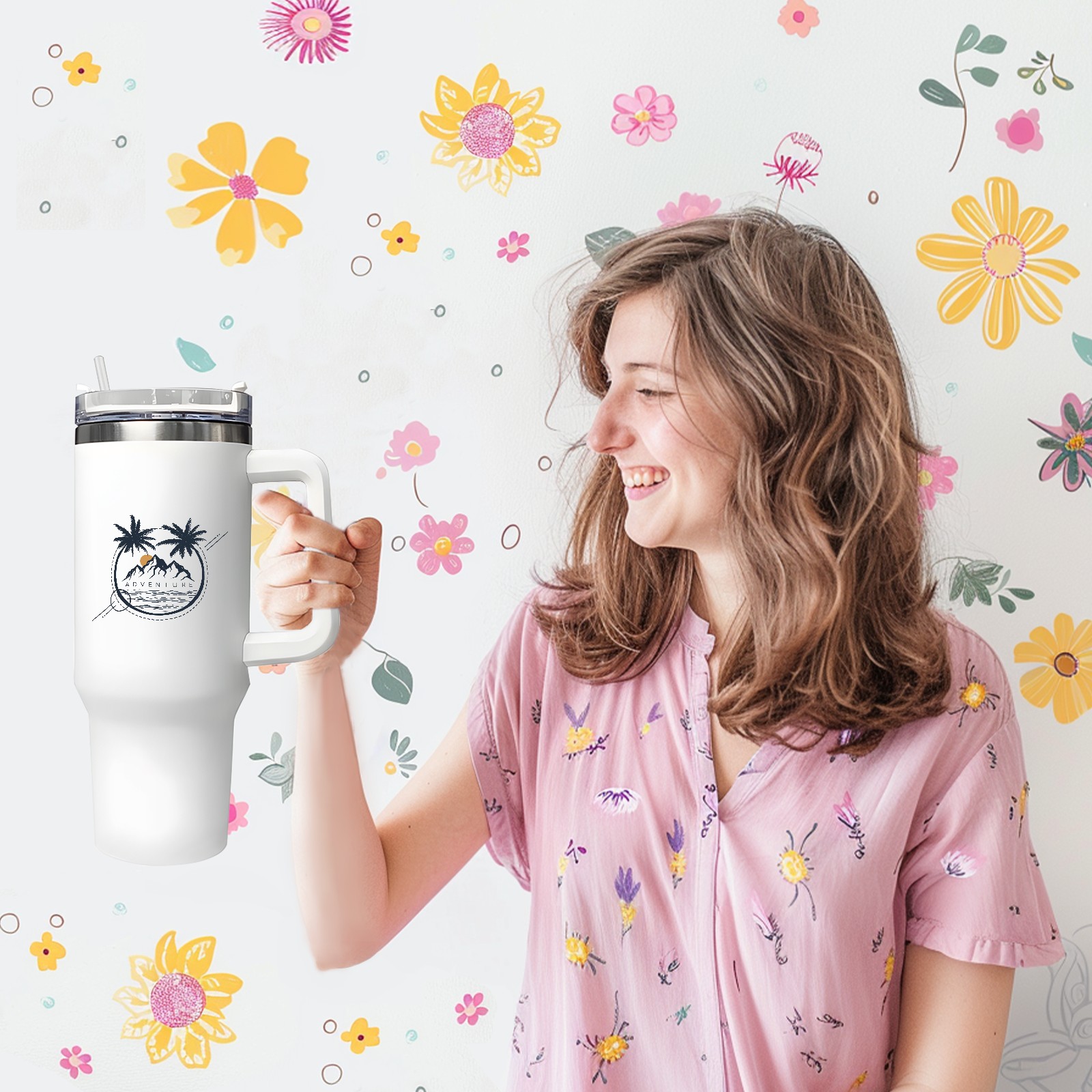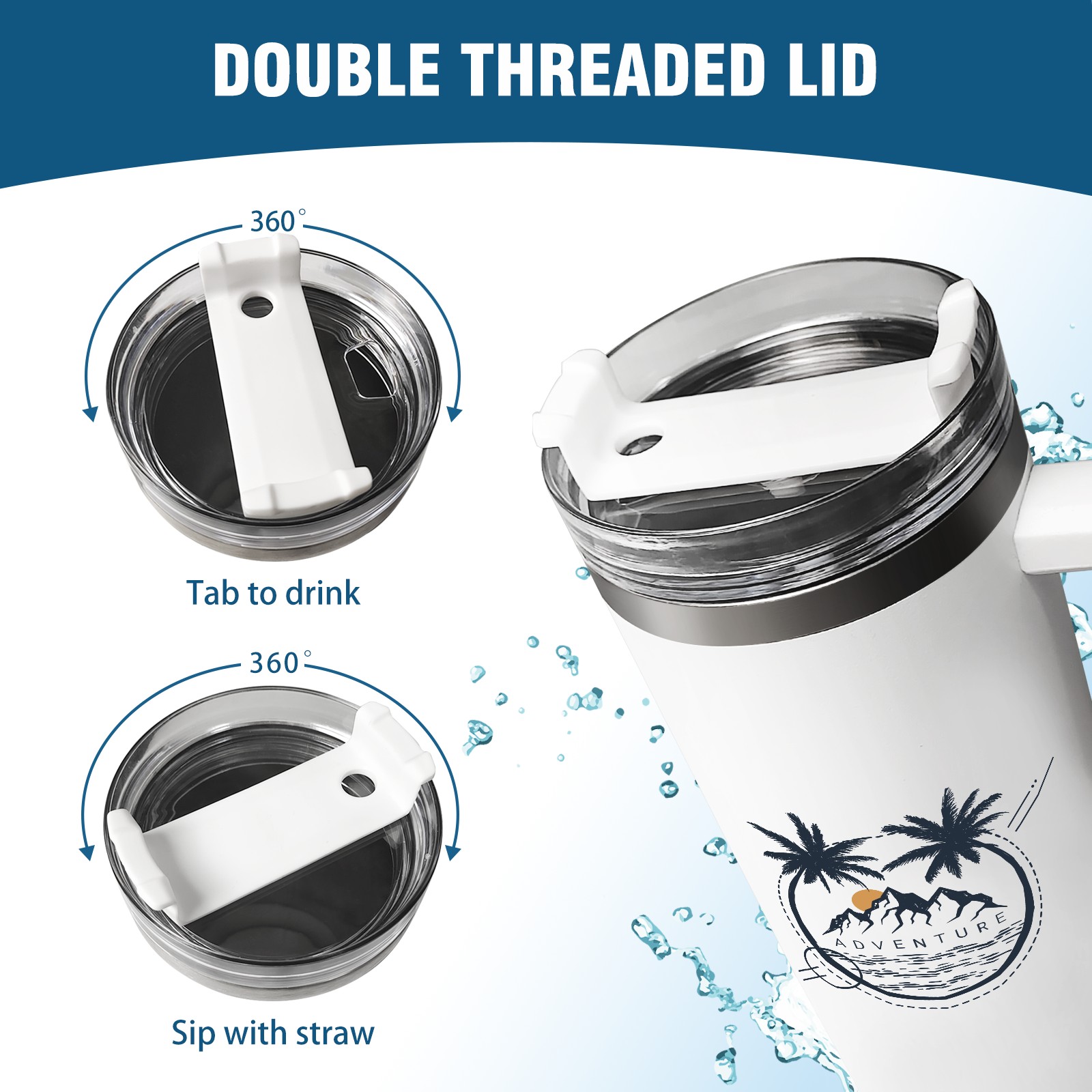 40oz Tumbler with Straw Lid , Handle& Double Wall Vacuum Insulated Cup Reusable Stainless Steel Bottle Trave Mug coffee tumblers BPA Powder Coated Adventure (2)