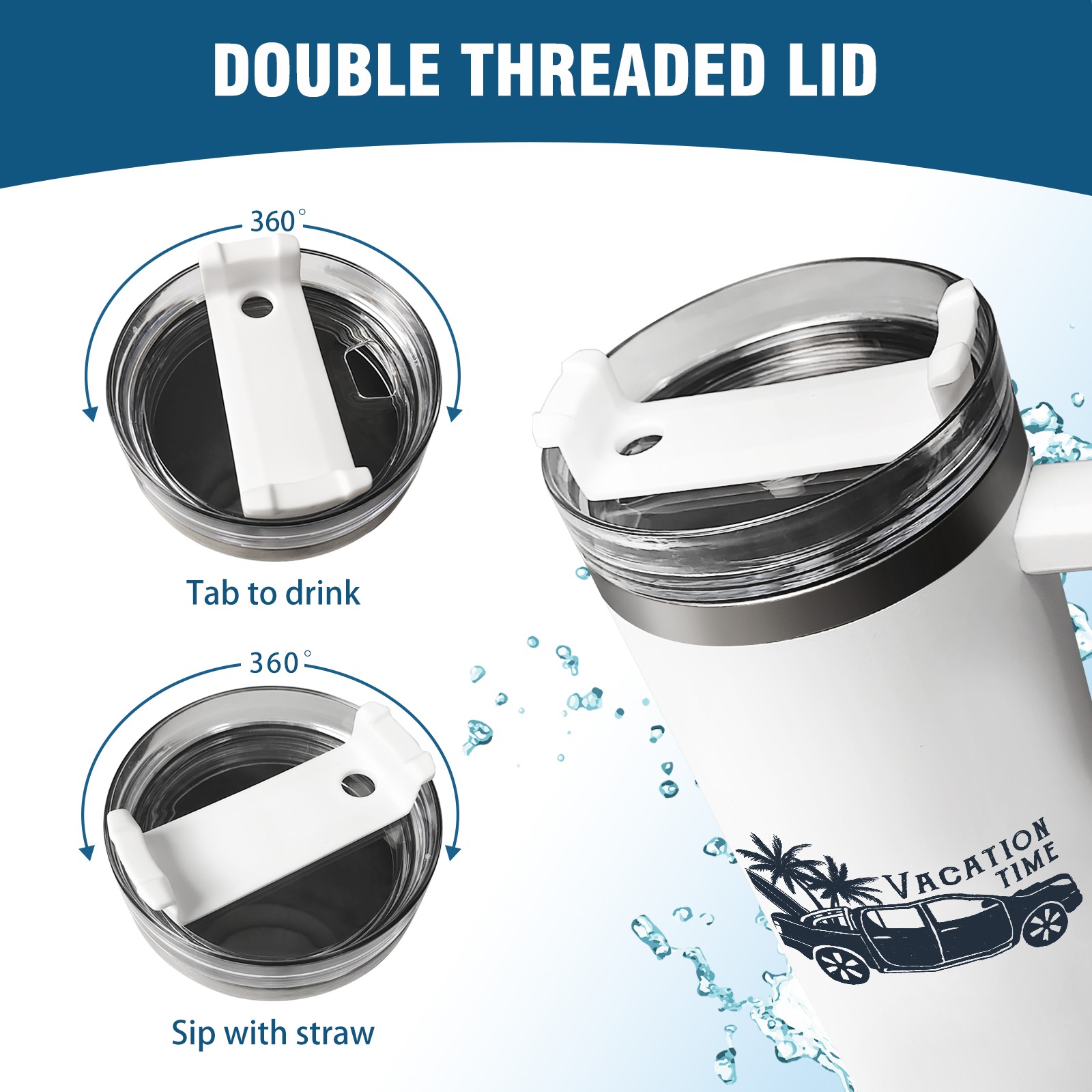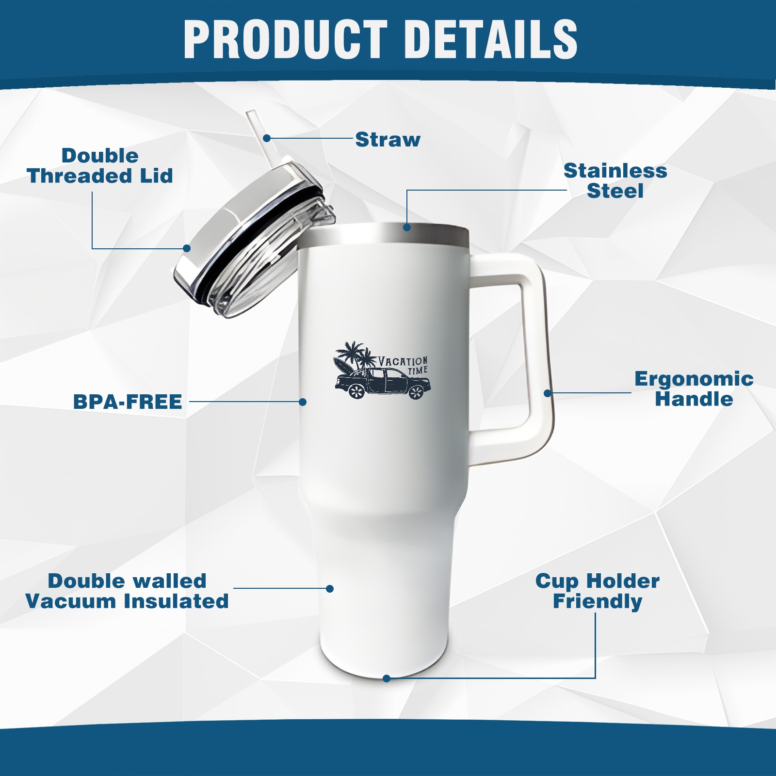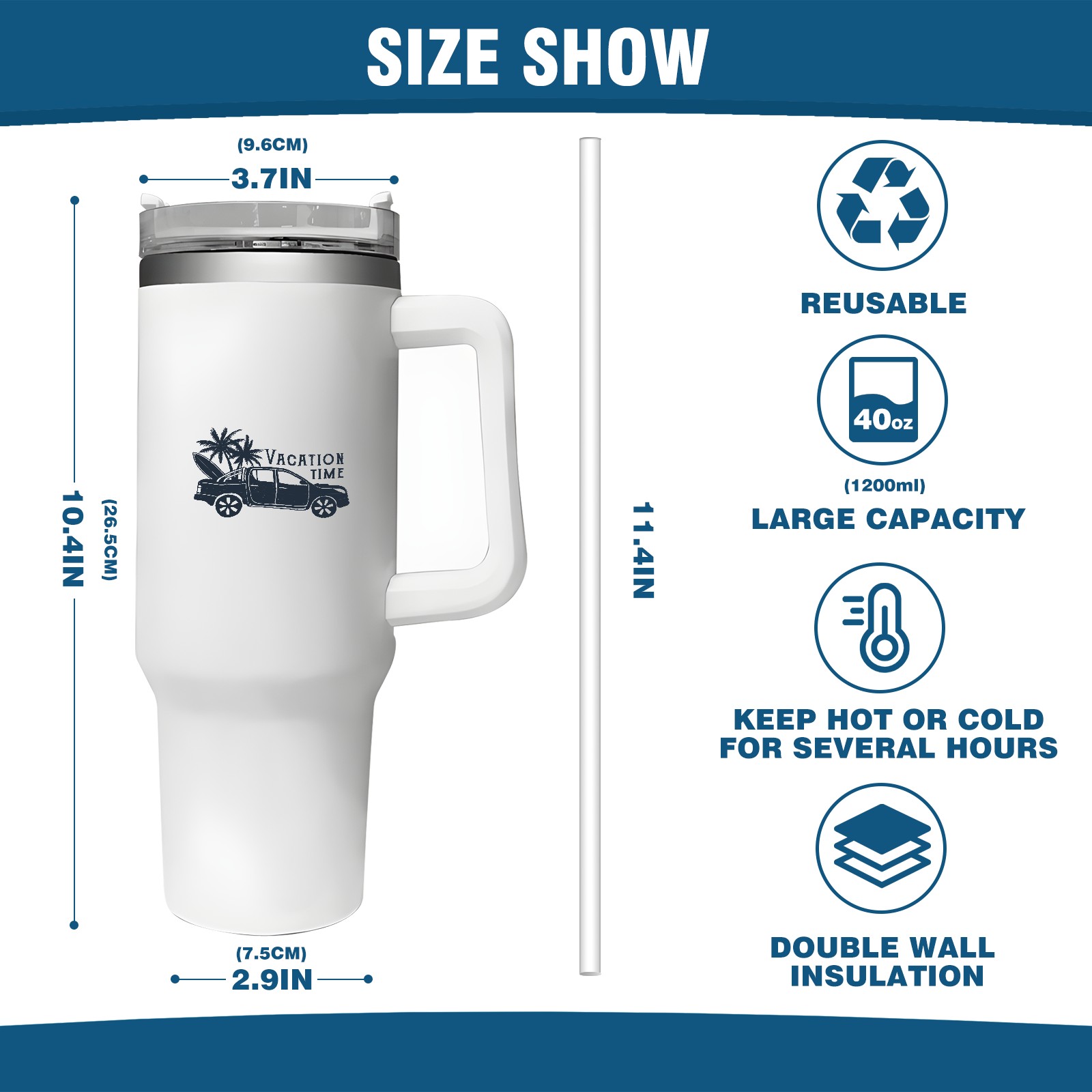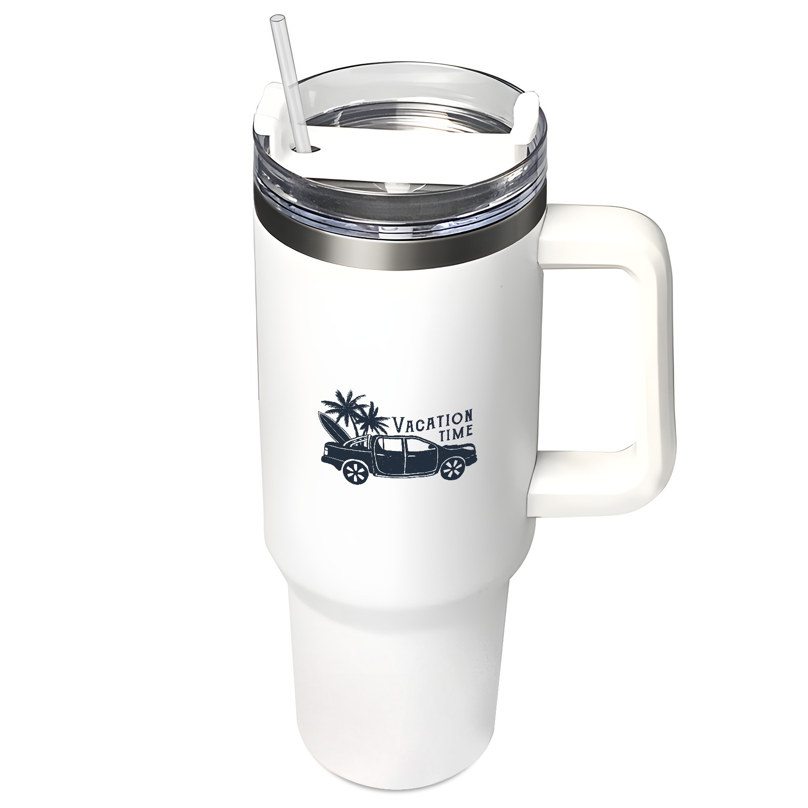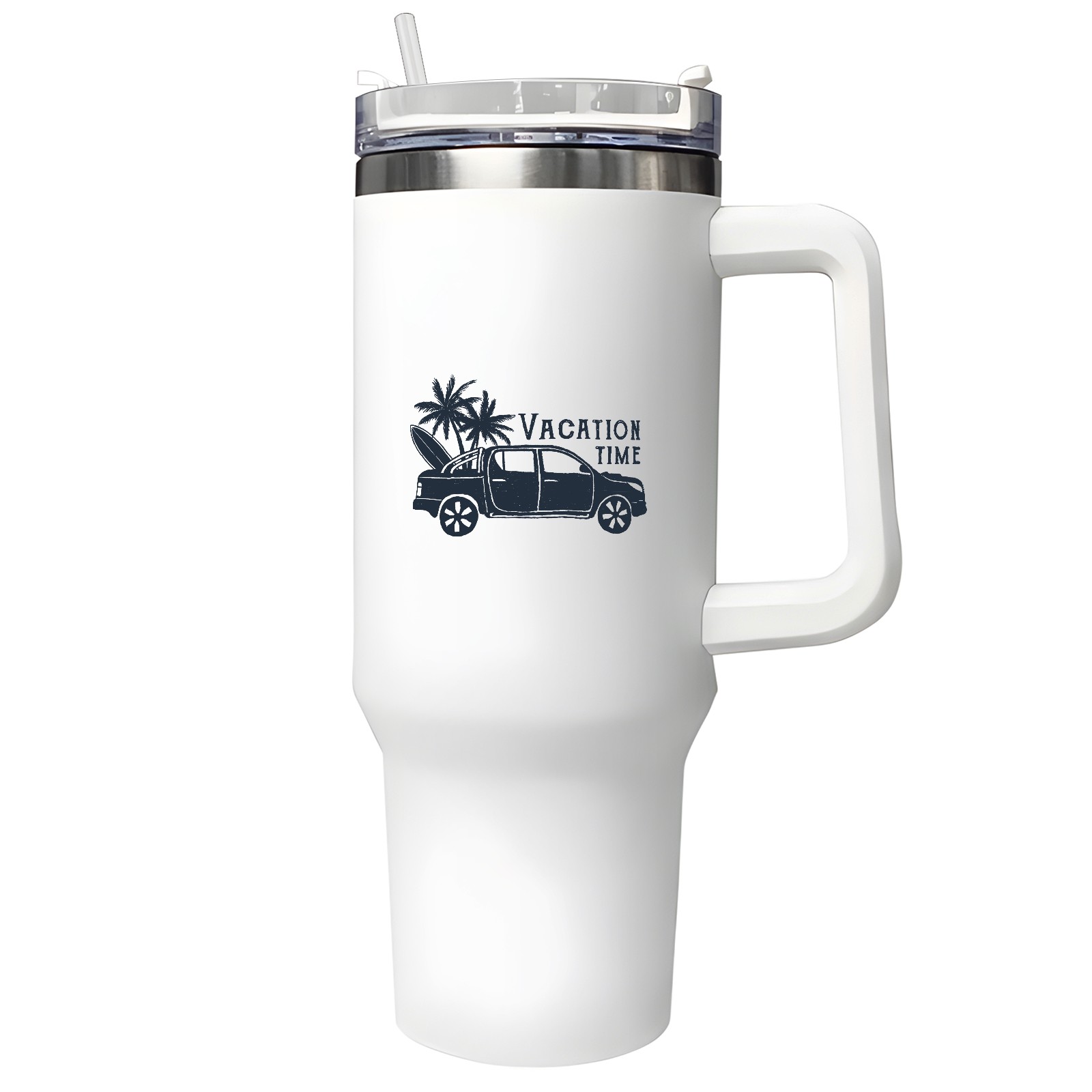 40oz Tumbler with Straw Lid , Handle& Double Wall Vacuum Insulated Cup Reusable Stainless Steel Bottle Trave Mug coffee tumblers BPA Powder Coated Vacation Time (2)