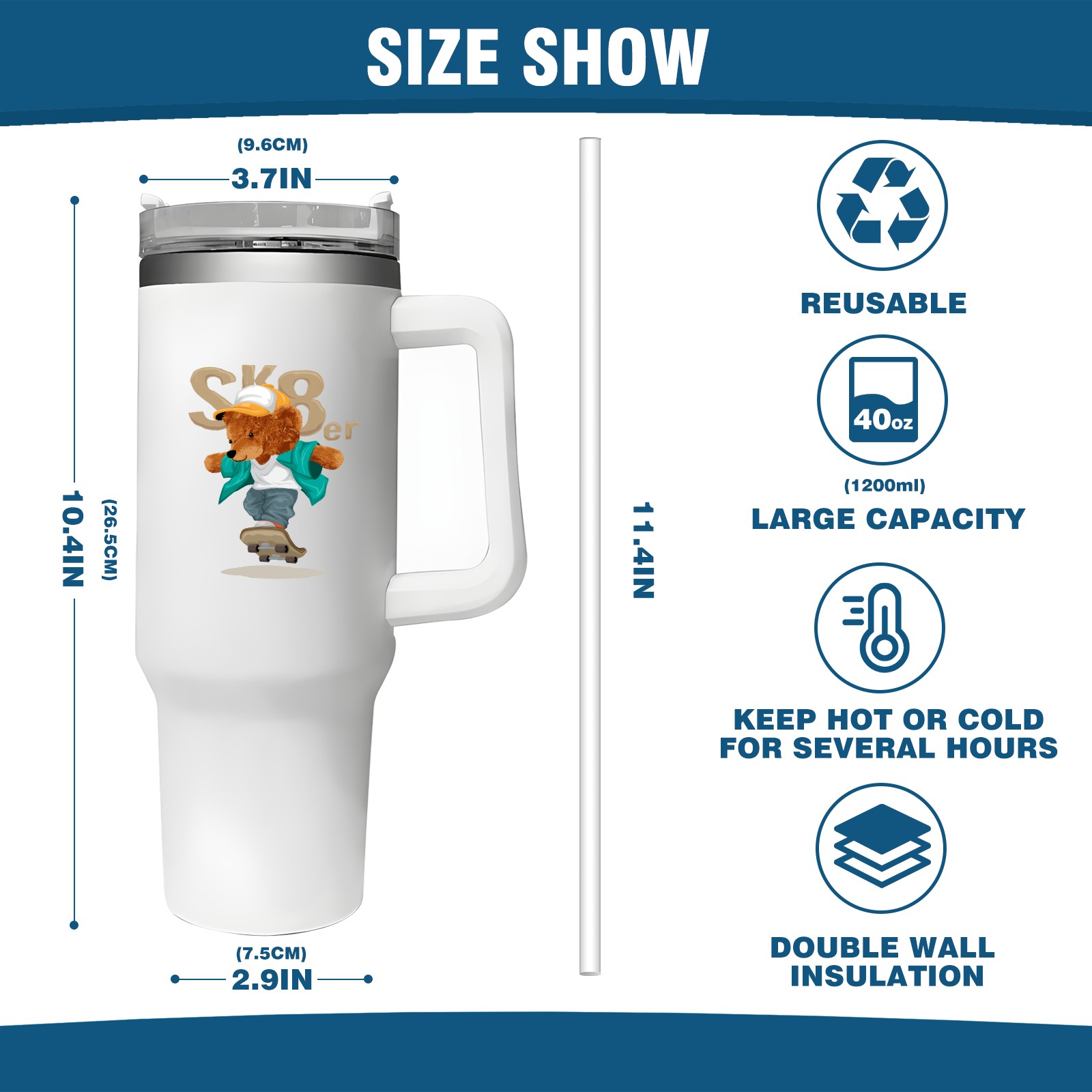 40oz Tumbler with Straw Lid , Handle& Double Wall Vacuum Insulated Cup Reusable Stainless Steel Bottle Trave Mug coffee tumblers BPA Powder Coated Skber (3)