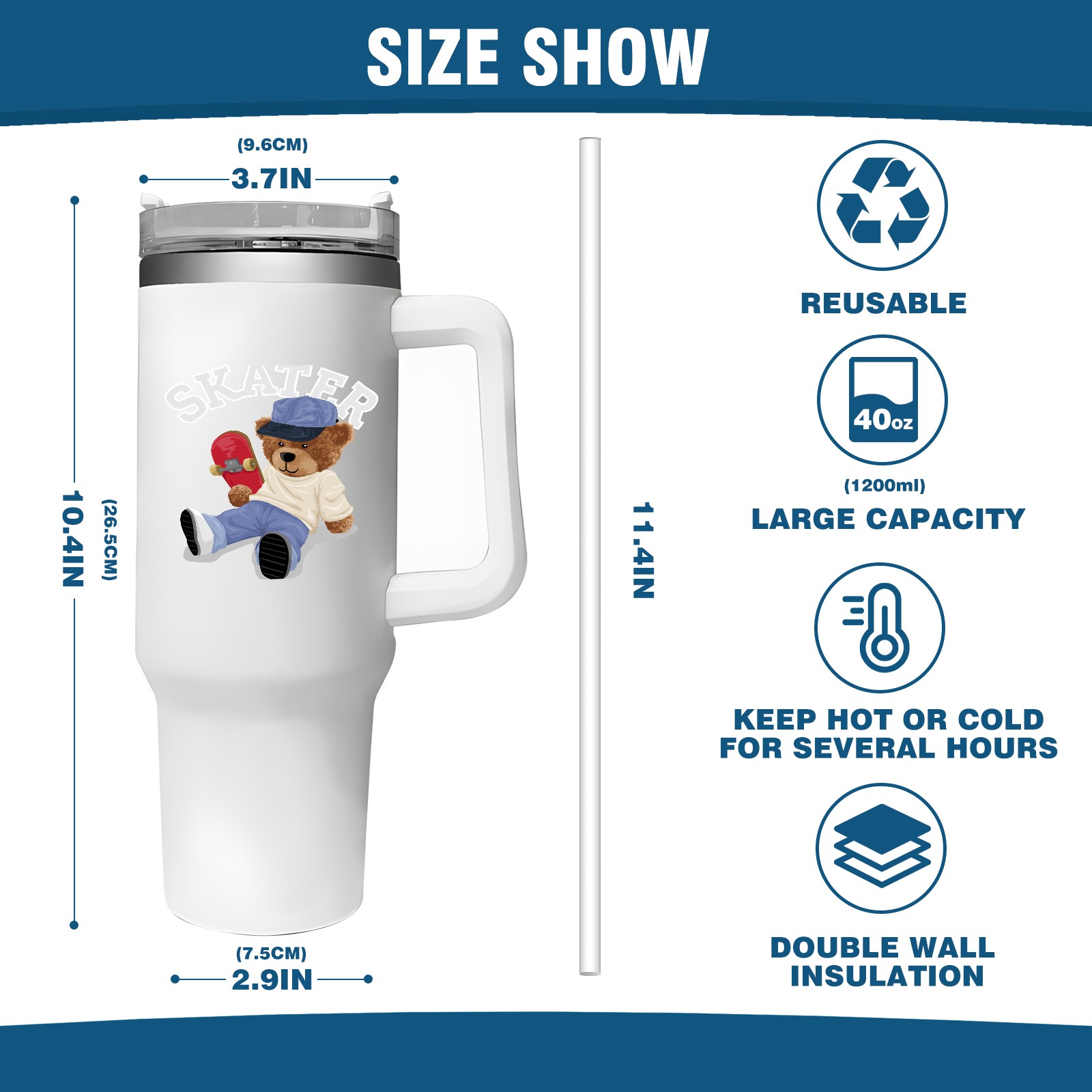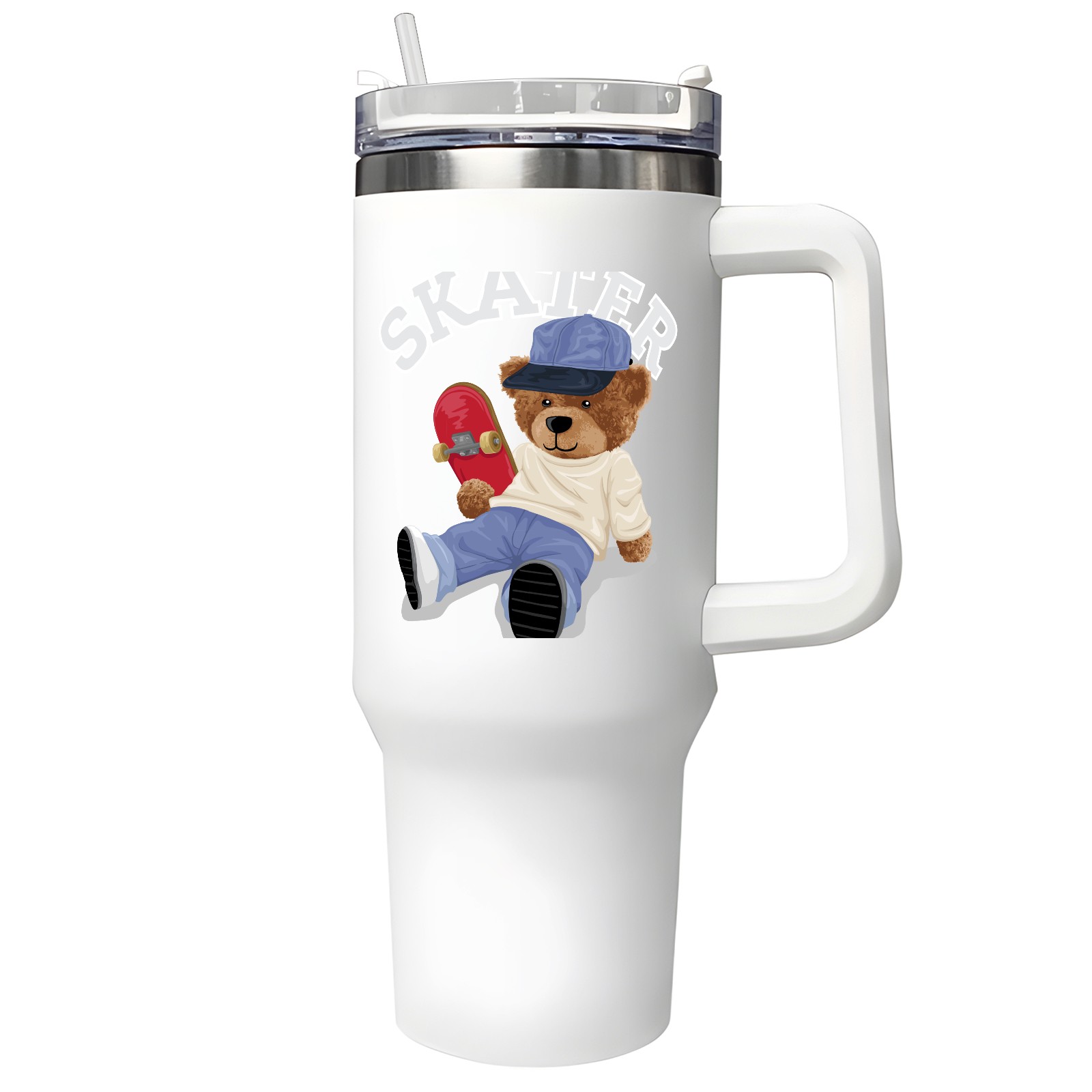 40oz Tumbler with Straw Lid , Handle& Double Wall Vacuum Insulated Cup Reusable Stainless Steel Bottle Trave Mug coffee tumblers BPA Powder Coated Skater