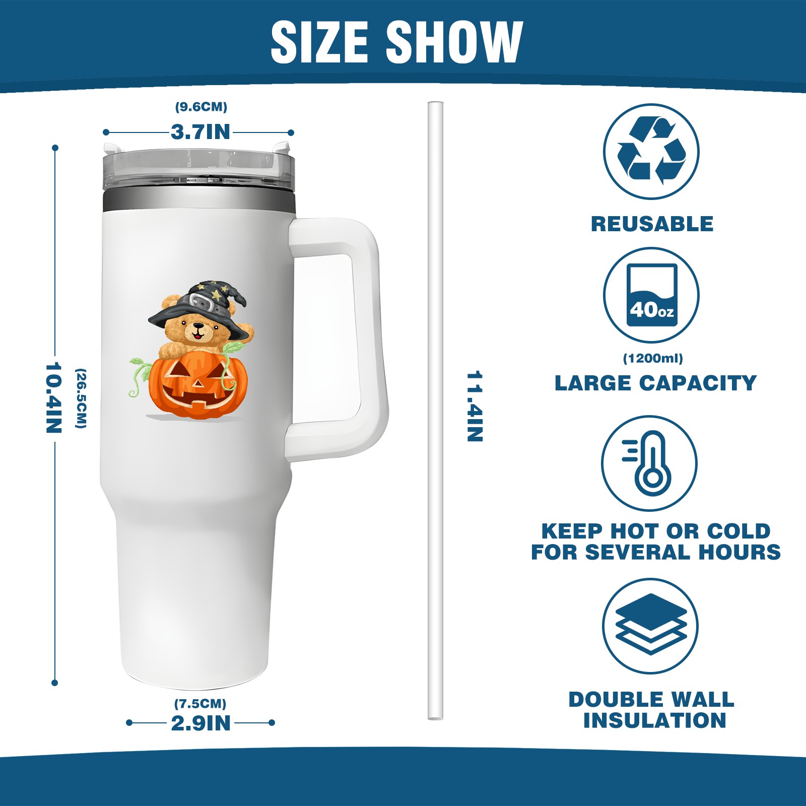 40oz Tumbler with Straw Lid , Handle& Double Wall Vacuum Insulated Cup Reusable Stainless Steel Bottle Trave Mug coffee tumblers BPA Powder Coated Scold (19)