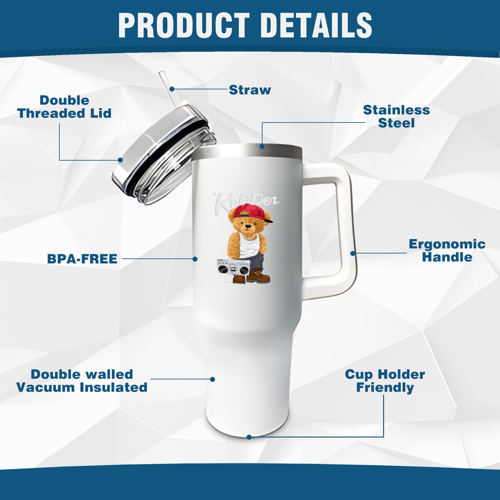<b>ZXIVGOQFR Tumbler Is Your Dream Cup! </b>Whichever way your day flows, tumbler keeps you refreshed with fewer refills. </br> </br> ●<b>Double Wall Vacuum Insulation </b>means drinks stay cold, iced or hot for hours. </br> ●With advanced lid construction,STRAW OPENING designed to resist splashes with a seal that holds the reusable straw in place, a drink opening, and a full-cover top for added leak resistance. Totally spill proof! </br> ●ZXIVGOQFR Tumbler also included an ergonomic, comfort-grip HANDLE, 40 ounce tumbler cup is 2.9” wide at the base and 3.7” at the top. Narrow base fits just about any car cup holder. So you can bring a smoothie cup, iced coffee cup or extra espresso for your daily commute or weekend outing.