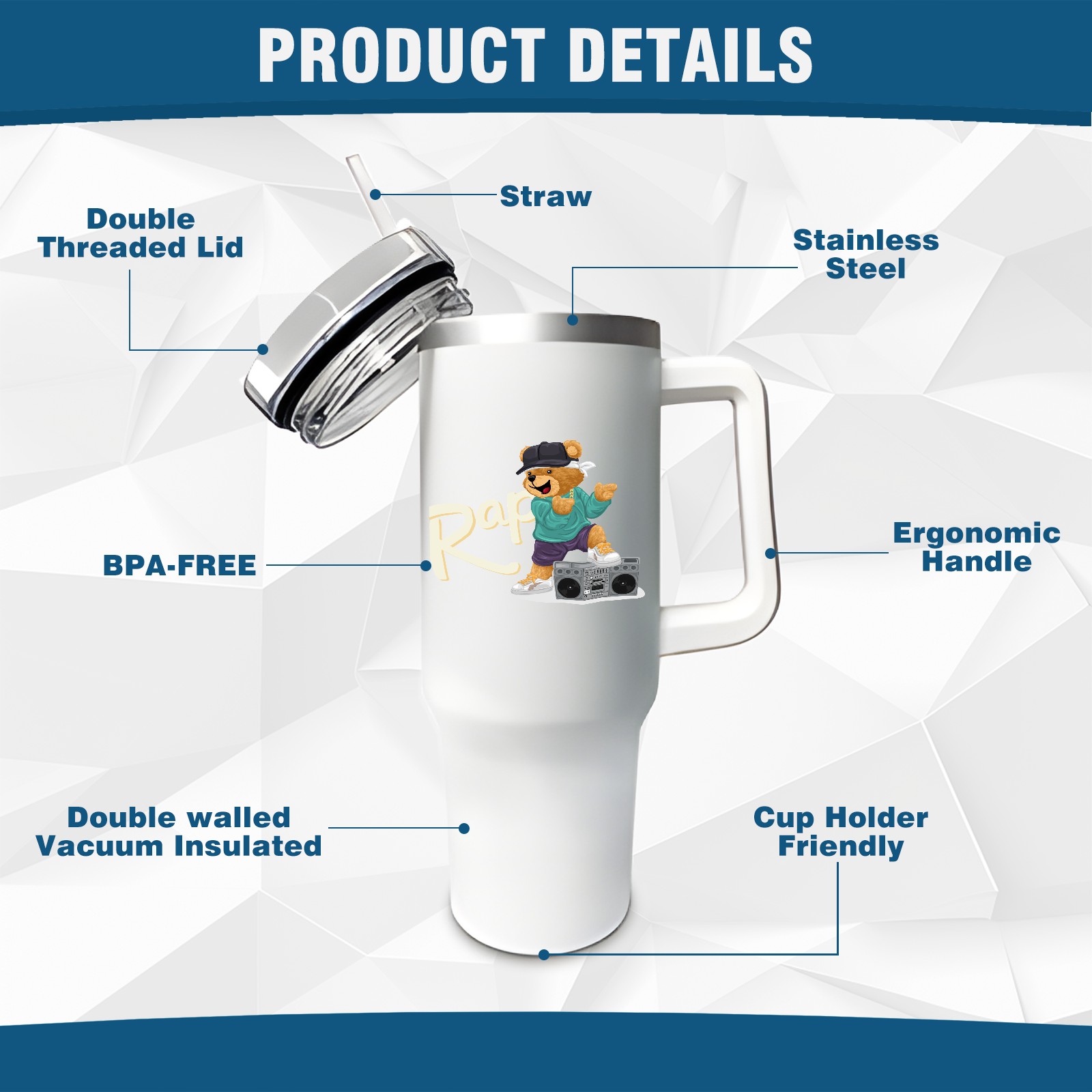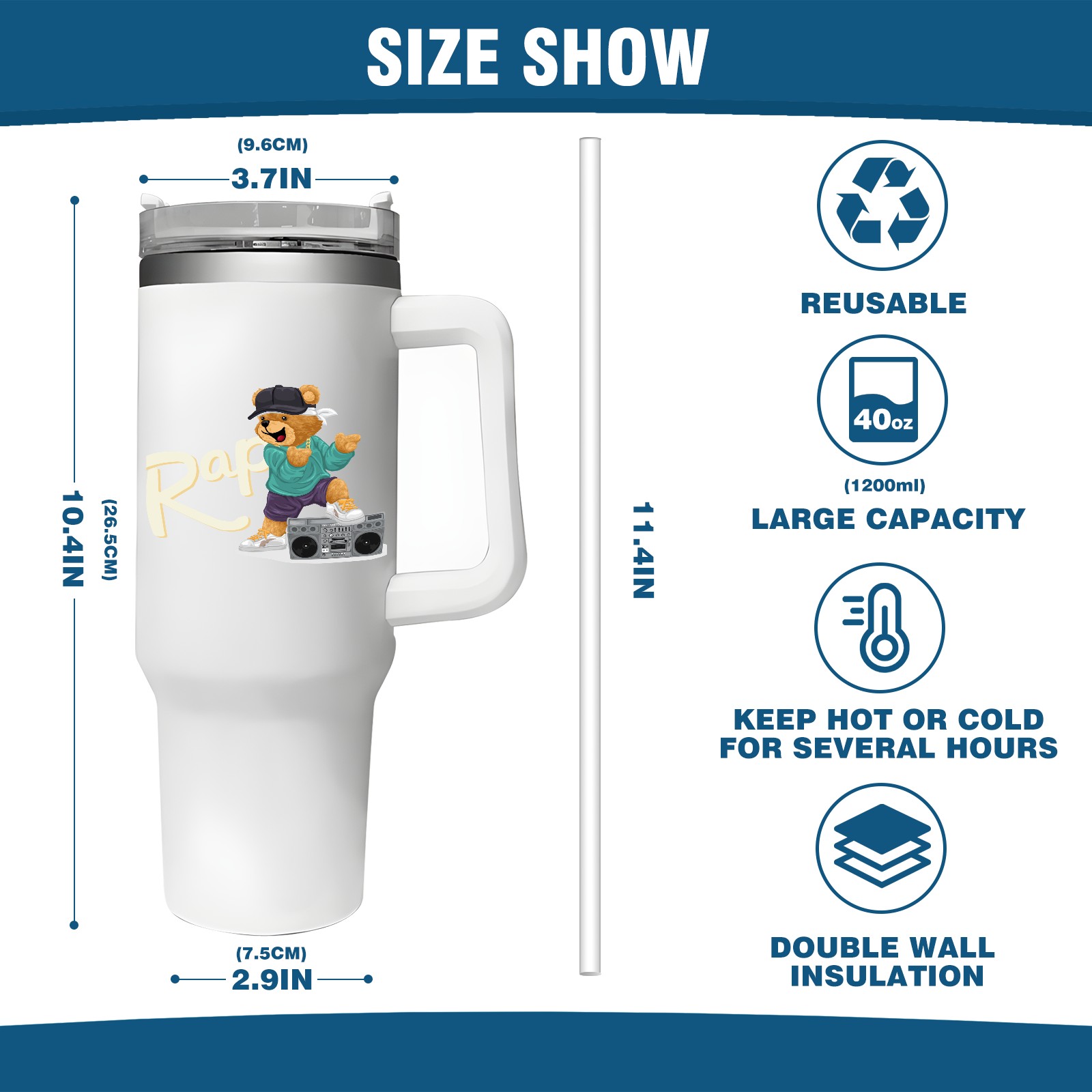 40oz Tumbler with Straw Lid , Handle& Double Wall Vacuum Insulated Cup Reusable Stainless Steel Bottle Trave Mug coffee tumblers BPA Powder Coated Rap (2)