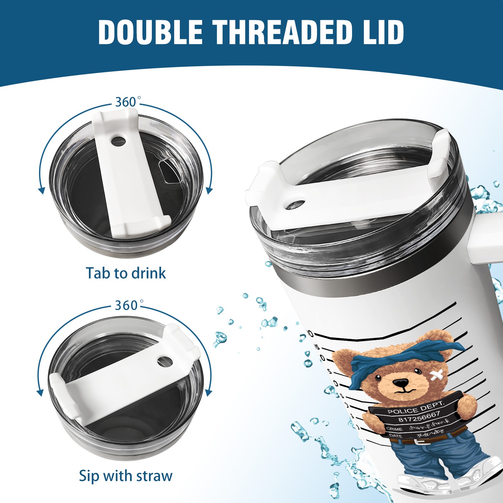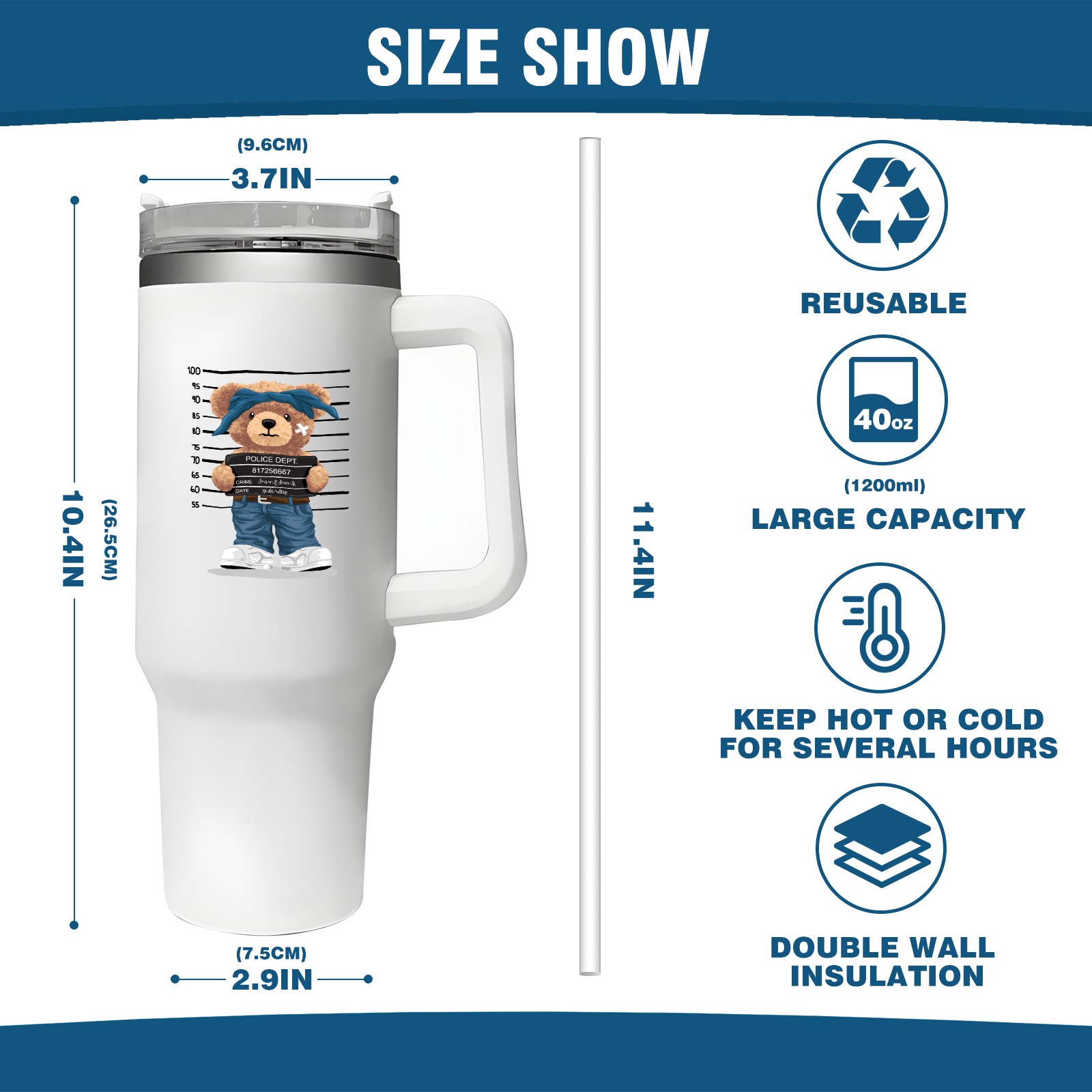 40oz Tumbler with Straw Lid , Handle& Double Wall Vacuum Insulated Cup Reusable Stainless Steel Bottle Trave Mug coffee tumblers BPA Powder Coated Police Dept