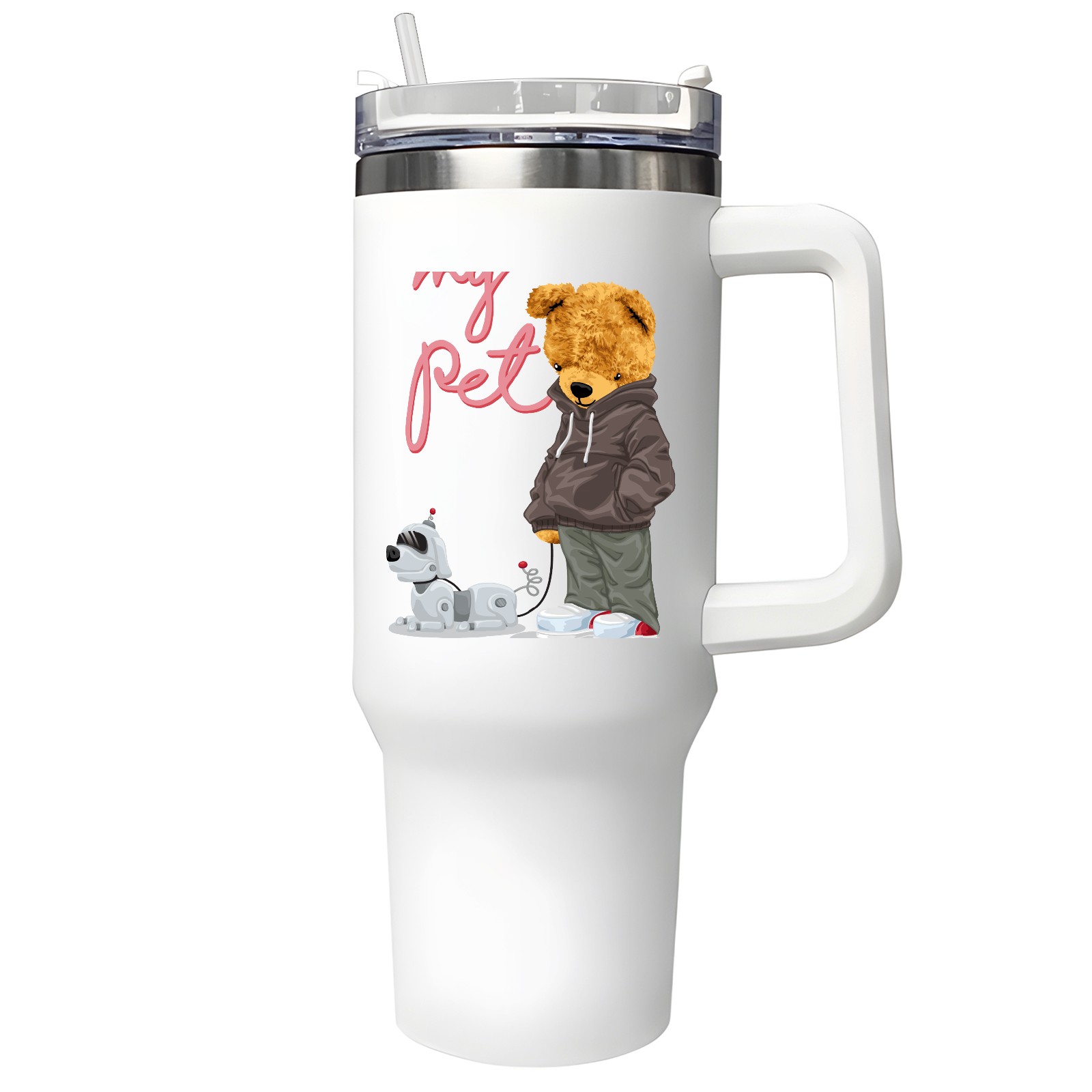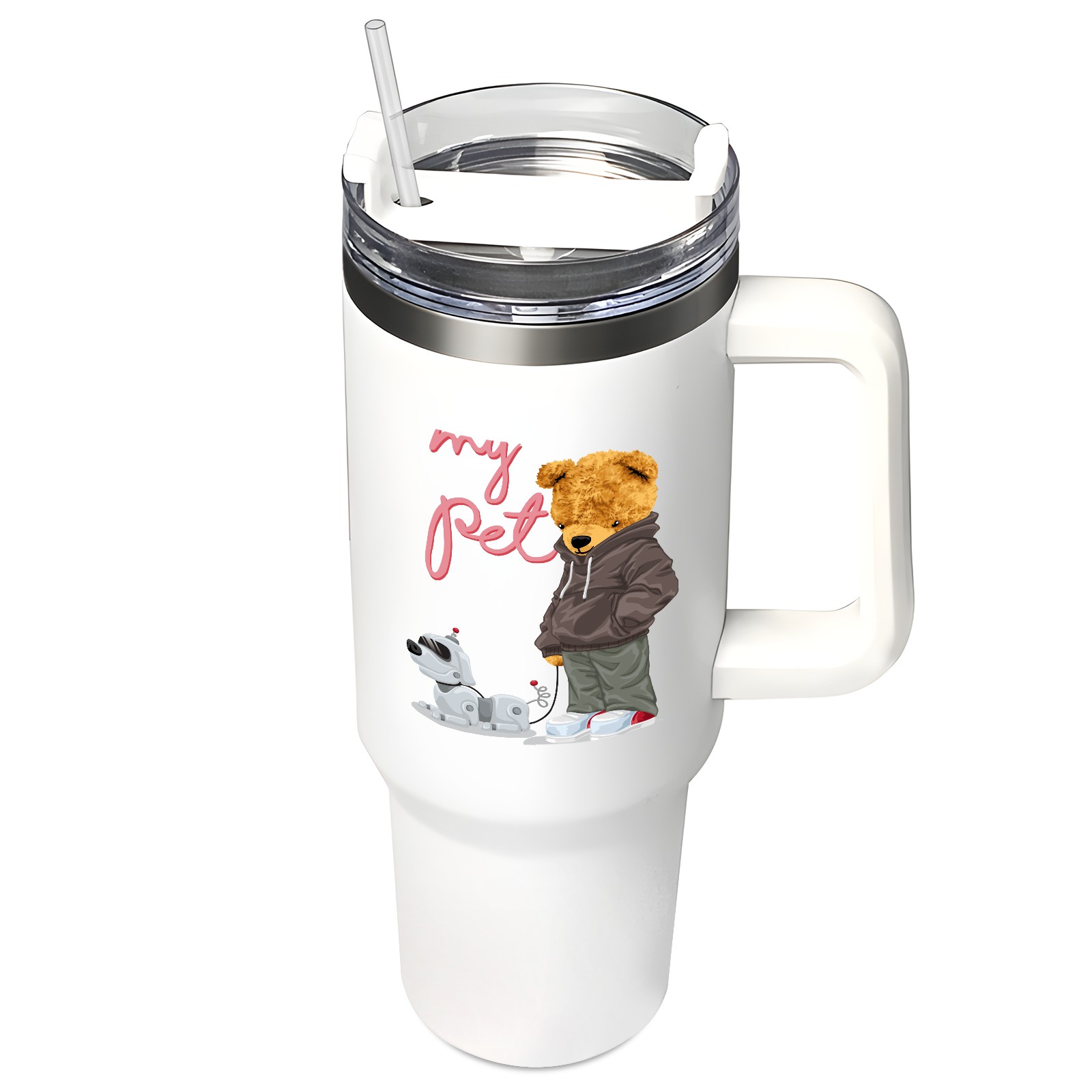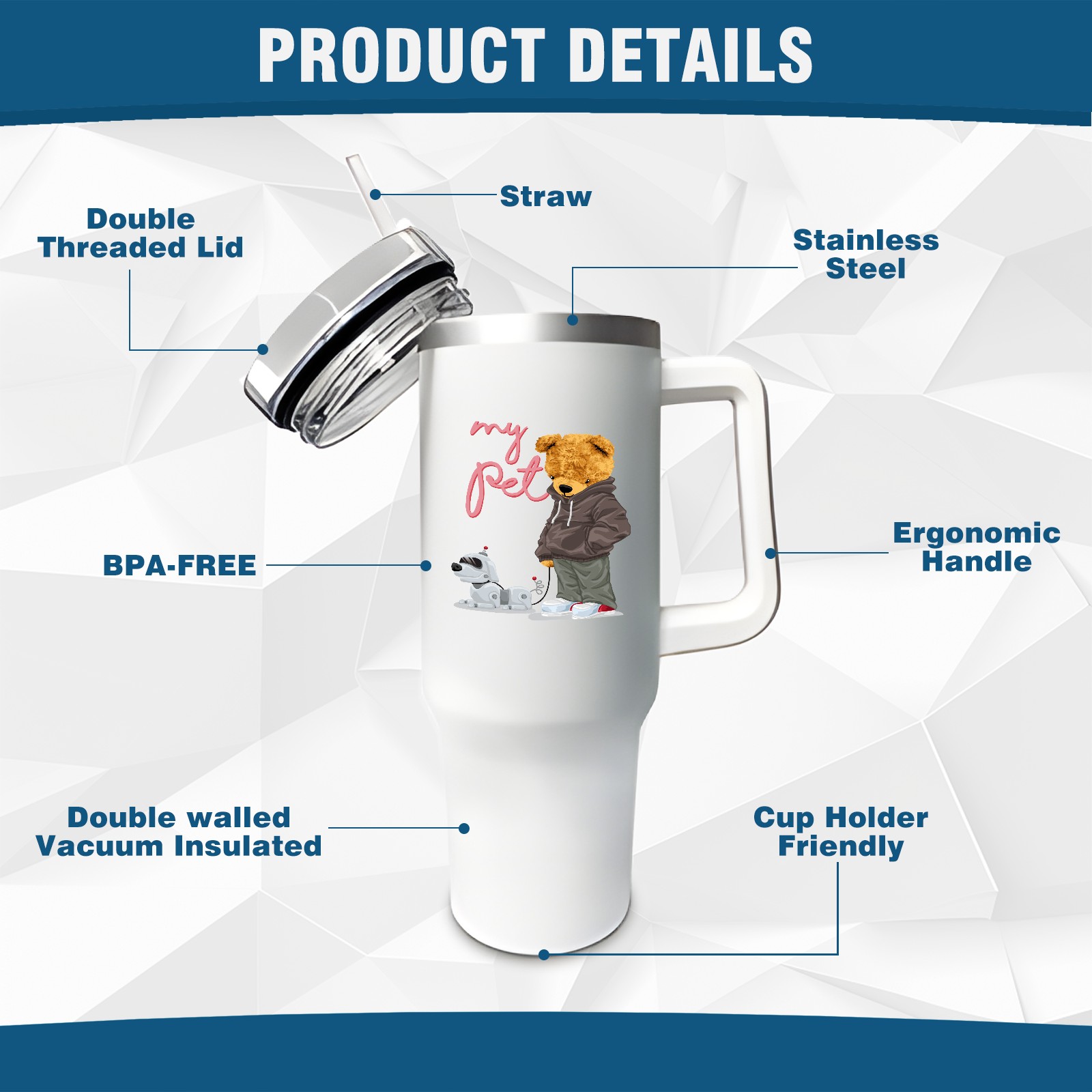 40oz Tumbler with Straw Lid , Handle& Double Wall Vacuum Insulated Cup Reusable Stainless Steel Bottle Trave Mug coffee tumblers BPA Powder Coated My Pet