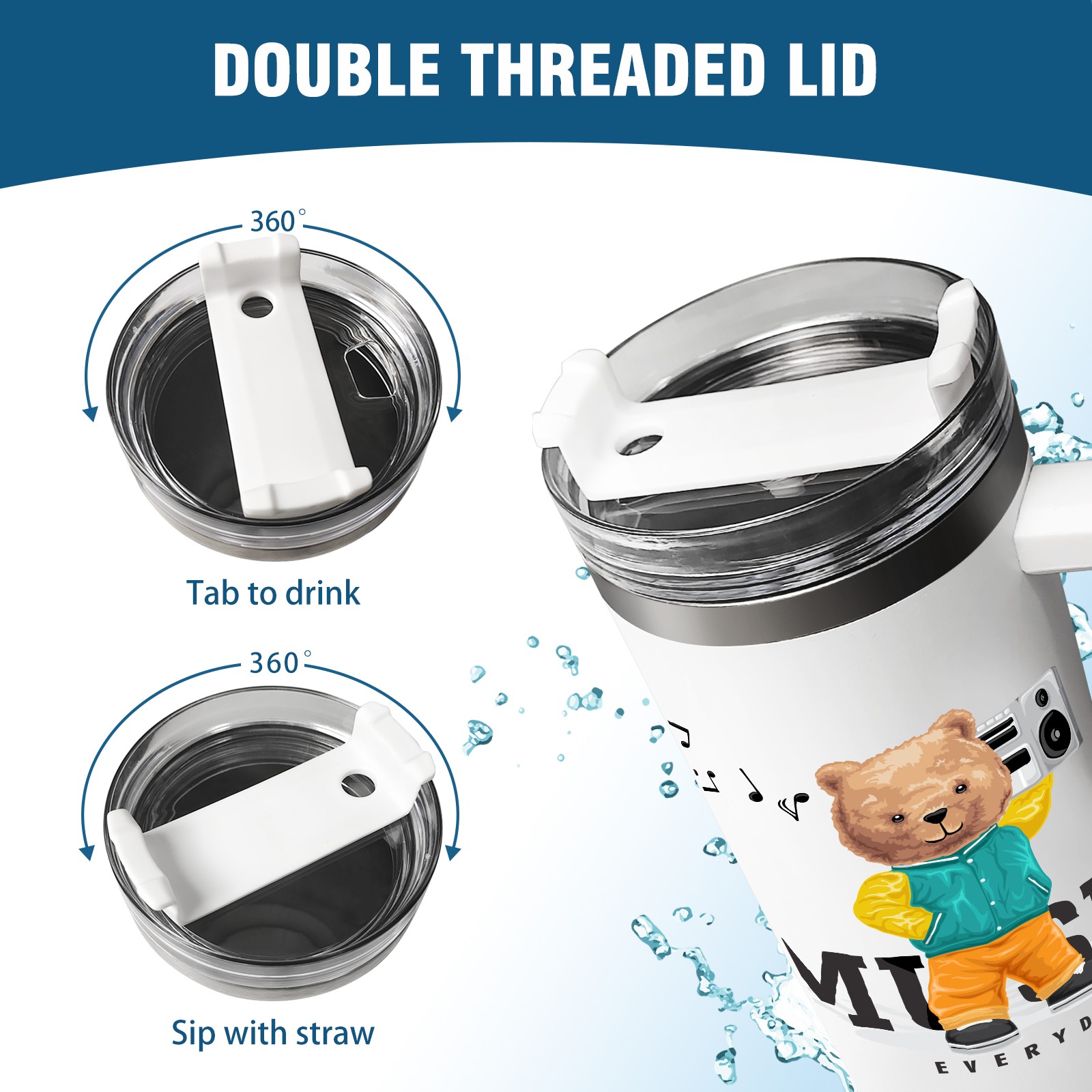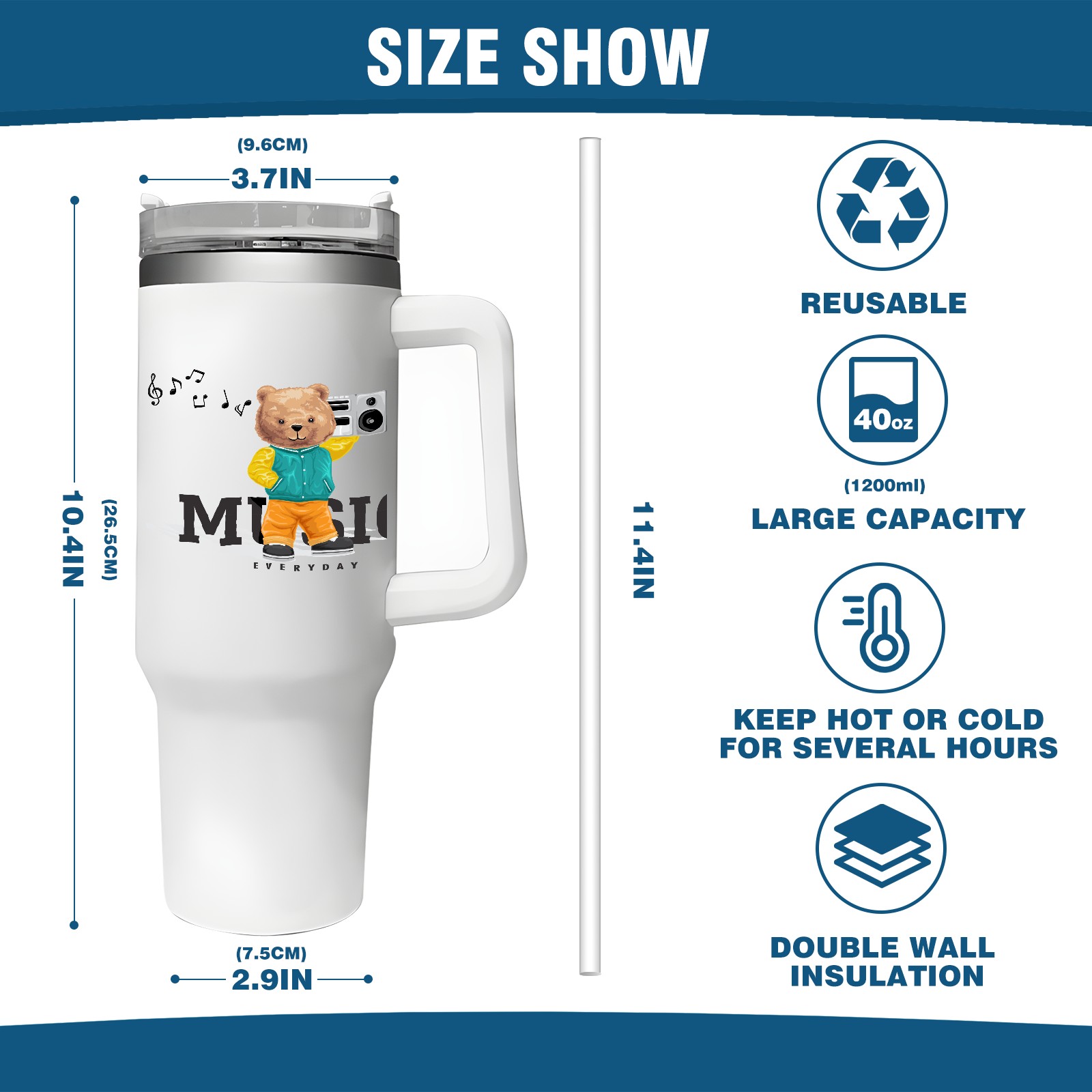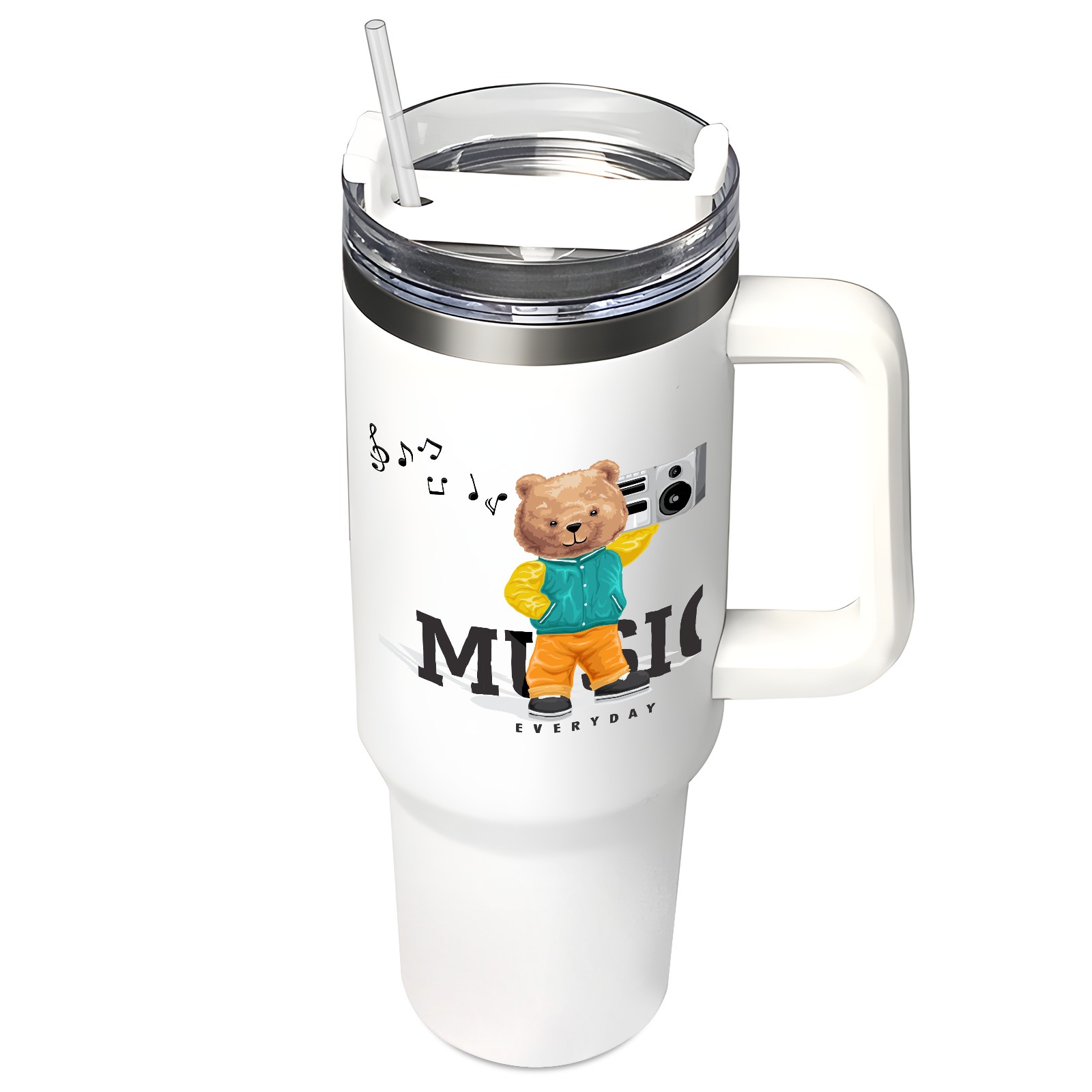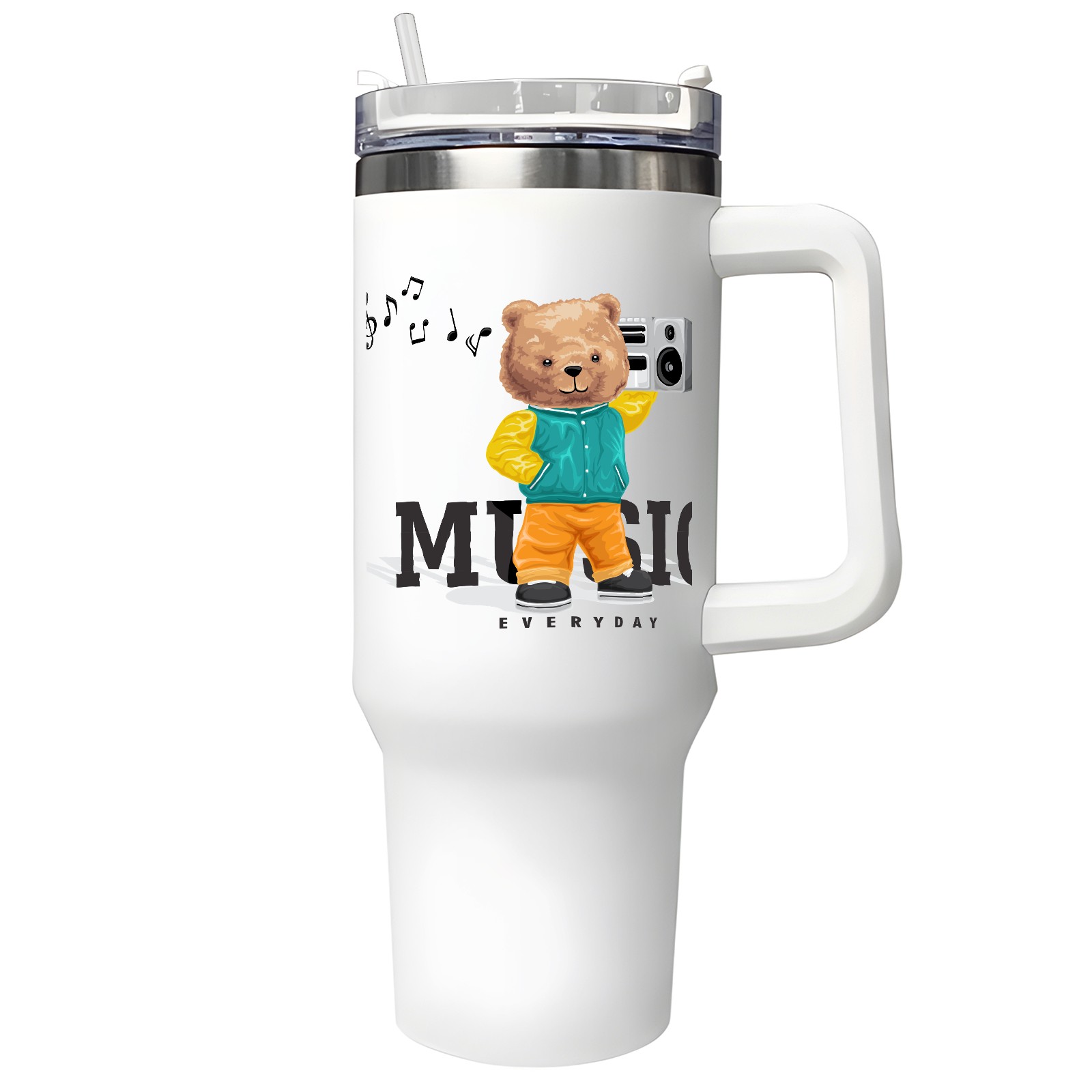40oz Tumbler with Straw Lid , Handle& Double Wall Vacuum Insulated Cup Reusable Stainless Steel Bottle Trave Mug coffee tumblers BPA Powder Coated Music