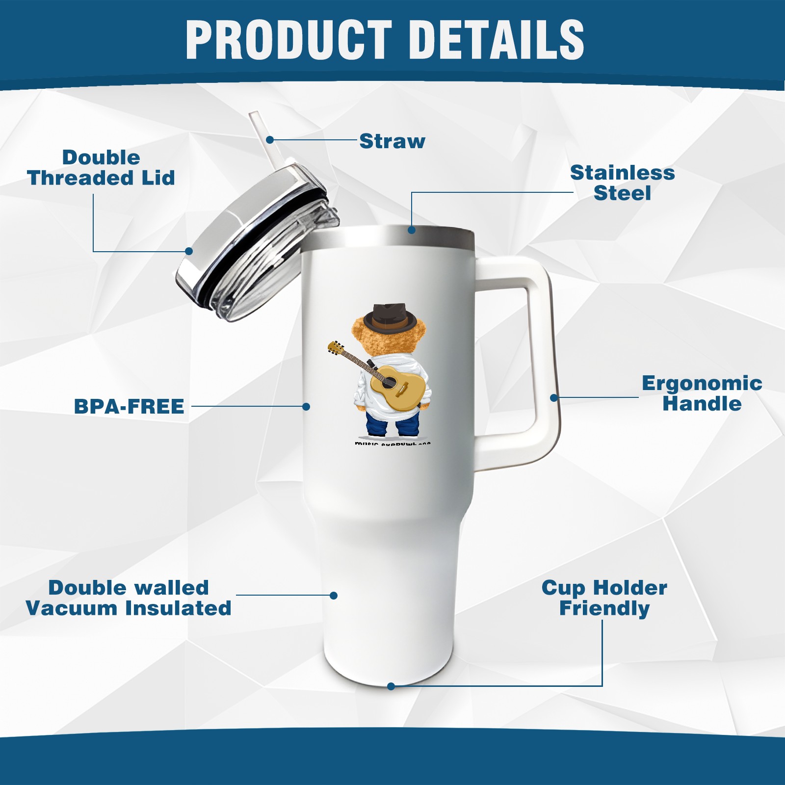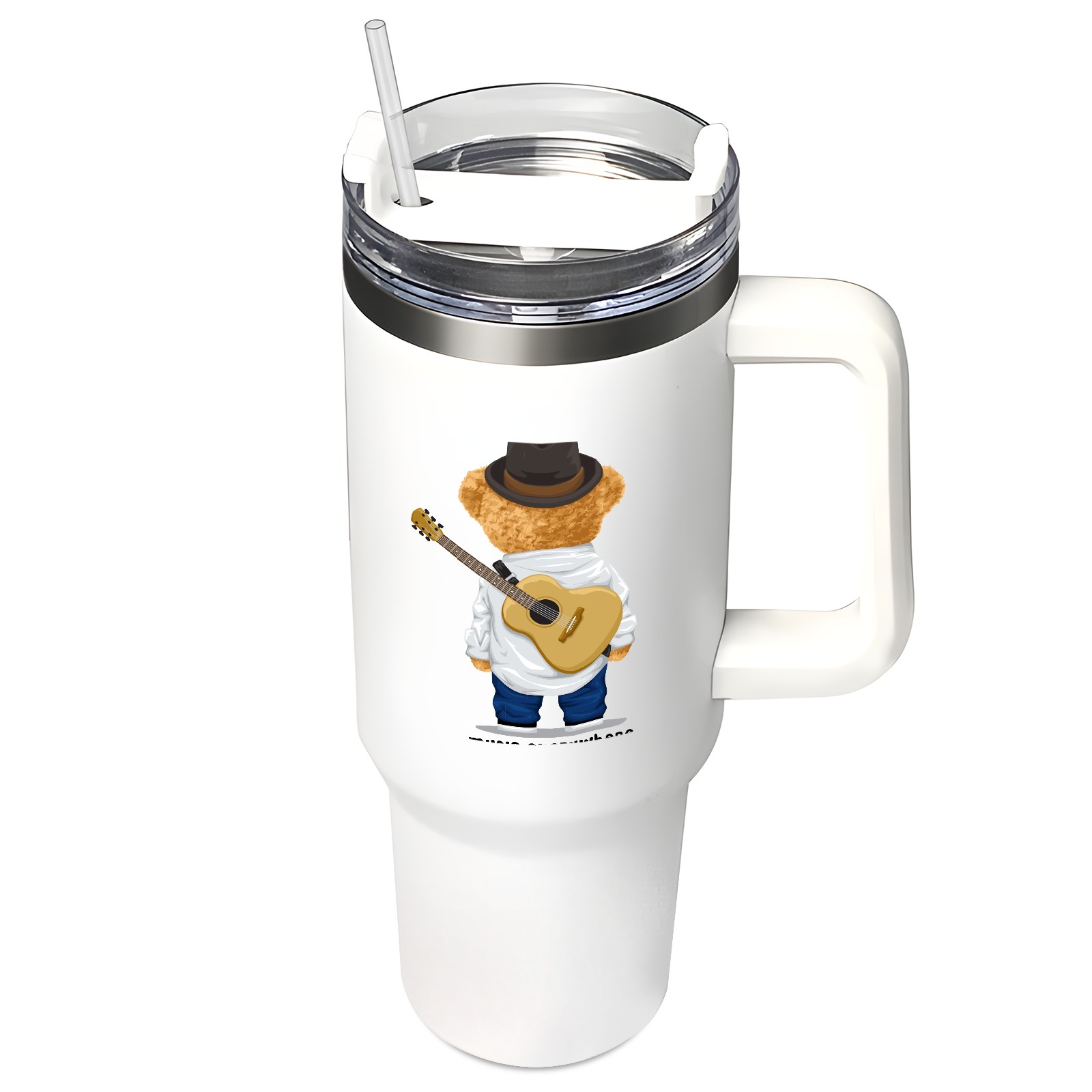 40oz Tumbler with Straw Lid , Handle& Double Wall Vacuum Insulated Cup Reusable Stainless Steel Bottle Trave Mug coffee tumblers BPA Powder Coated Music Everywhere